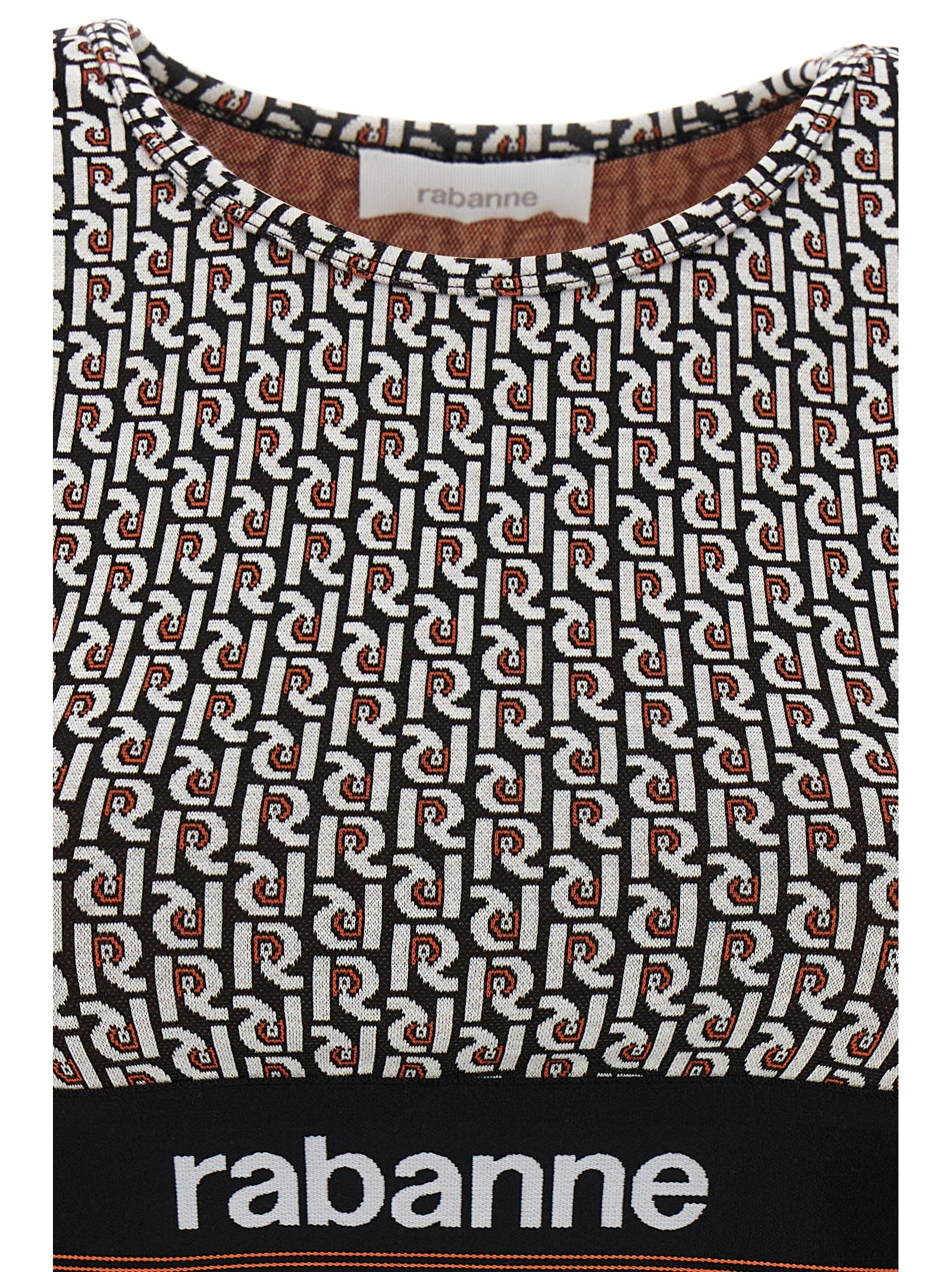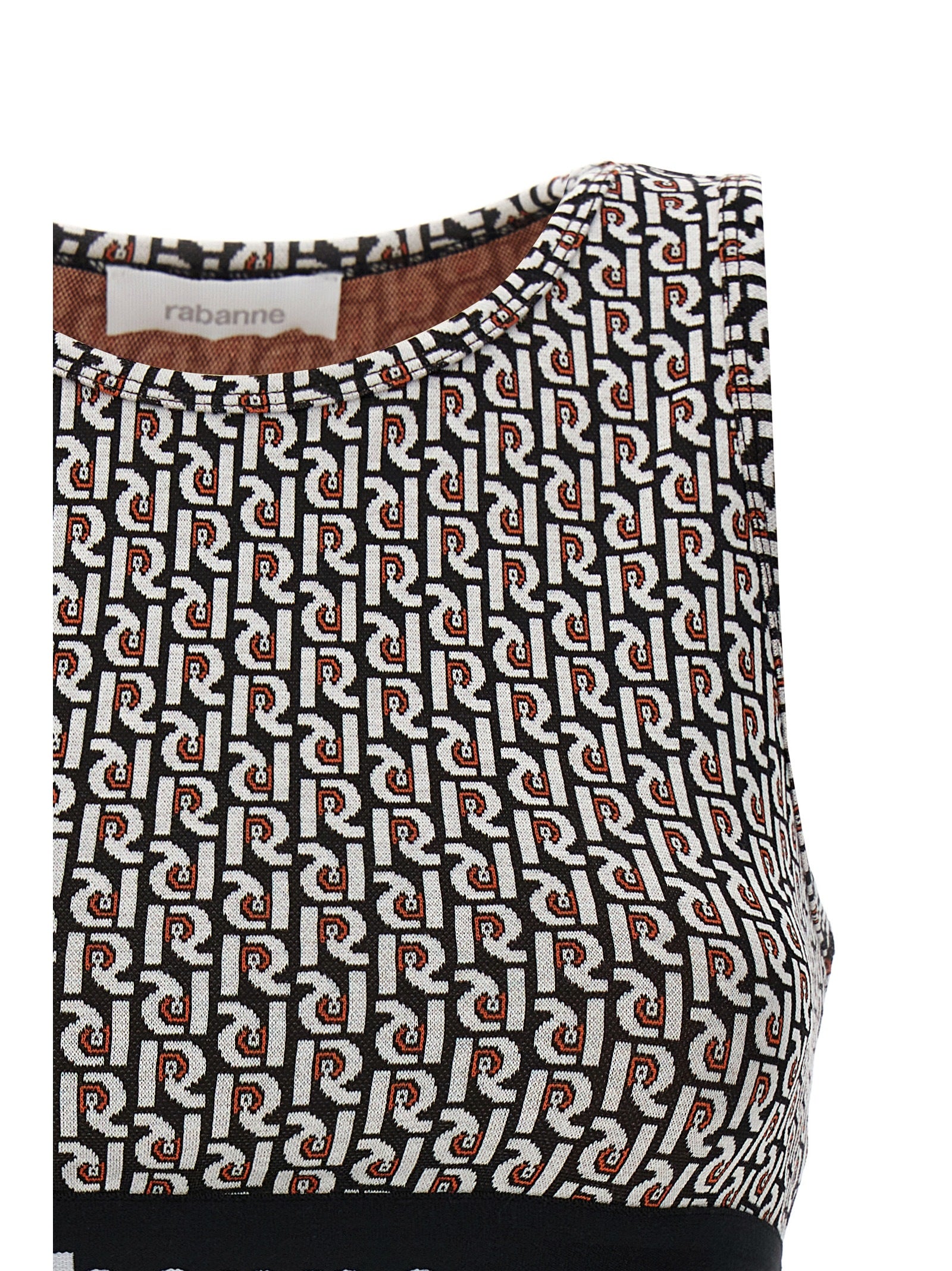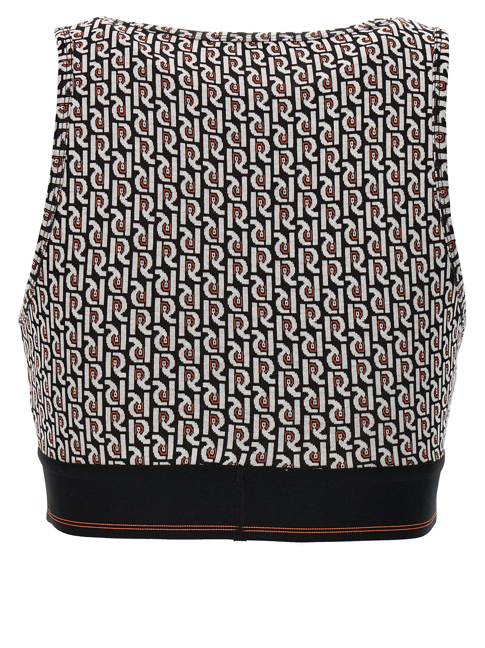 Sport top in tessuto allungato con pattern logo "monogramma" all-over, cintura elastica con logo, stile ritagliato.