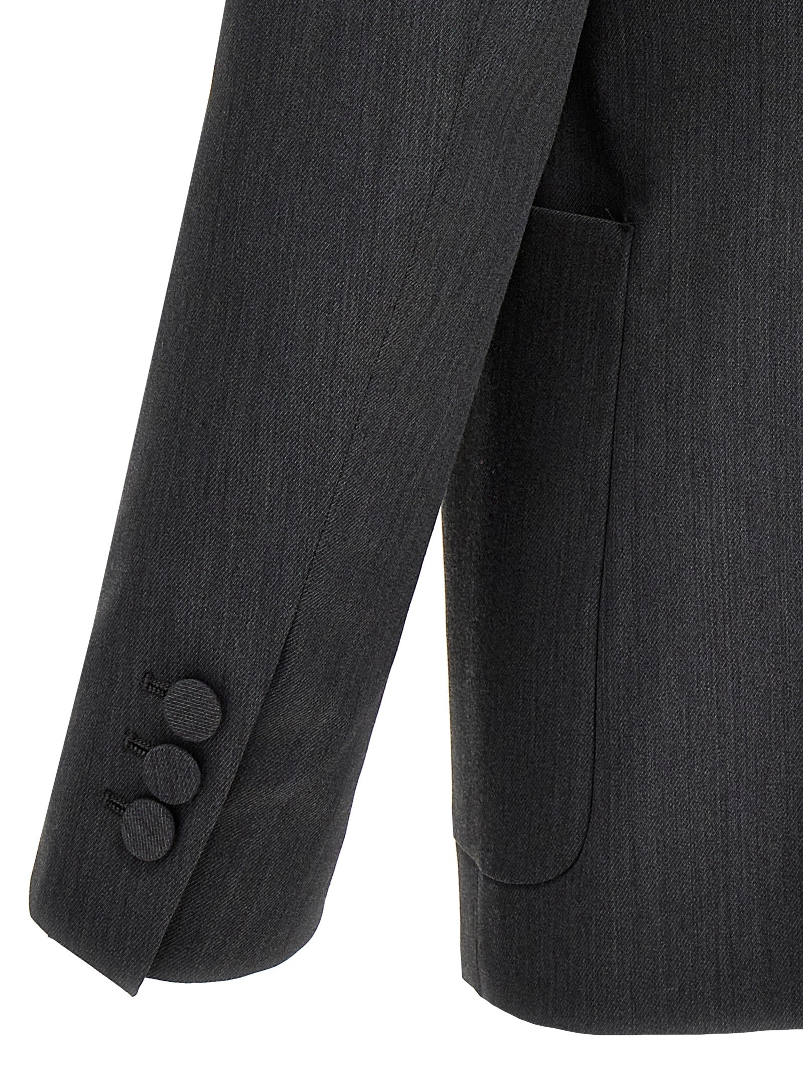 Blazer di miscela di lana a petto singolo "Monogram Pocket" con chiusura a bottone, tasche, logo in rilievo, maniche lunghe, prese d'aria posteriori.