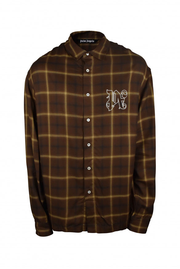 Palm Angels Marrone che controlla la camicia in poliestere.