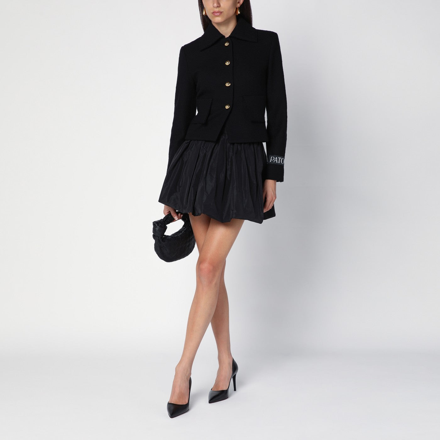 Mini gonna in poliestere nero di Patou, con una pesca con zip in vita alta e zip.