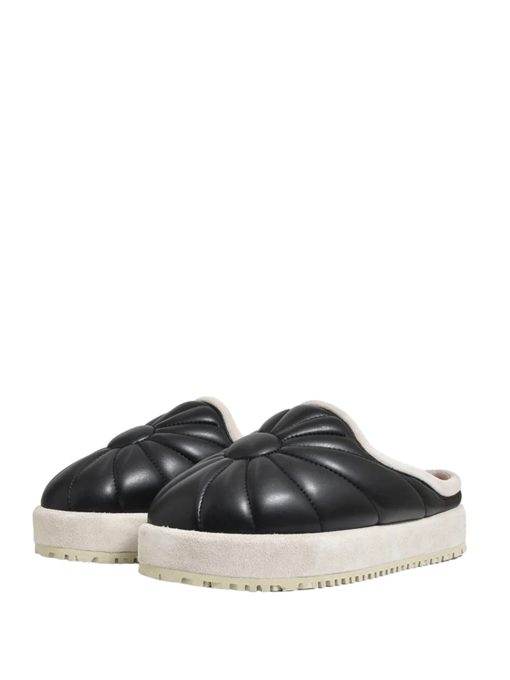 Pantofole con la suola in pelle da ricamo Urano / nero