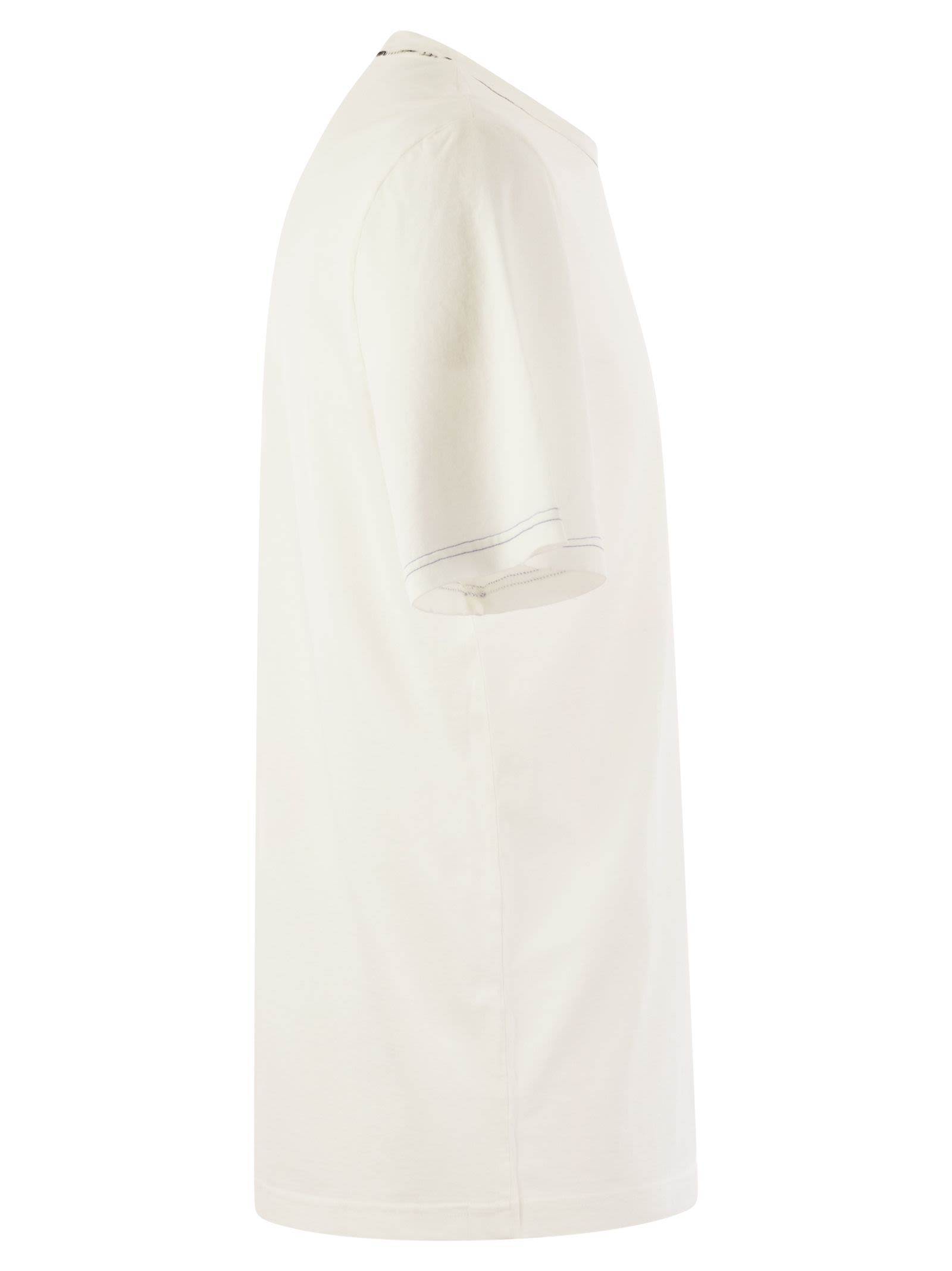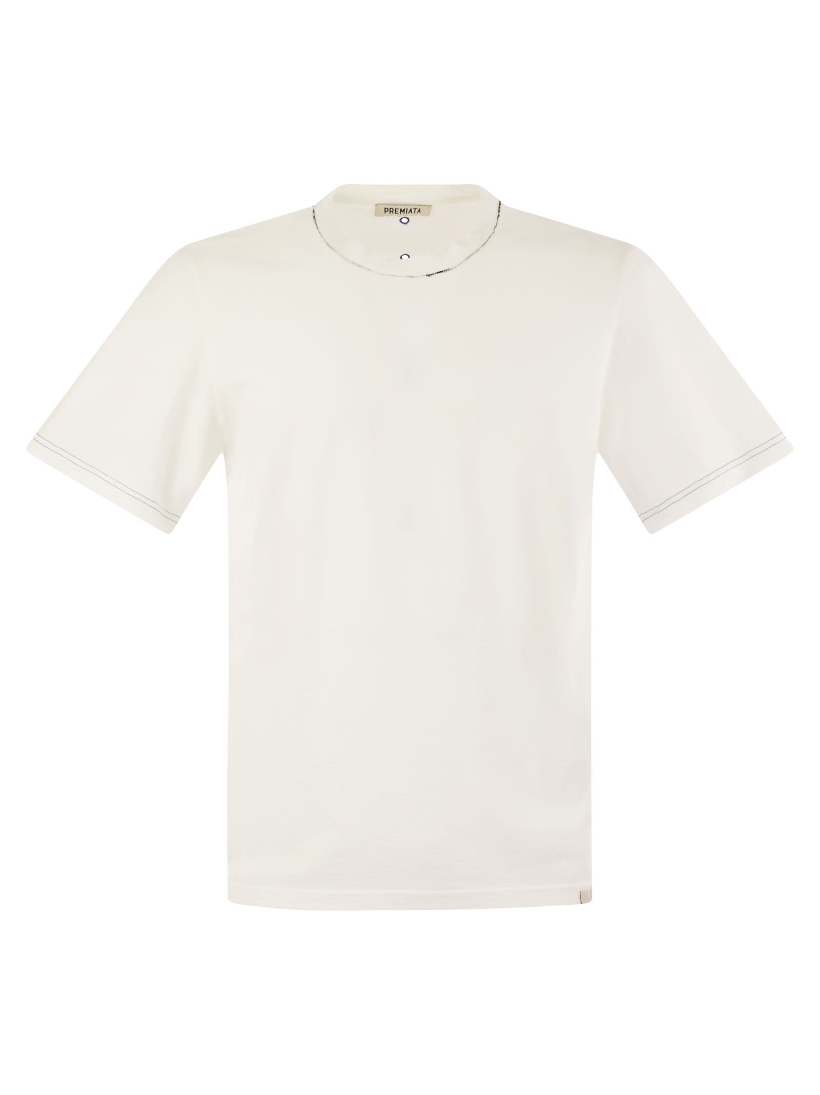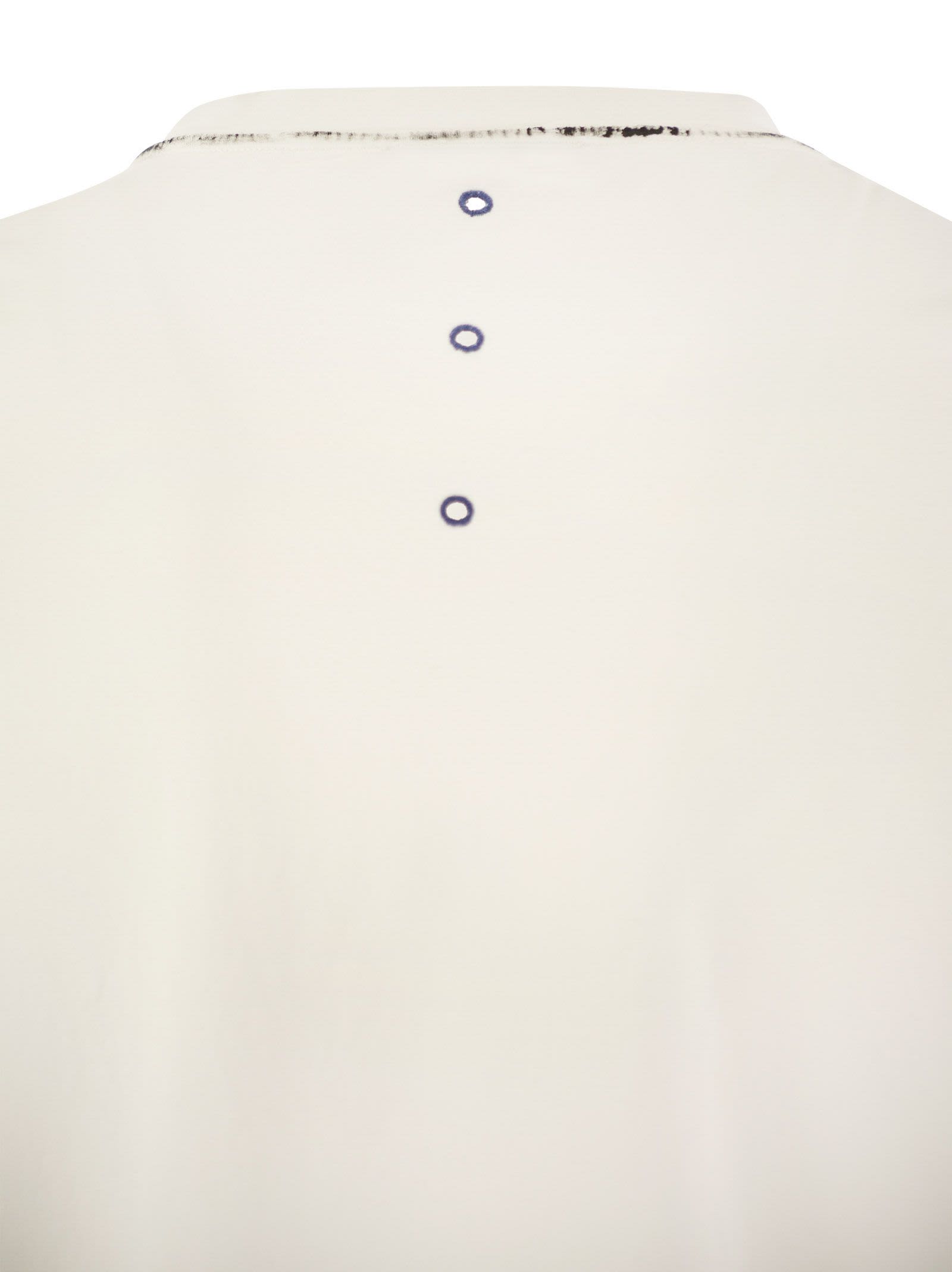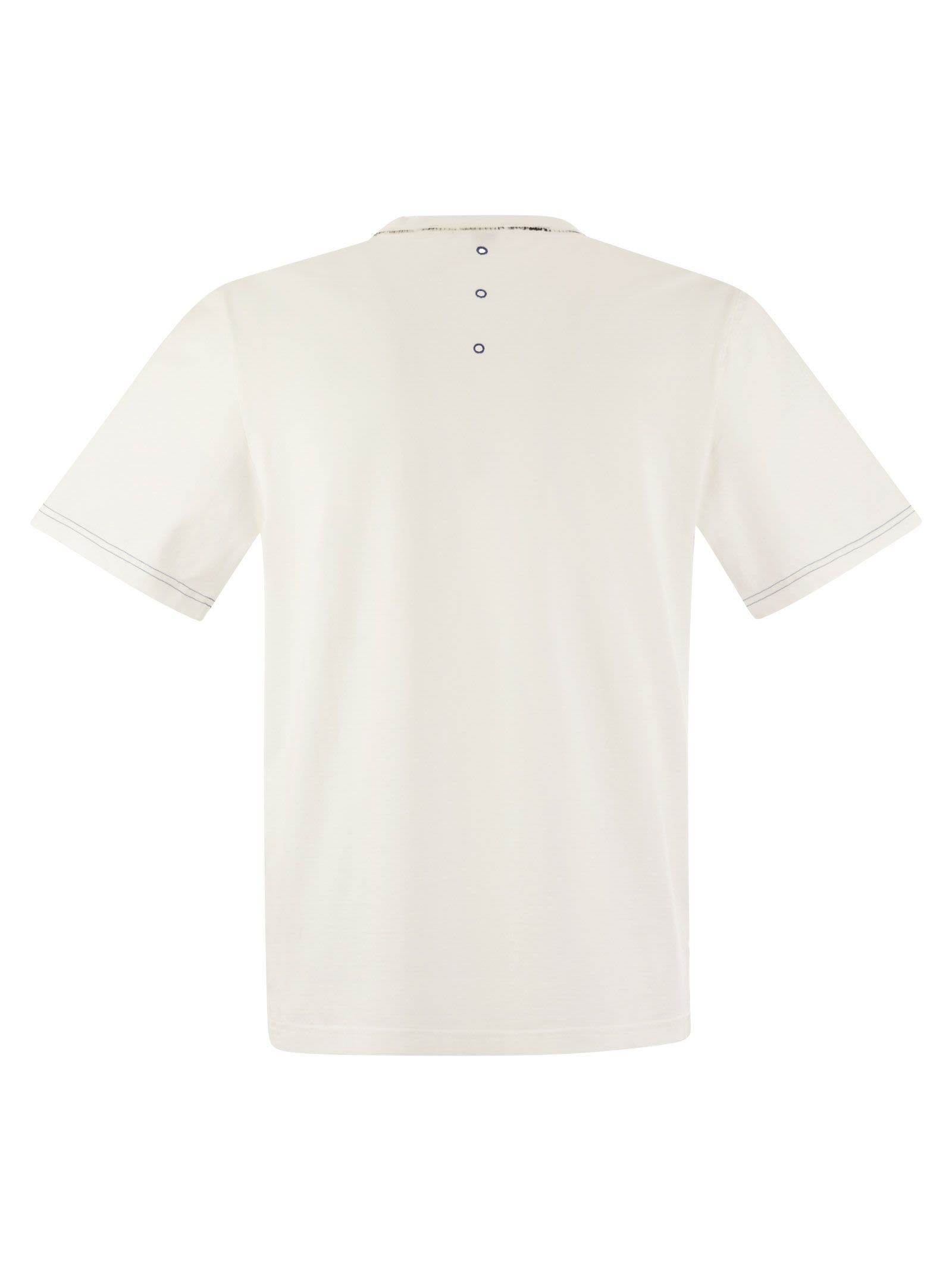 T-shirt della maglia di cotone maschile, vestibilità regolare e motivo a tre buche nel ricamo blu blu brodé sotto la scollatura posteriore. - Etichetta della bandiera in fondo con logo "Flag" - Motivo a tre buche sul retro - ID Designer adatta normale: PR364 020