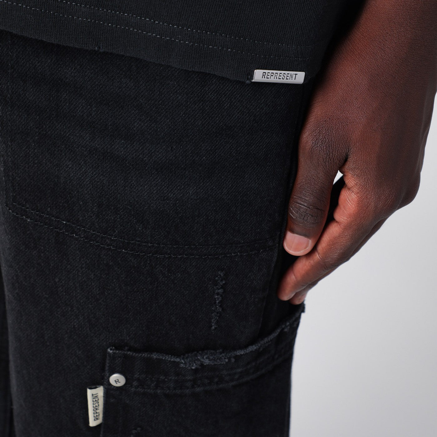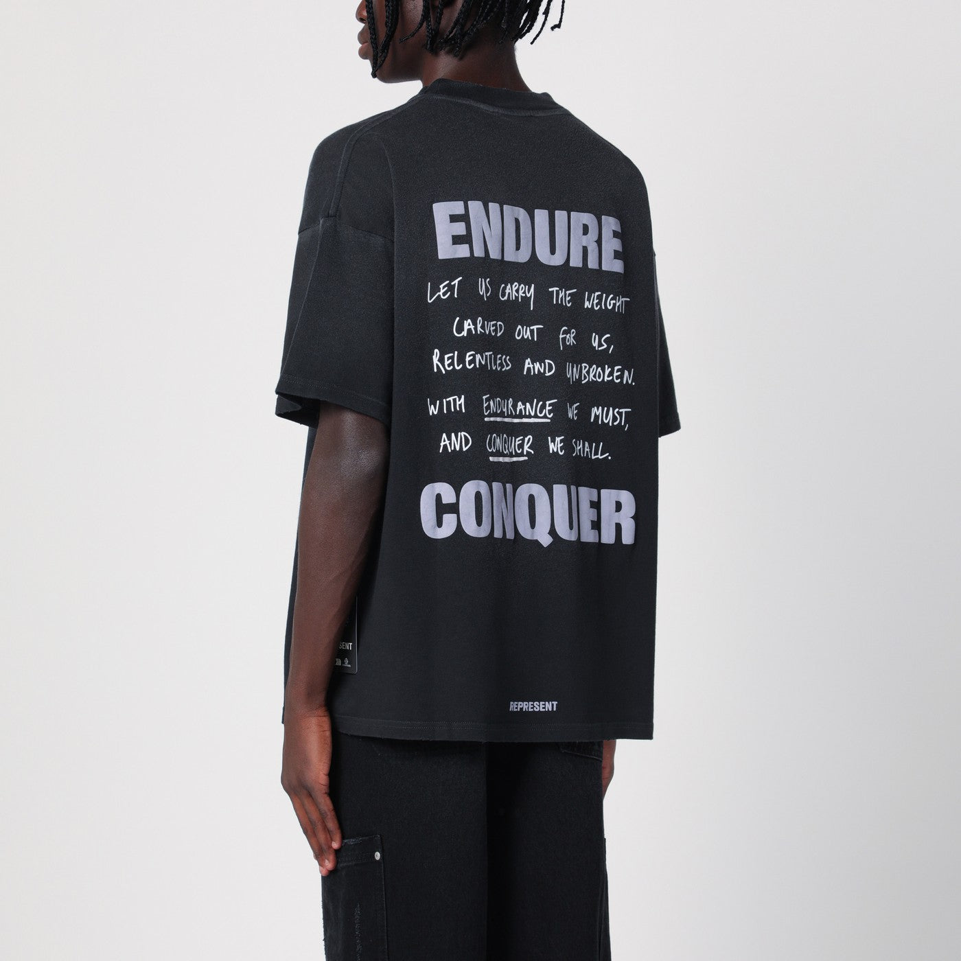 La t-shirt in cotone lavata nera rappresenta con maniche corte, stampe a logo anteriore e posteriore contrastanti, collo dell'equipaggio a coste, dettagli usurati e placca di logo in metallo sull'orlo.