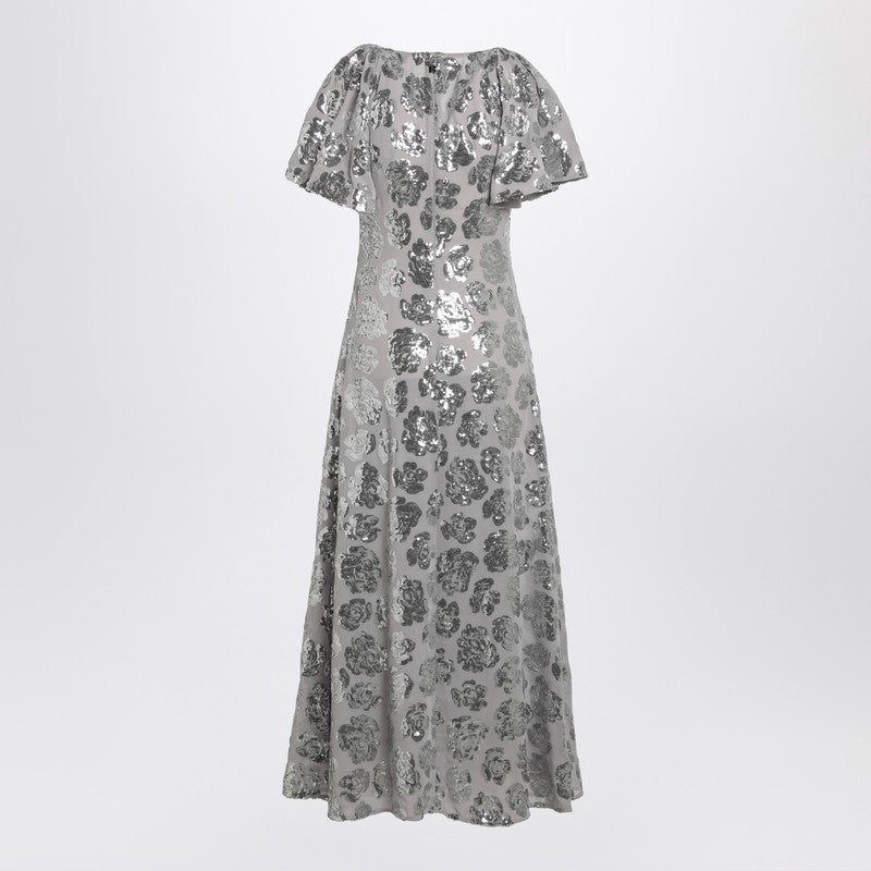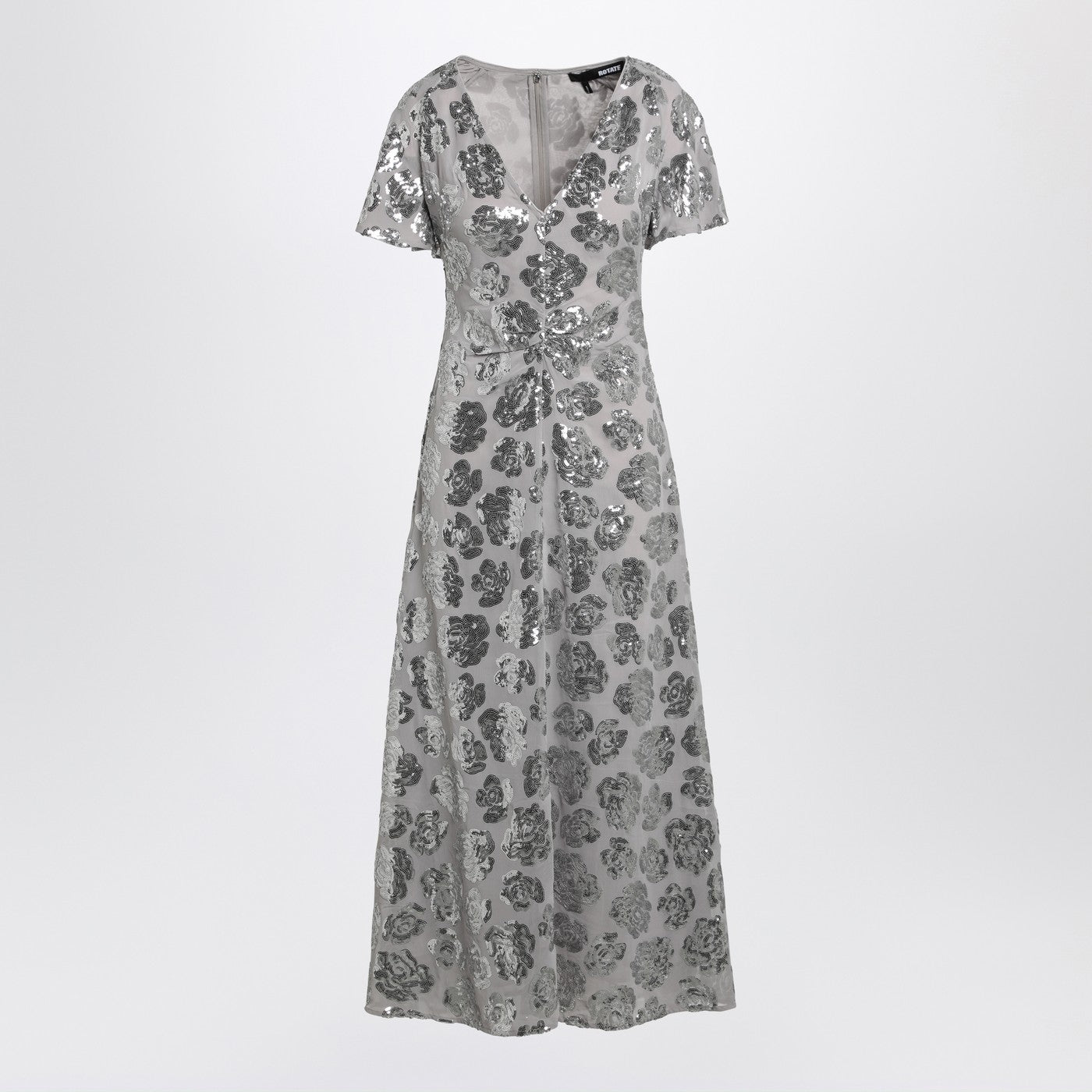 Ruota Birger Christensen Abito midi chiffon grigio chiaro con paillettes