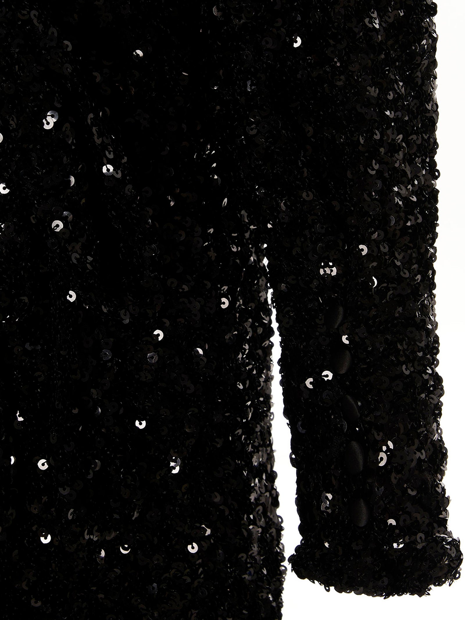 Minidress per paillettes all-over con stile di portafoglio, maniche lunghe e un scollo a V.