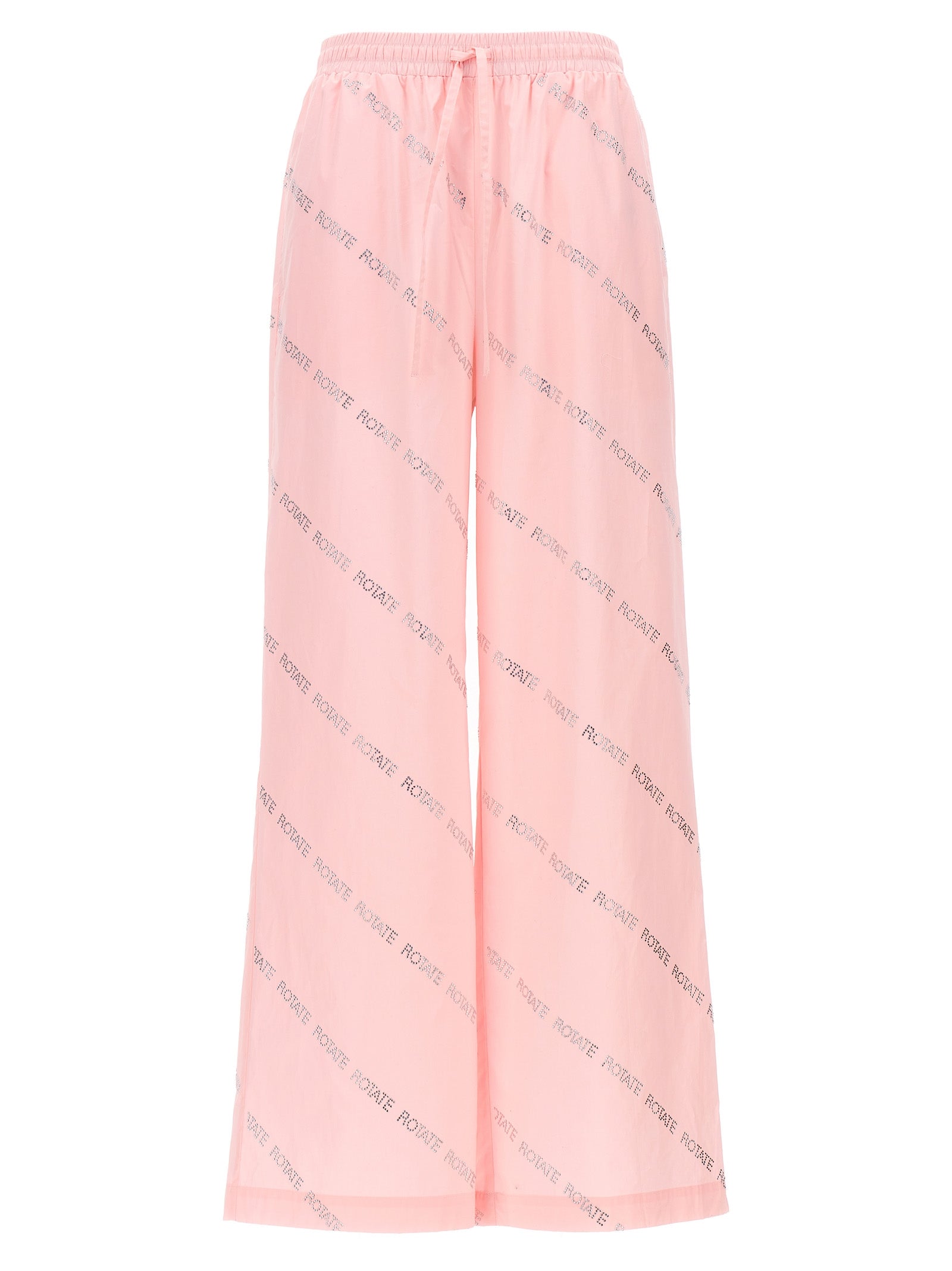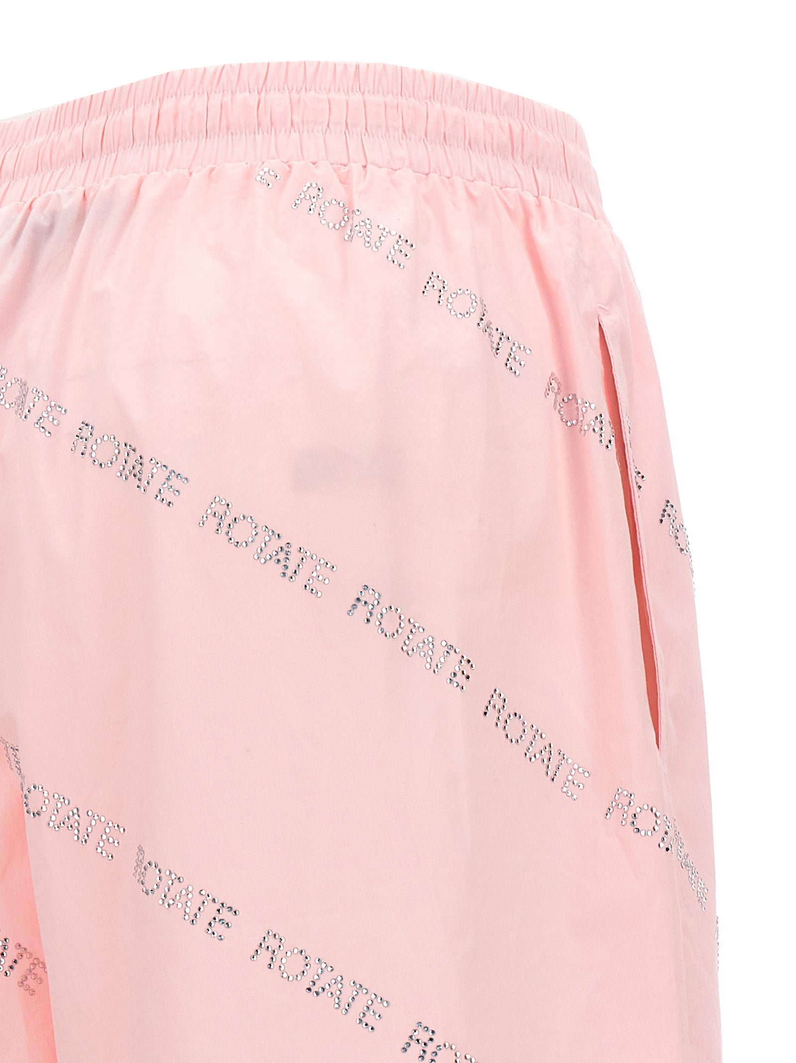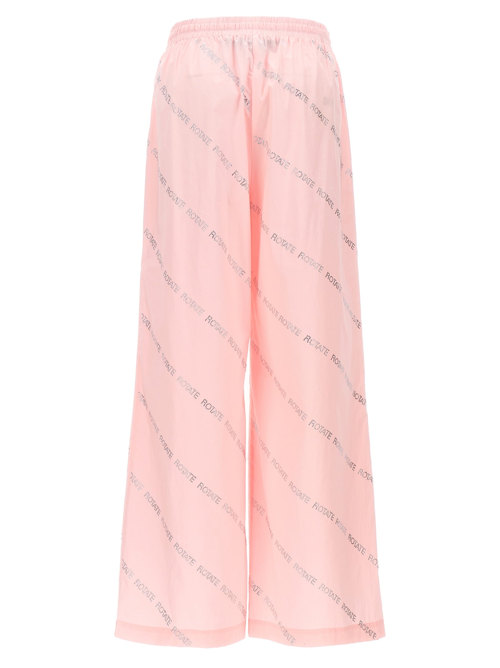 Sunday Capsule Crystal Pants in Cotton Poplin con appliqé con logo di strass all-over, tasche ed elastici e coulisse in vita. Julian Sustainable: questo prodotto è realizzato in cotone organico.