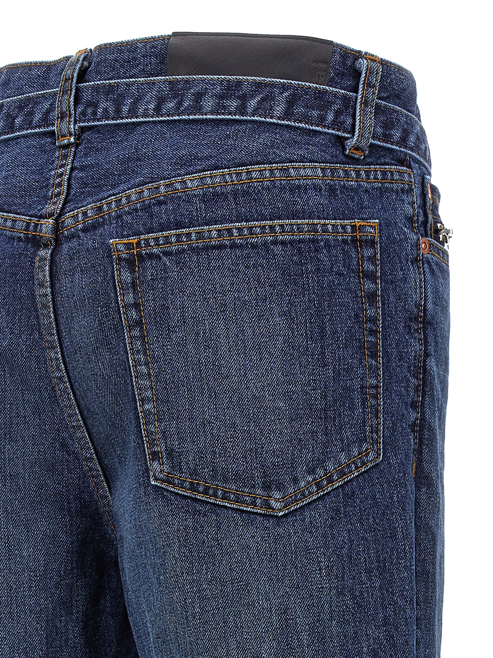 Jeans in denim in cotone di bootcut, chiusura a zip e bottoni, cintura in vita corrispondente, cinque tasche.