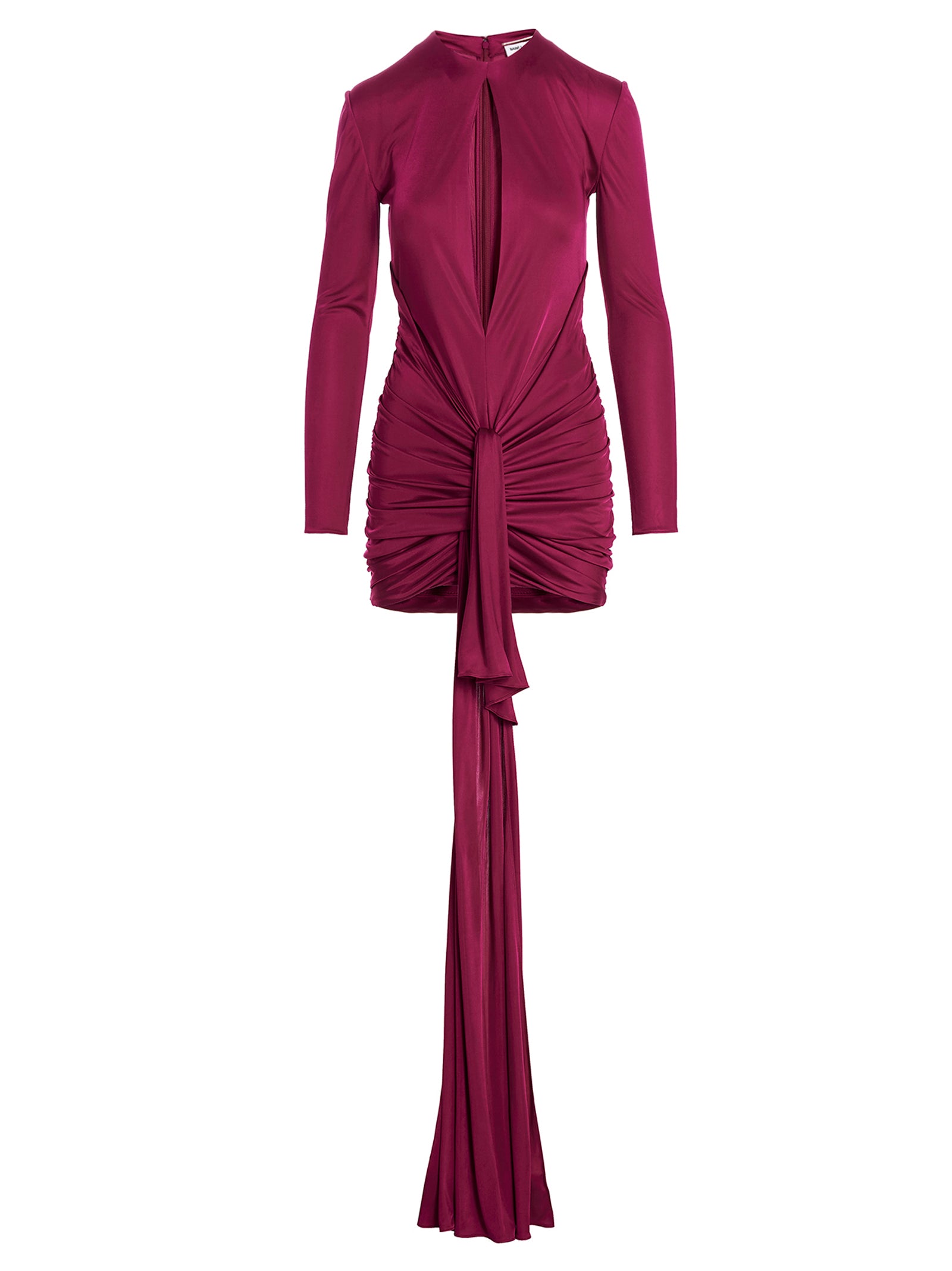 Abito drappeggiato con maglia viscosa con maniche lunghe, equilibrio e una chiusura a zip posteriore.