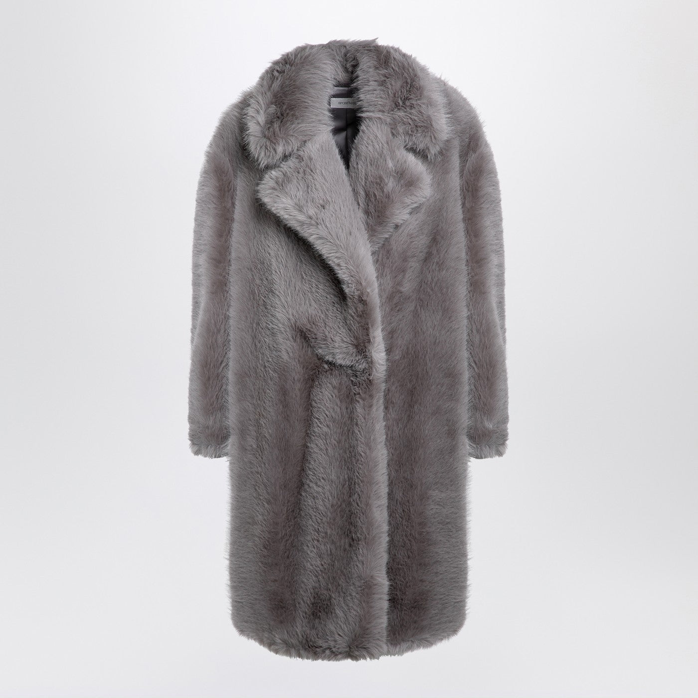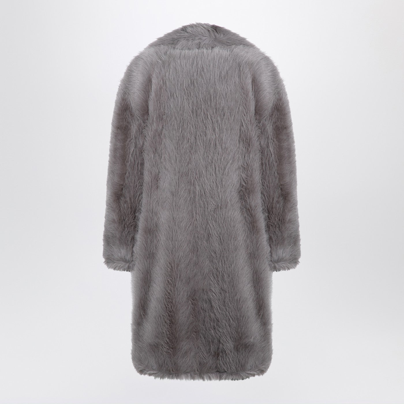 Cappotto a petto in finta pelliccia grigio chiaro da Sportmax con maniche lunghe, ampi risvolto e abbottonatura frontale.