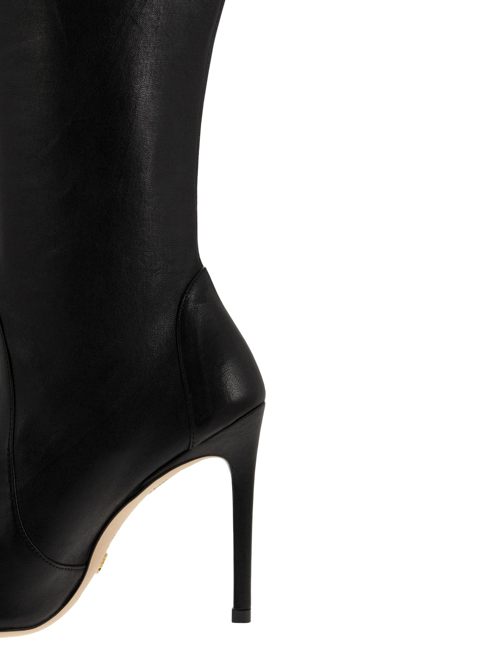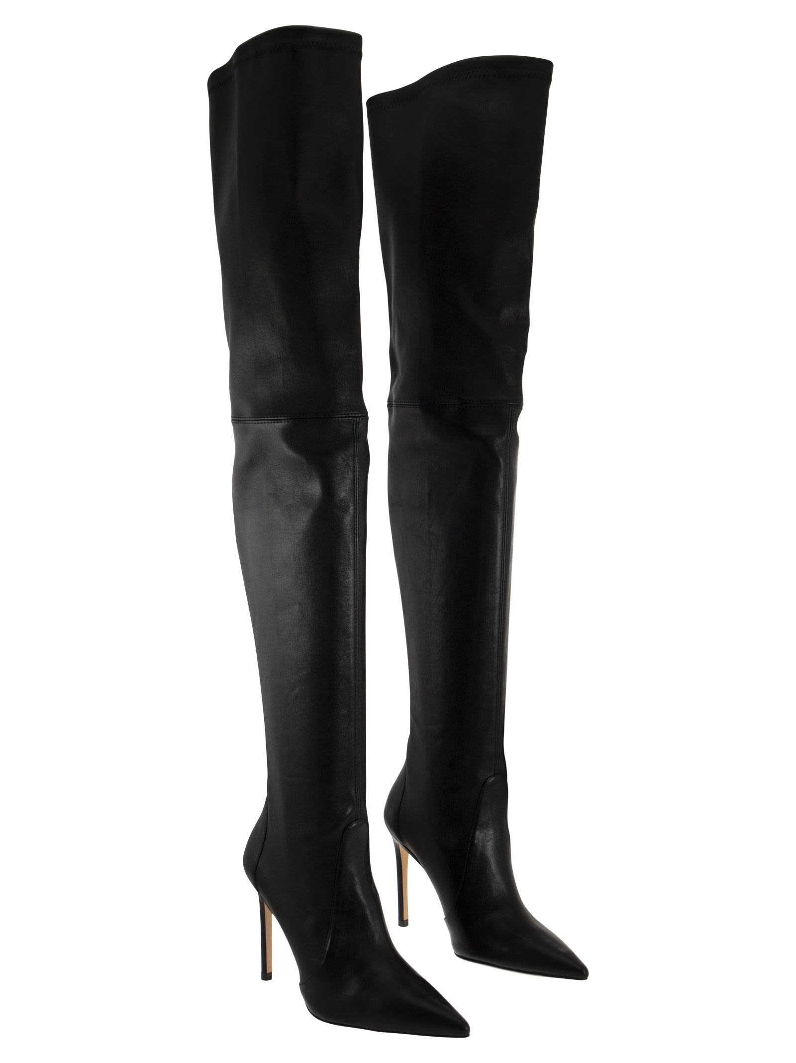 Modern luxury footwear—sleek silhouettes and signature over-the-knee boots with impeccable fit.