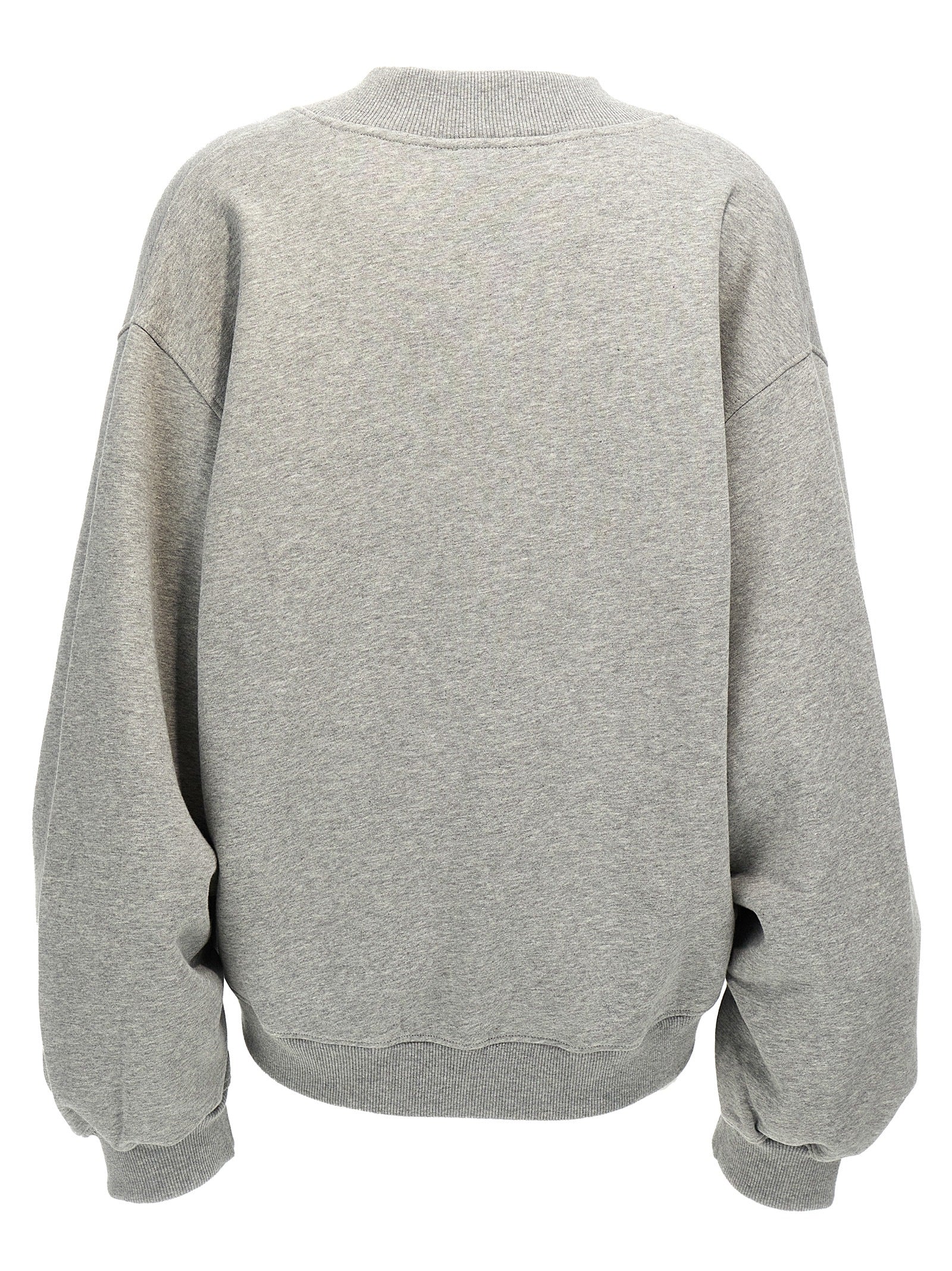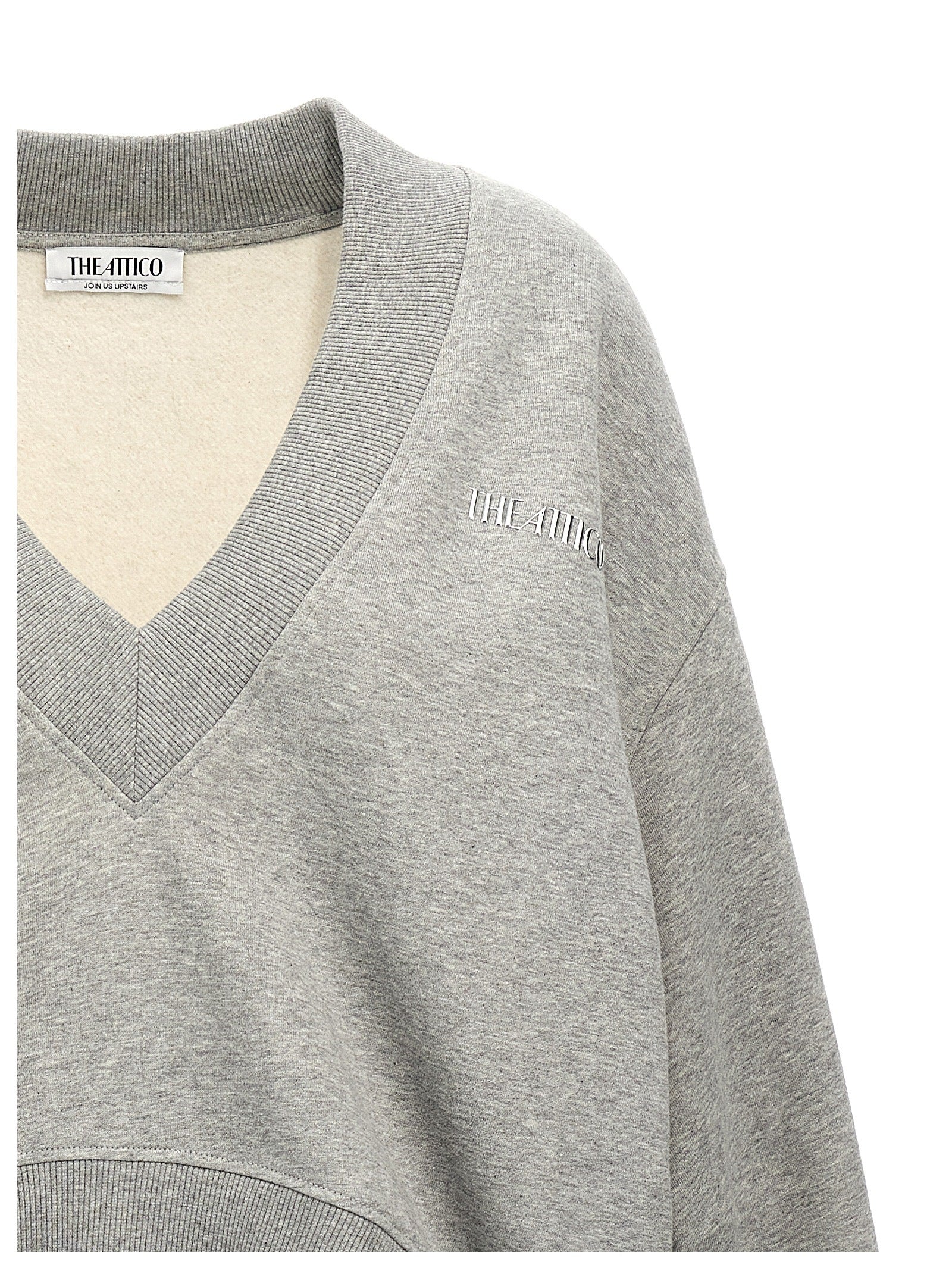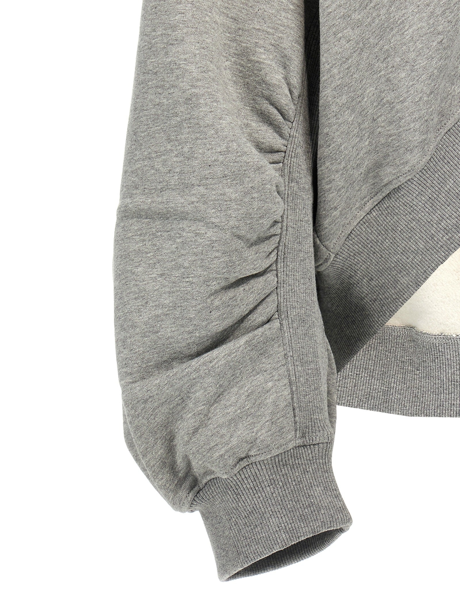Felpa di cotone spazzolata, modello a terra, scollo a V, logo gommati anteriore, maniche confuse lunghe.