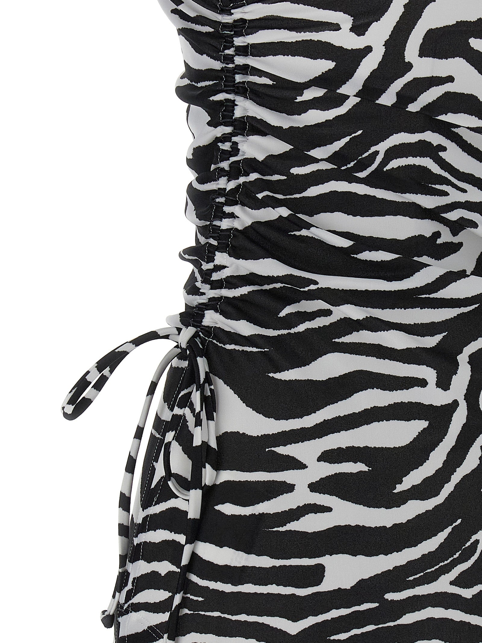 Minidress "Estate Meravigliosa" in lycra allungata con stampa animale all-over, corse laterali con drappeggio, manica, cinghie sottili, fessure laterali a forma.
