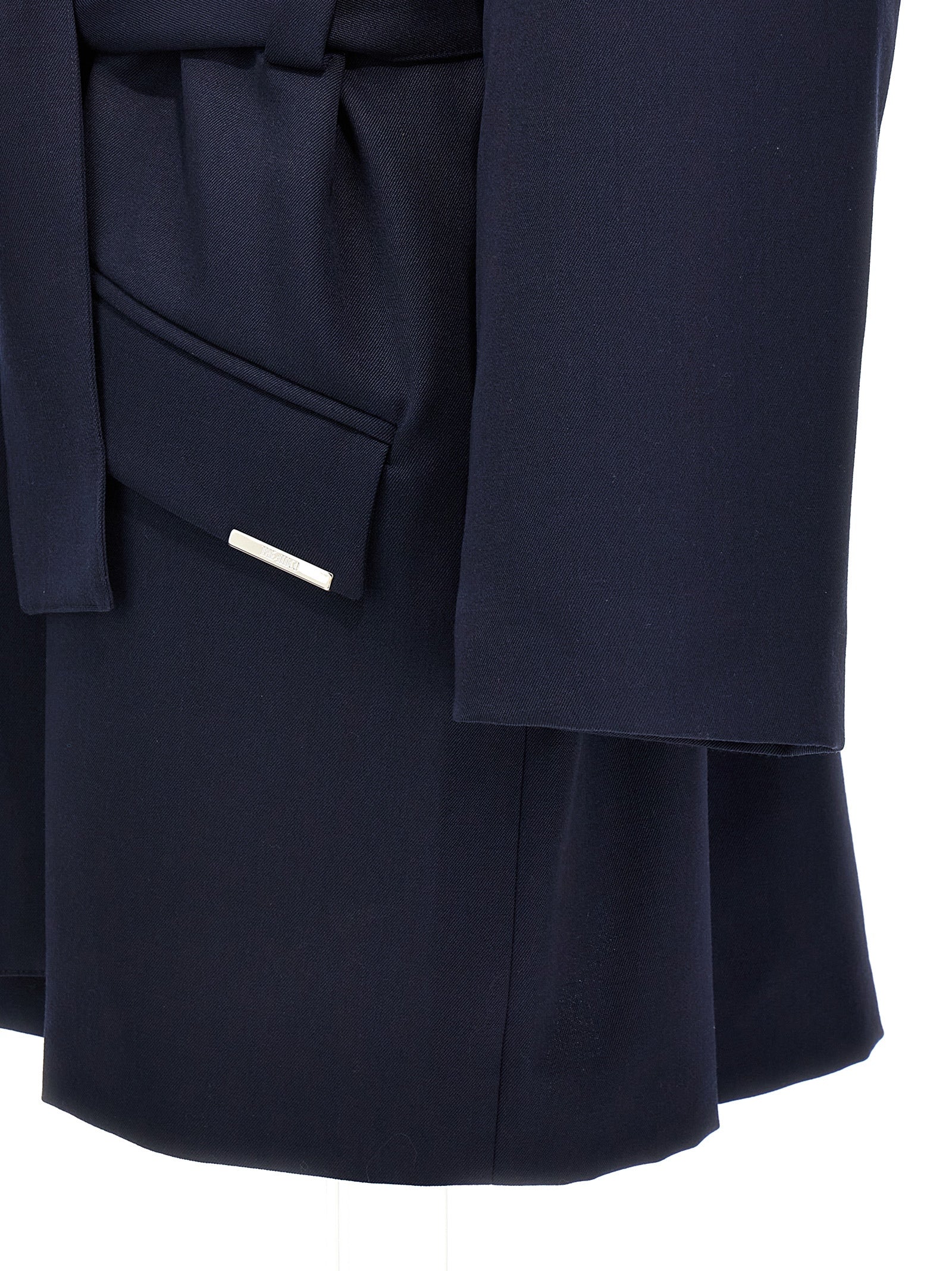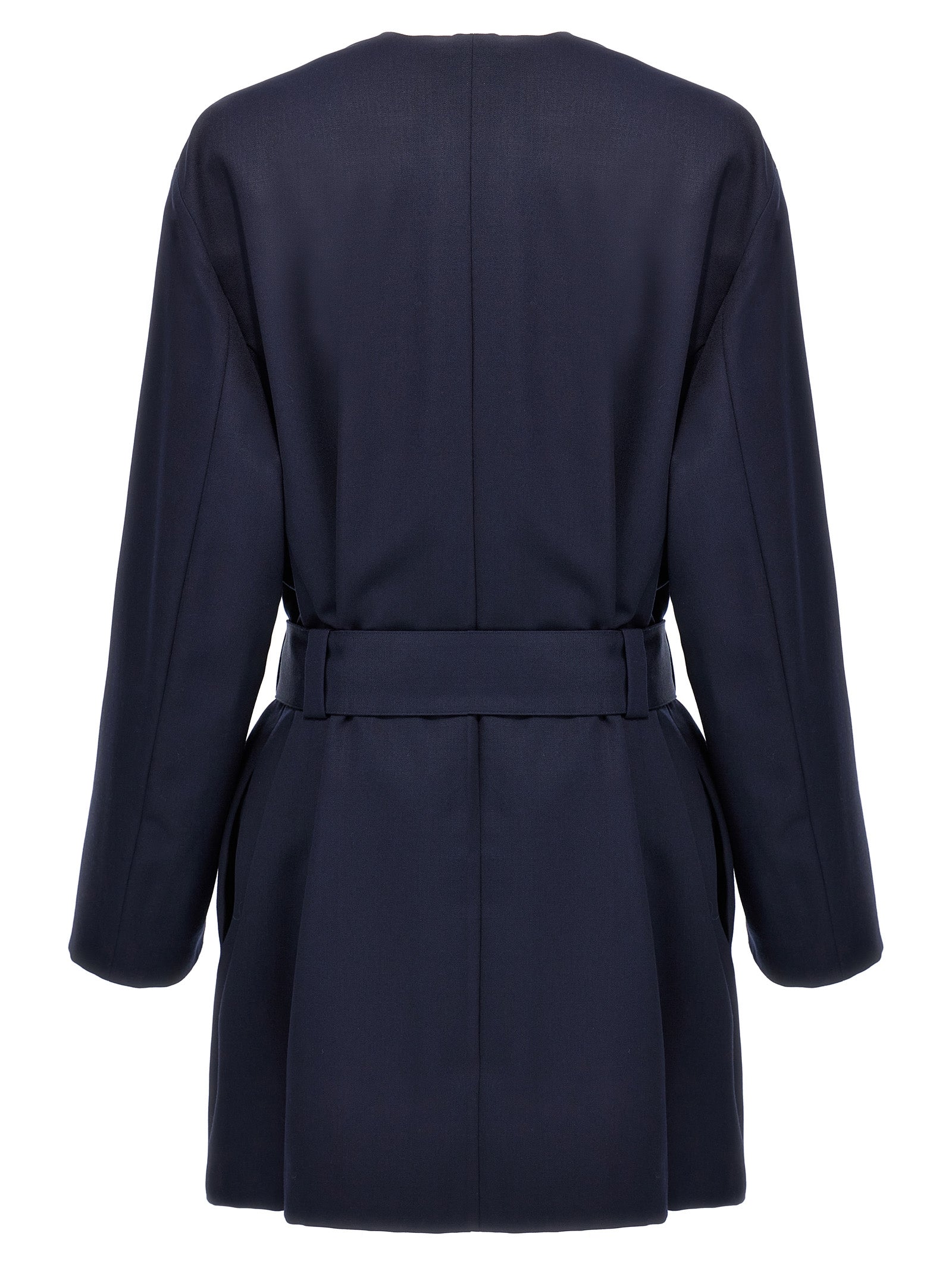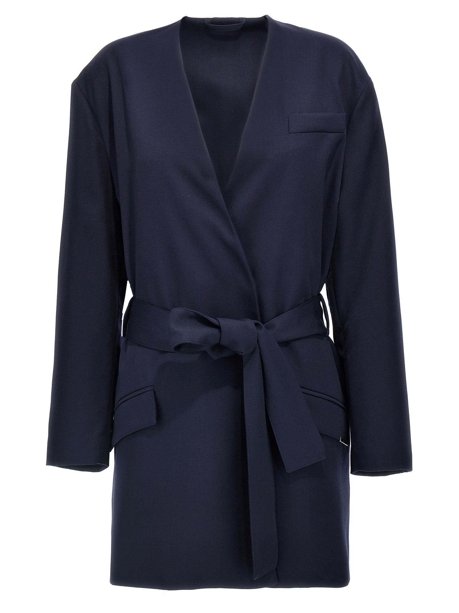 Cappotto di lana "lungo", stile abito, cintura sfoderata, rimovibile, maniche lunghe, tasche, prese d'aria laterale.