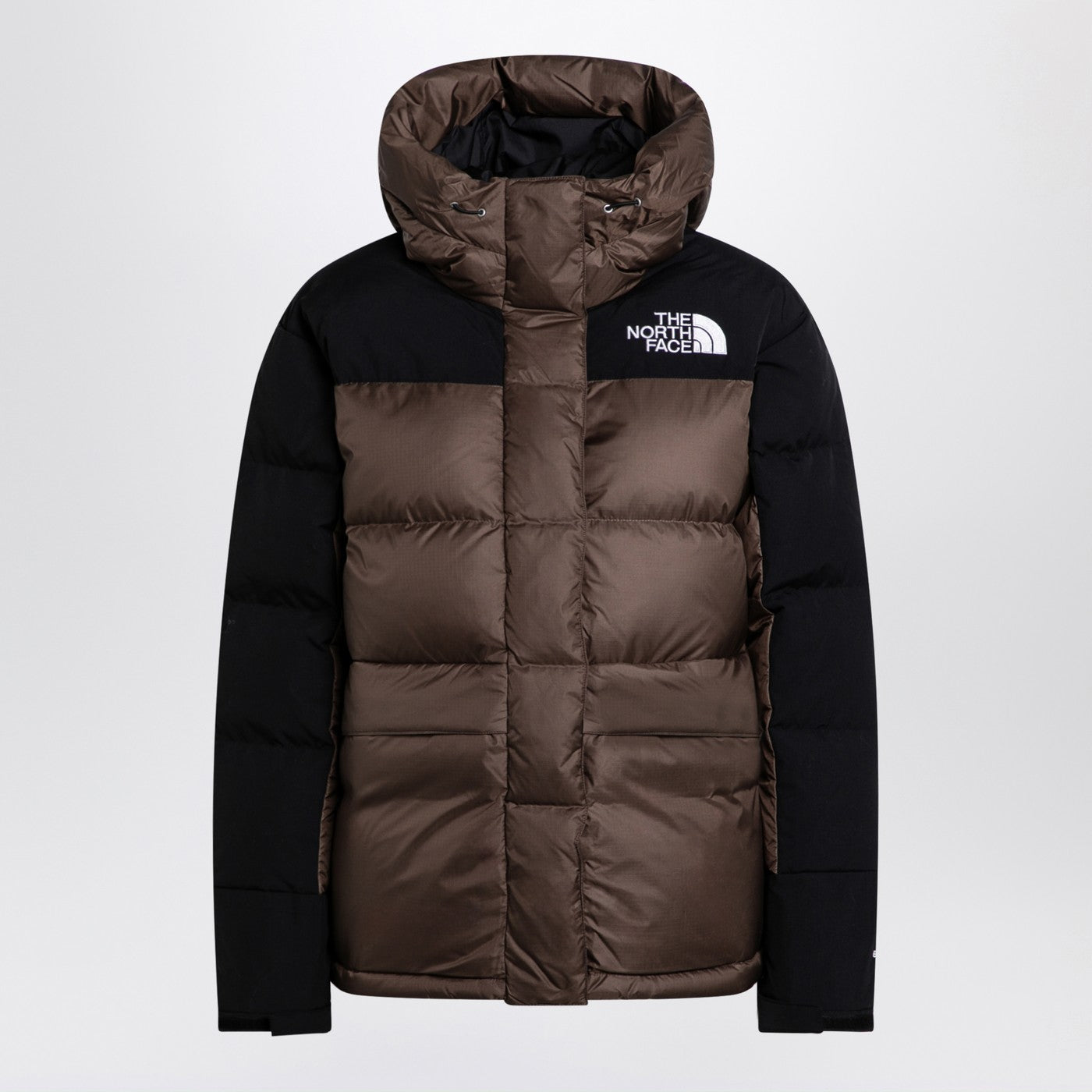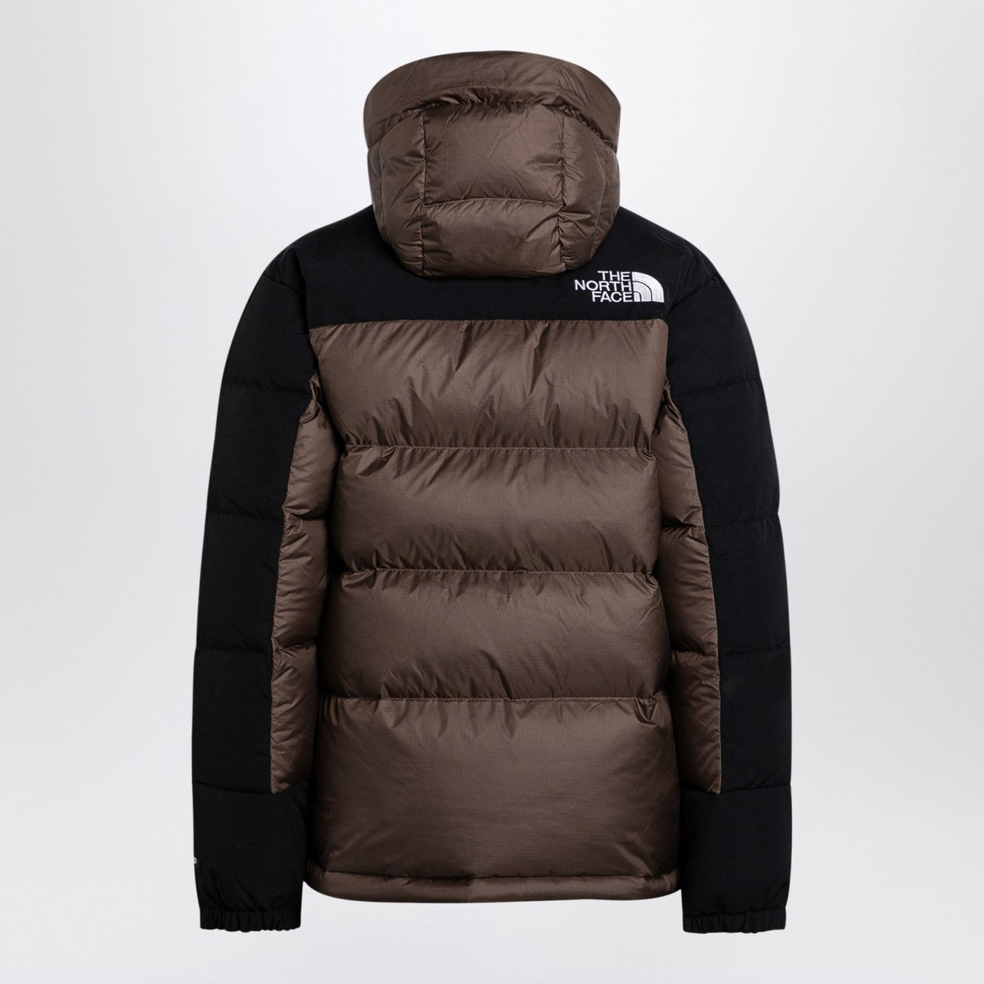 Giacca in giù in nylon imbottita marrone e nero dalla parete nord, con una zip nascosta e un fissaggio in velcro, cofano, collare alto, maniche lunghe con polsini regolabili, petto a contrasto e loghi posteriori e due tasche anteriori con zipped.