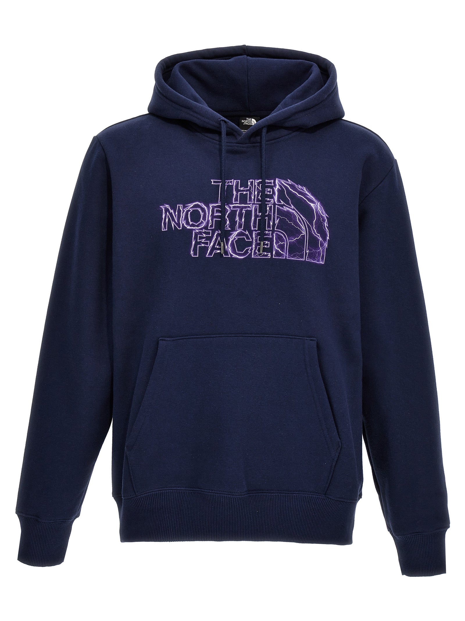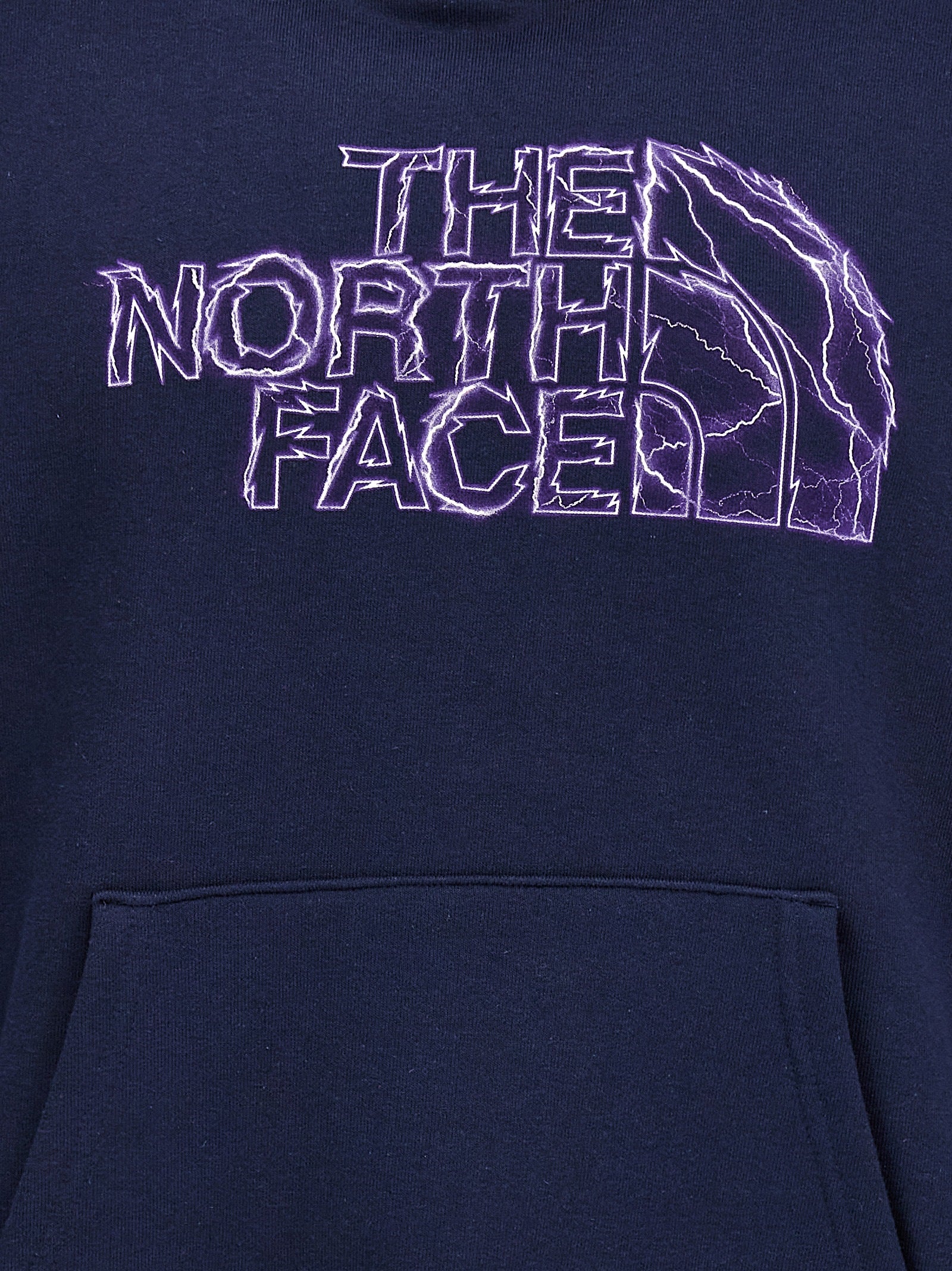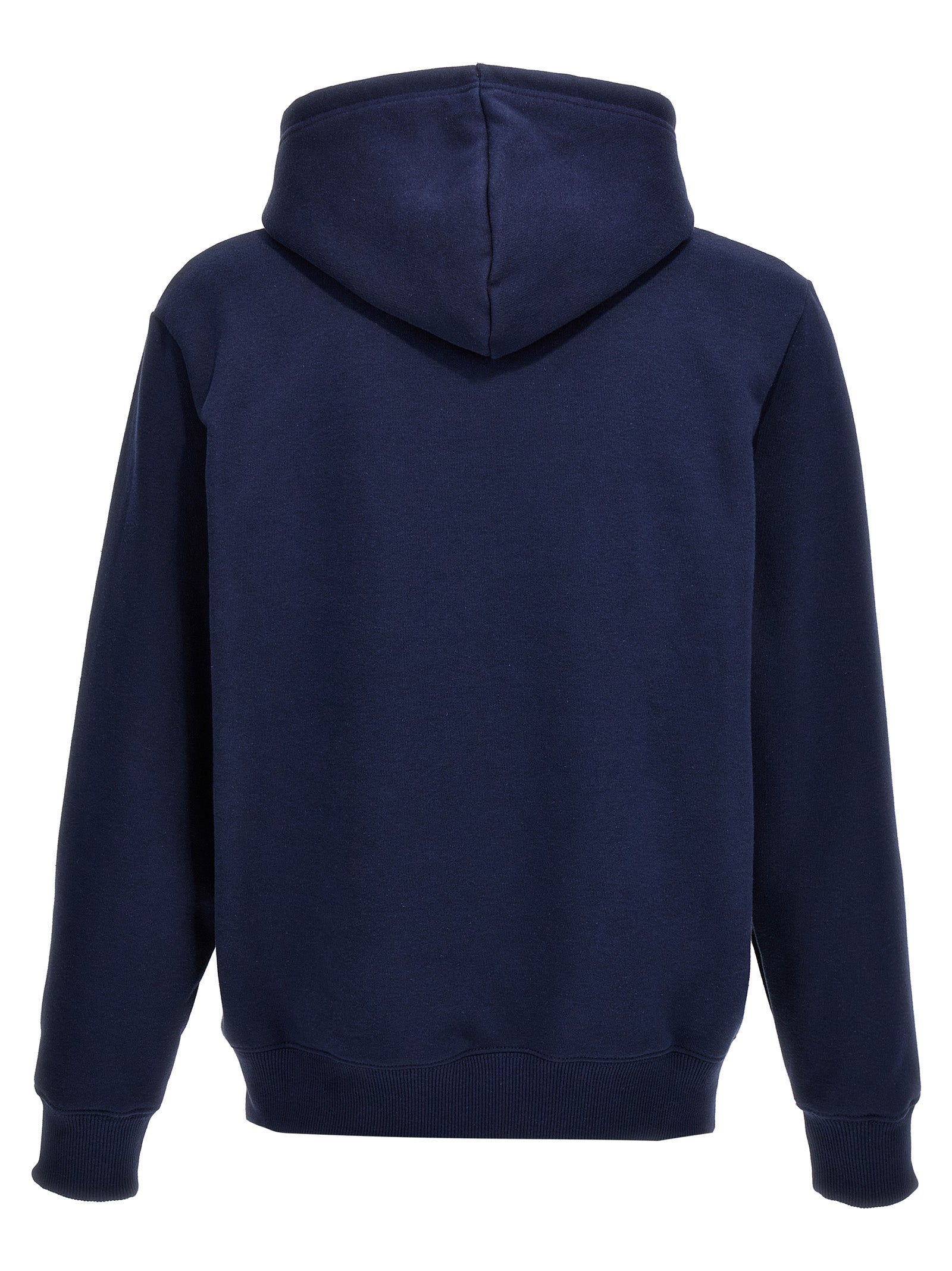 Felpa di miscela di cotone con stampa a logo anteriore, tasca del canguro, maniche a fanatico lungo.