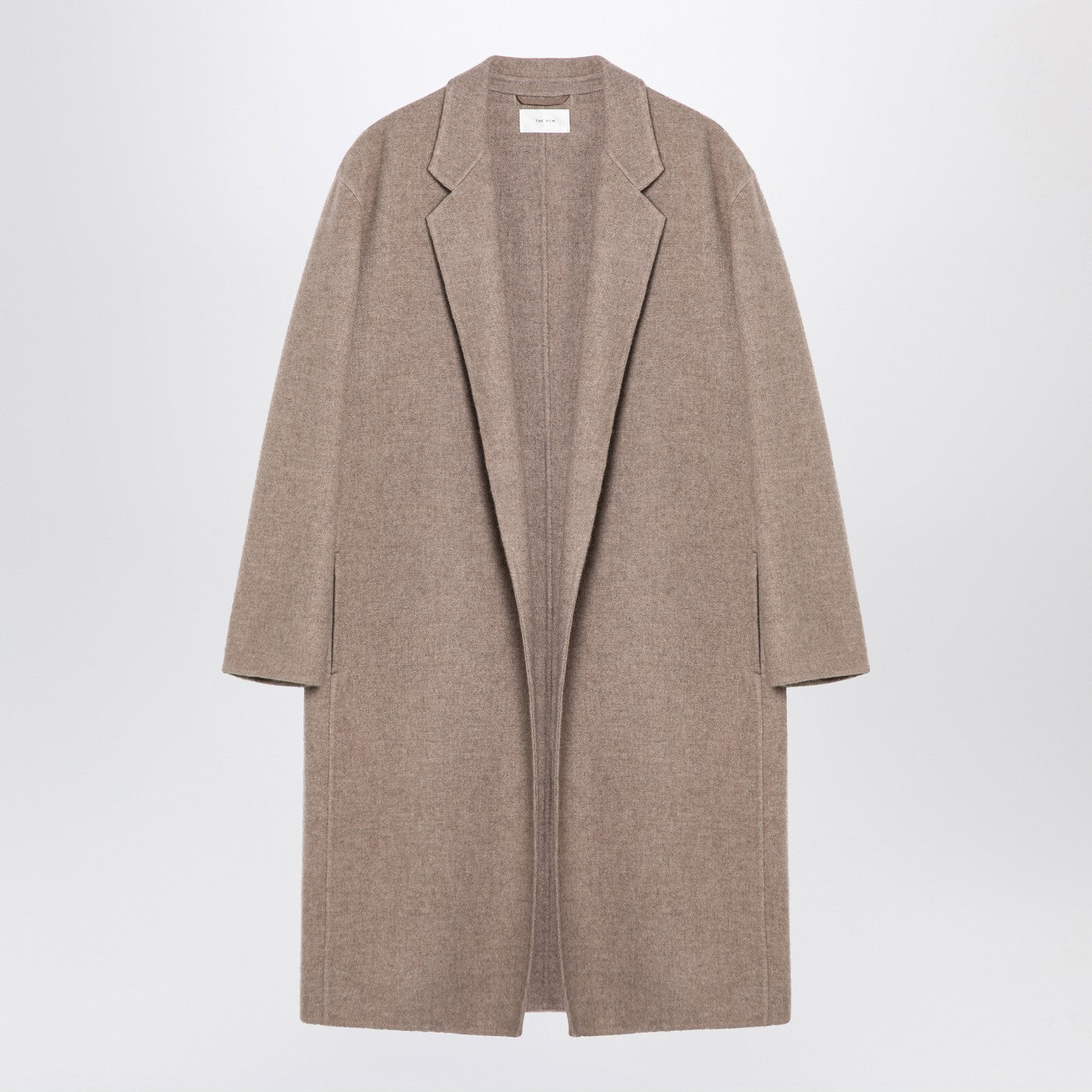 Il cappotto di cashmere beige di riga