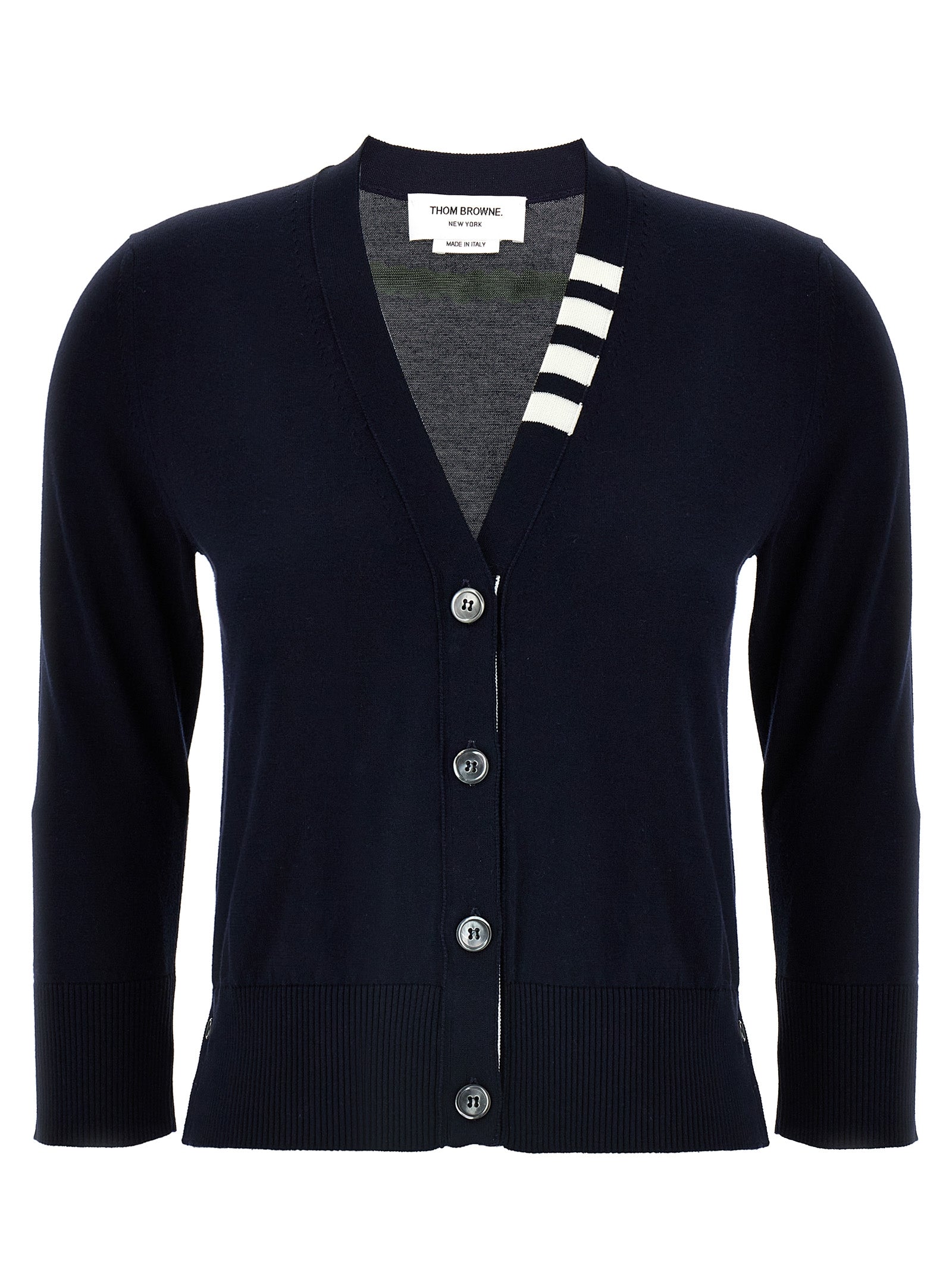 Cardigan di cotone, scollo a V con dettaglio "4bar", chiusura dei pulsanti, maniche lunghe con polsini, divisioni laterali con chiusura dei pulsanti.
