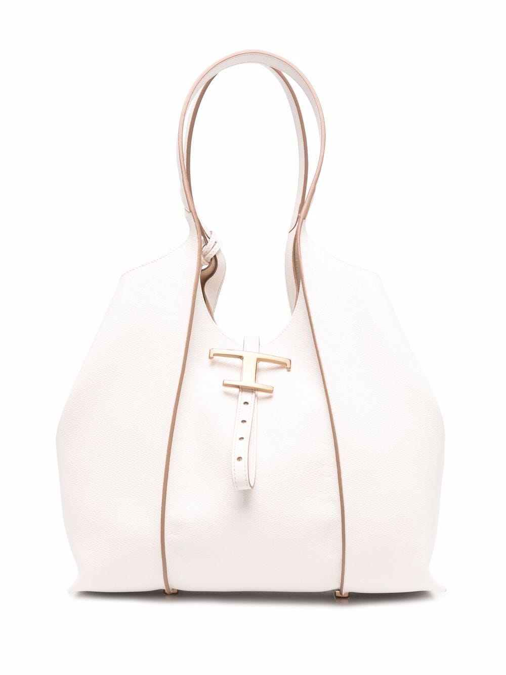 Borsa per lo shopping senza tempo in pelle bianca da Tod 'S Con due manici lunghi, compartimento principale, busta rimovibile, hardware tono in oro e design a pannelli.