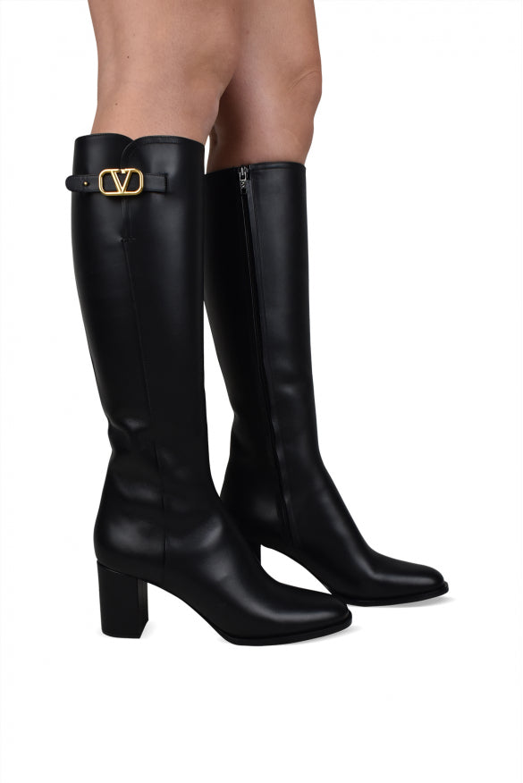 Stivali VLogo Valentino Garavani in pelle di vitello nero.