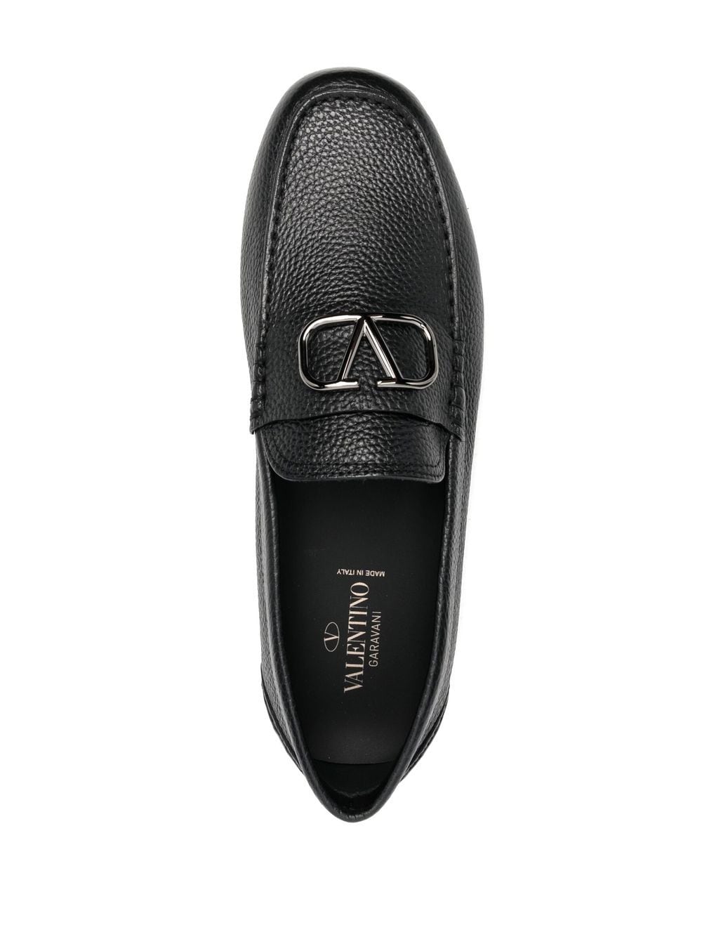 Vlogo Signature Leather Driving Scarpe di Valentino Garavani con nero, pelle di vitello, consistenza a grana, firma Vlogo, soletta in pelle di marca, punta rotonda, suola in gomma piatta e stile slip-on.
