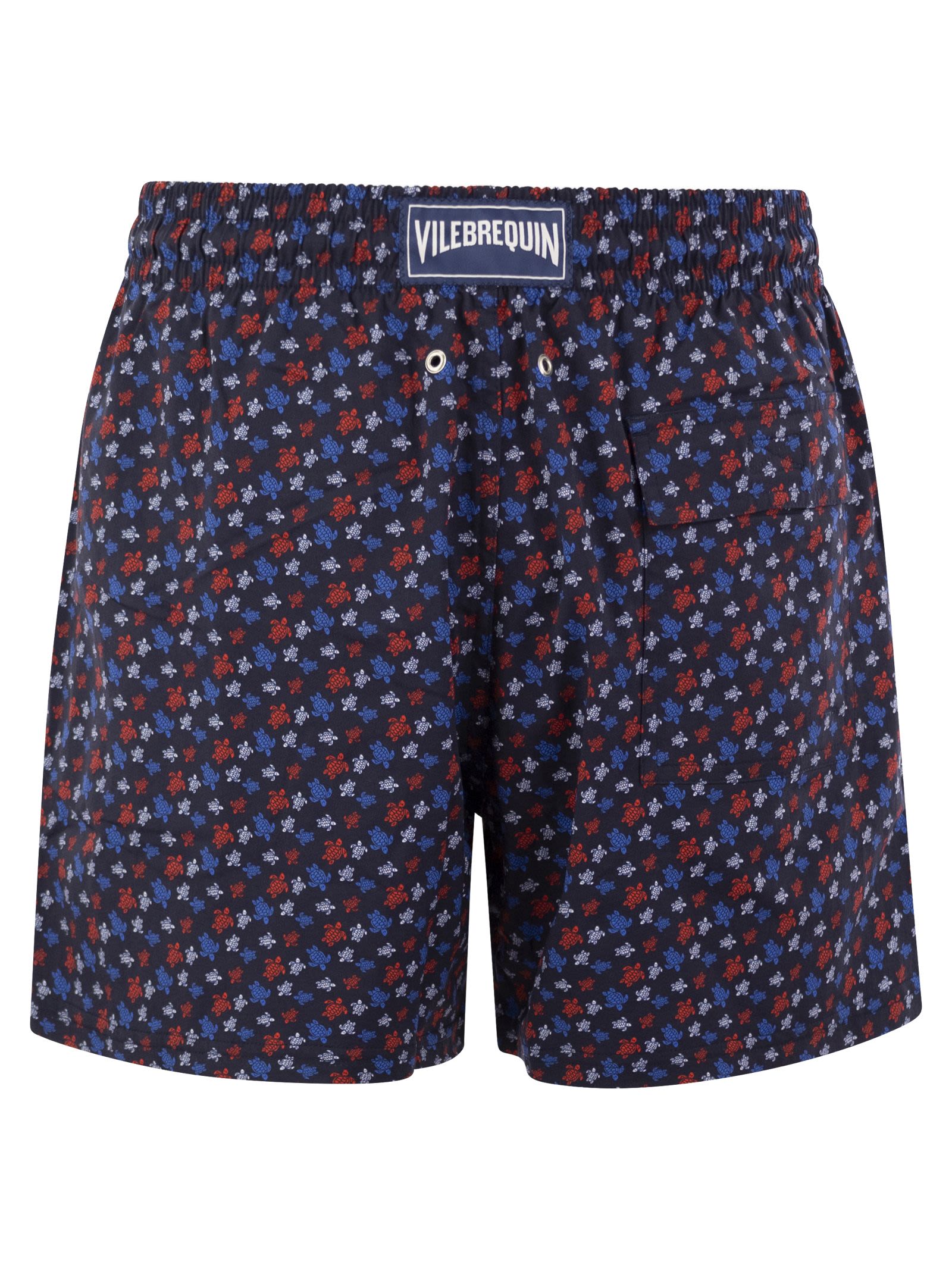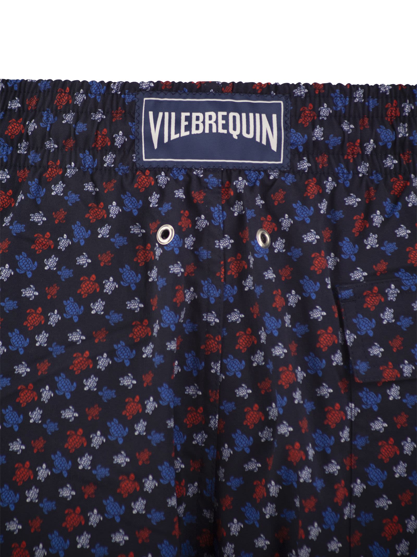 Questi pantaloncini da bagno elasticizzano sono perfetti per lunghe giornate estive. Realizzato in poliammide riciclata, con cintura elastica e coulisse. - Shorti a spiaggia tagliati più corti in tessuto elasticizzato - cintura elasticizzata con estremità corse e zamak con incisione di vilebrequin - The Water - Men's Boardshorts - Micro Ronde des Tortues Boardshorts ID Designer ID: MSOAF139 390