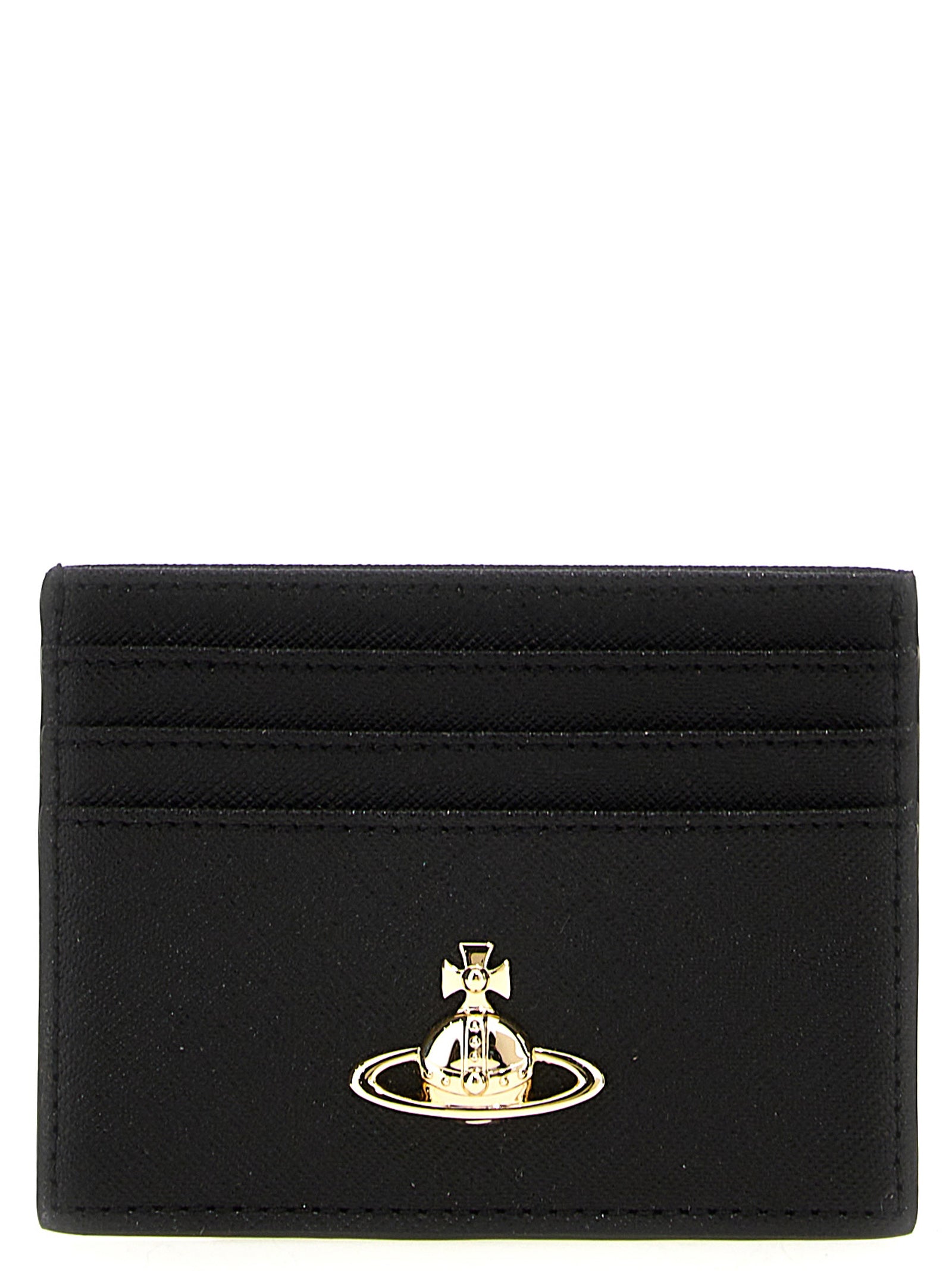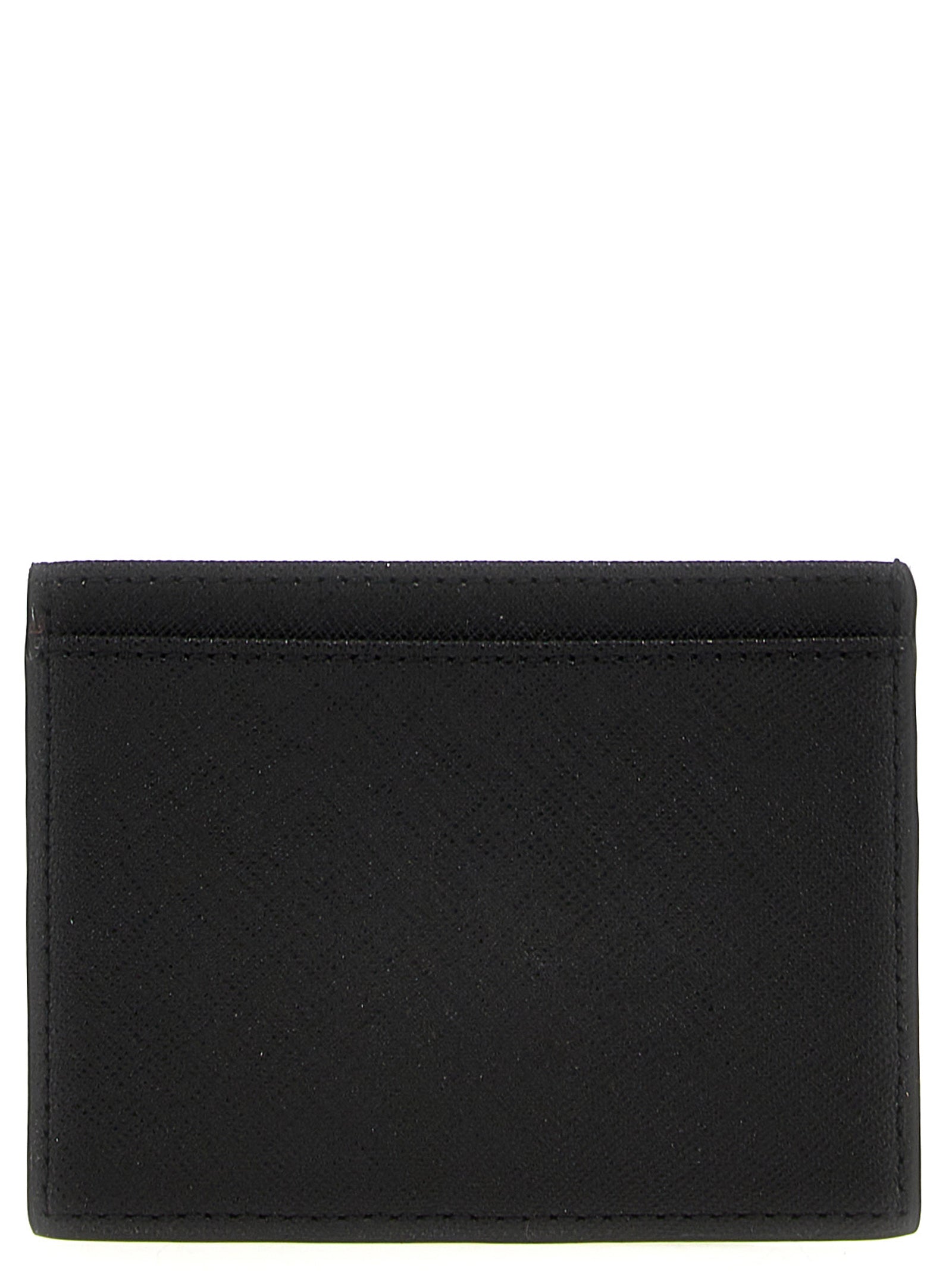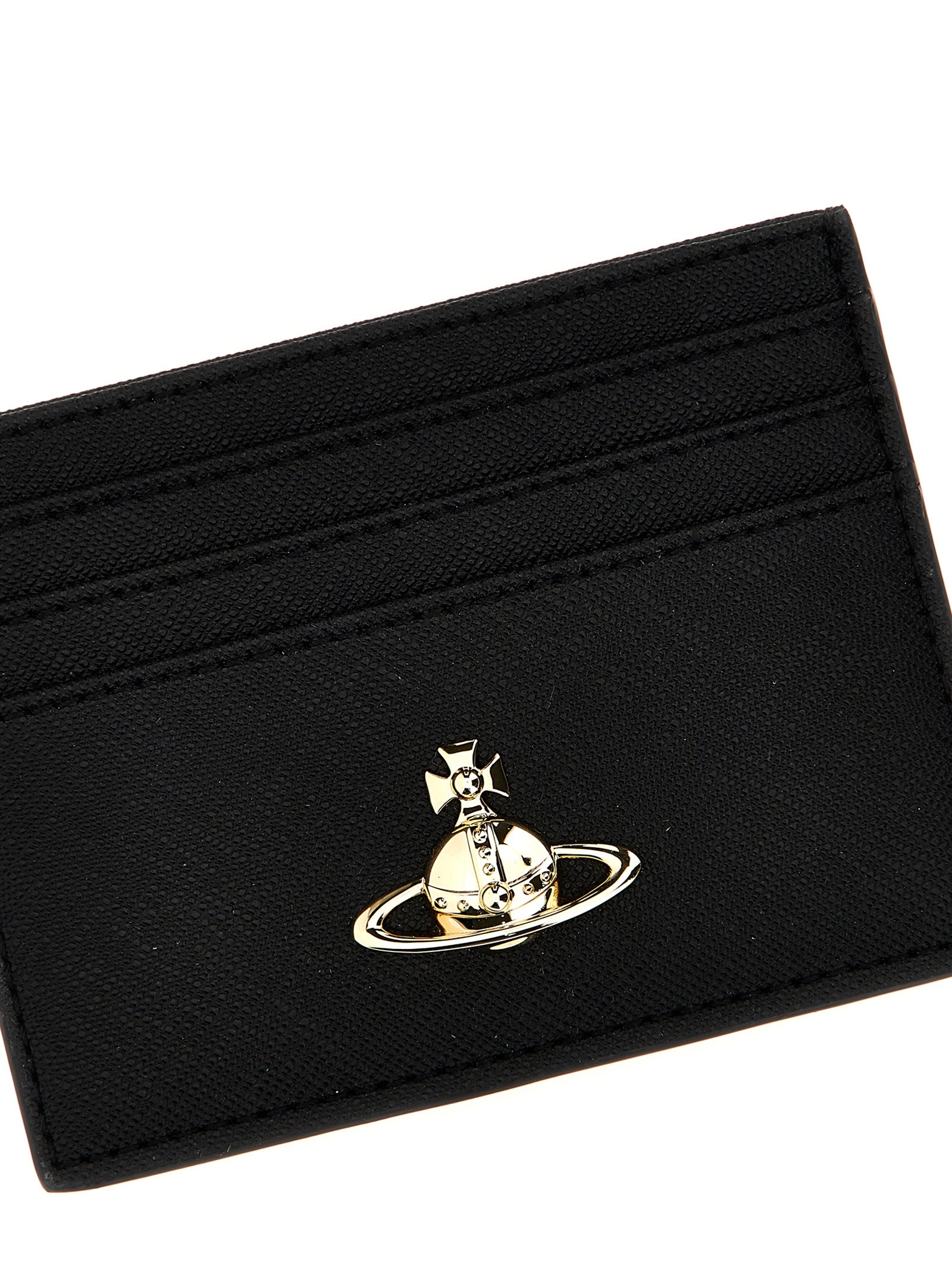 Porta della carta 'piatto' in tessuto a effetto saffiano con logo Orb in metallo in rilievo sul davanti.