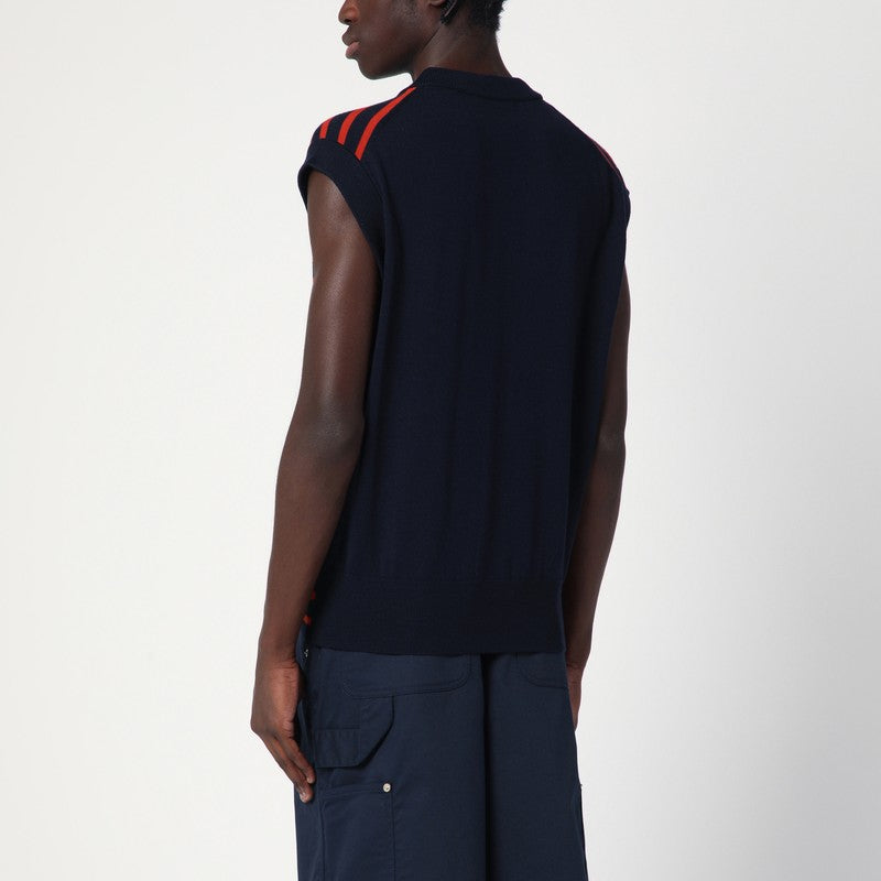 Galles Bonner Kamau Sleeveless Cardigan con strisce blu navy/rossa