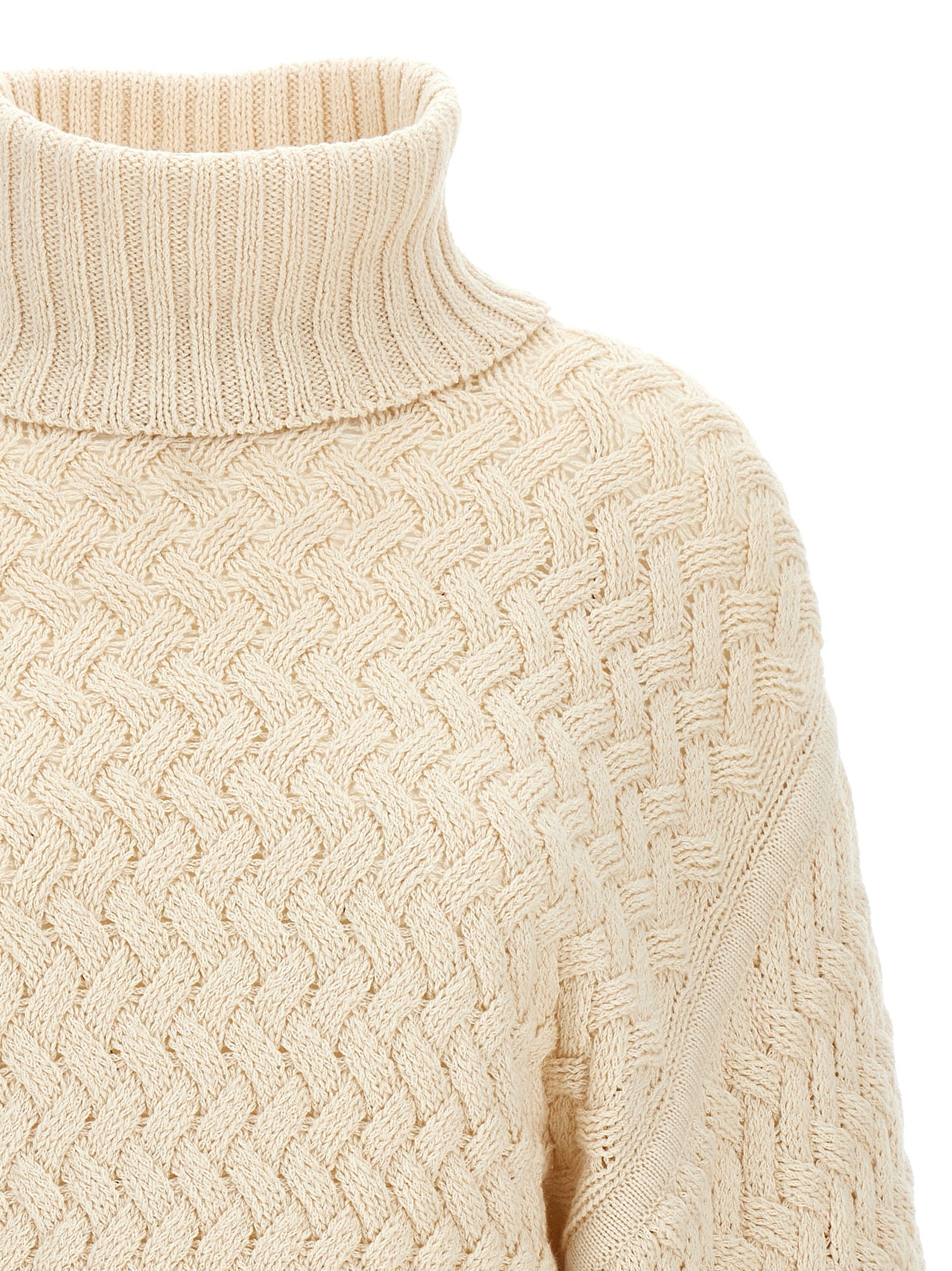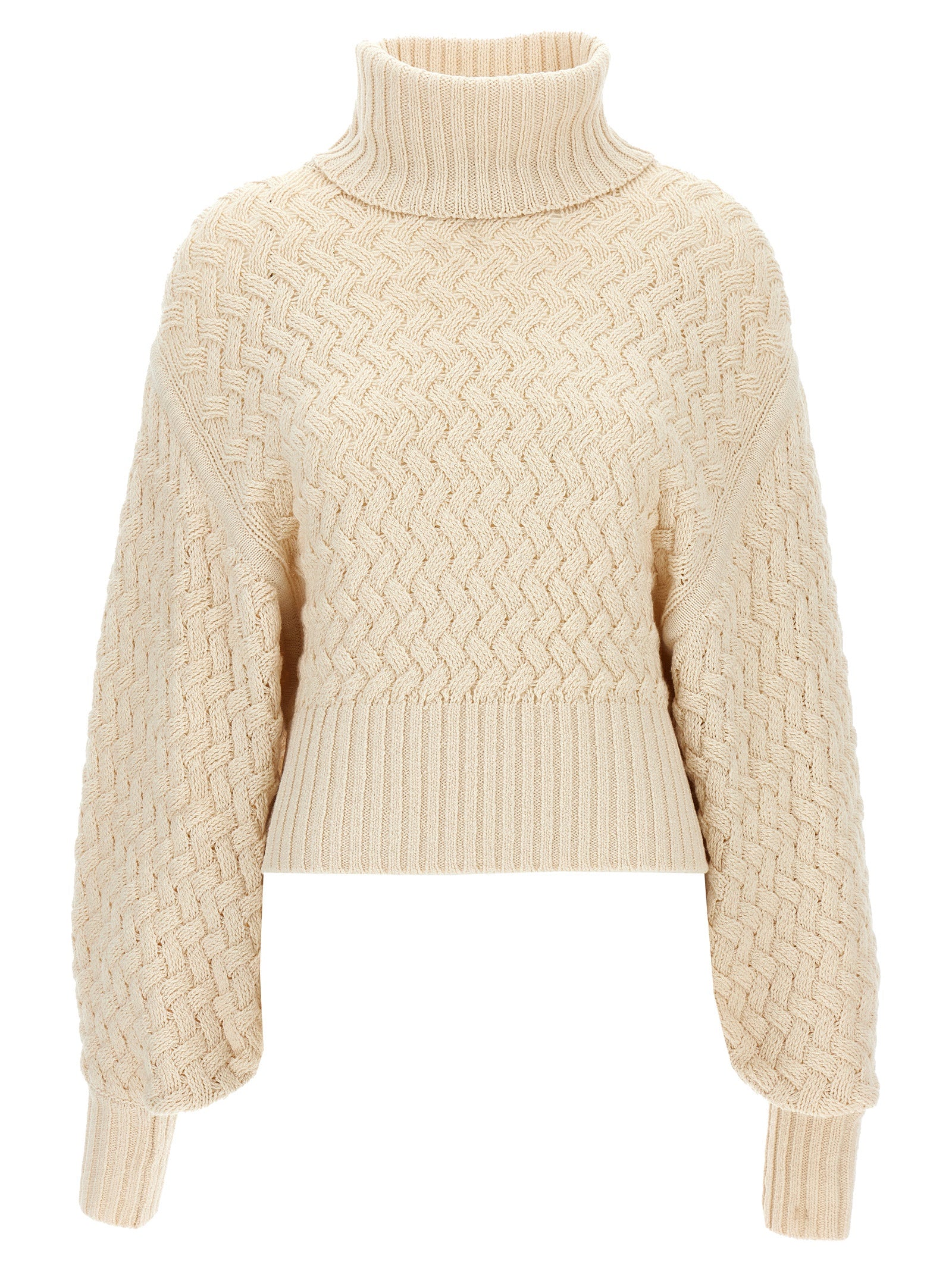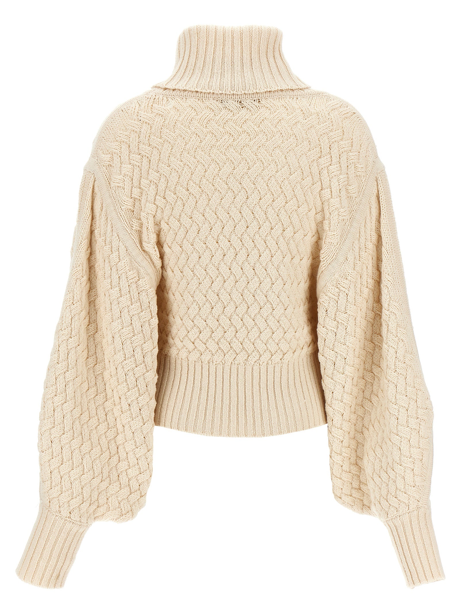Magione di miscela di lana e cotone "illustrativa" con collo alto, maniche canciature lunghe e larghe.
