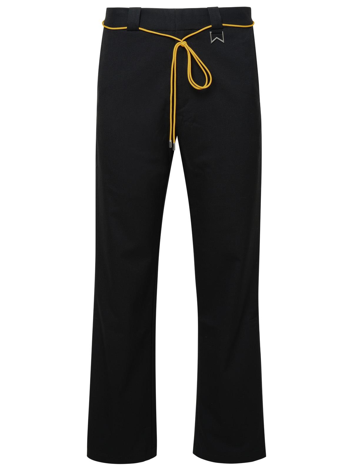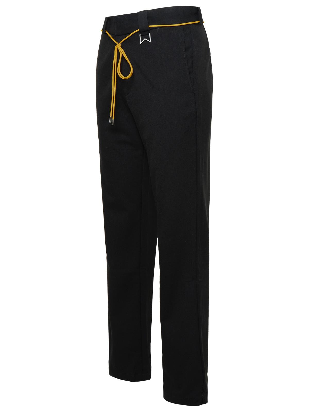 ストレートレッグジョガー、ベルトループ、サイドウェルトポケット、バックポケット、取り外し可能なロープベルト。