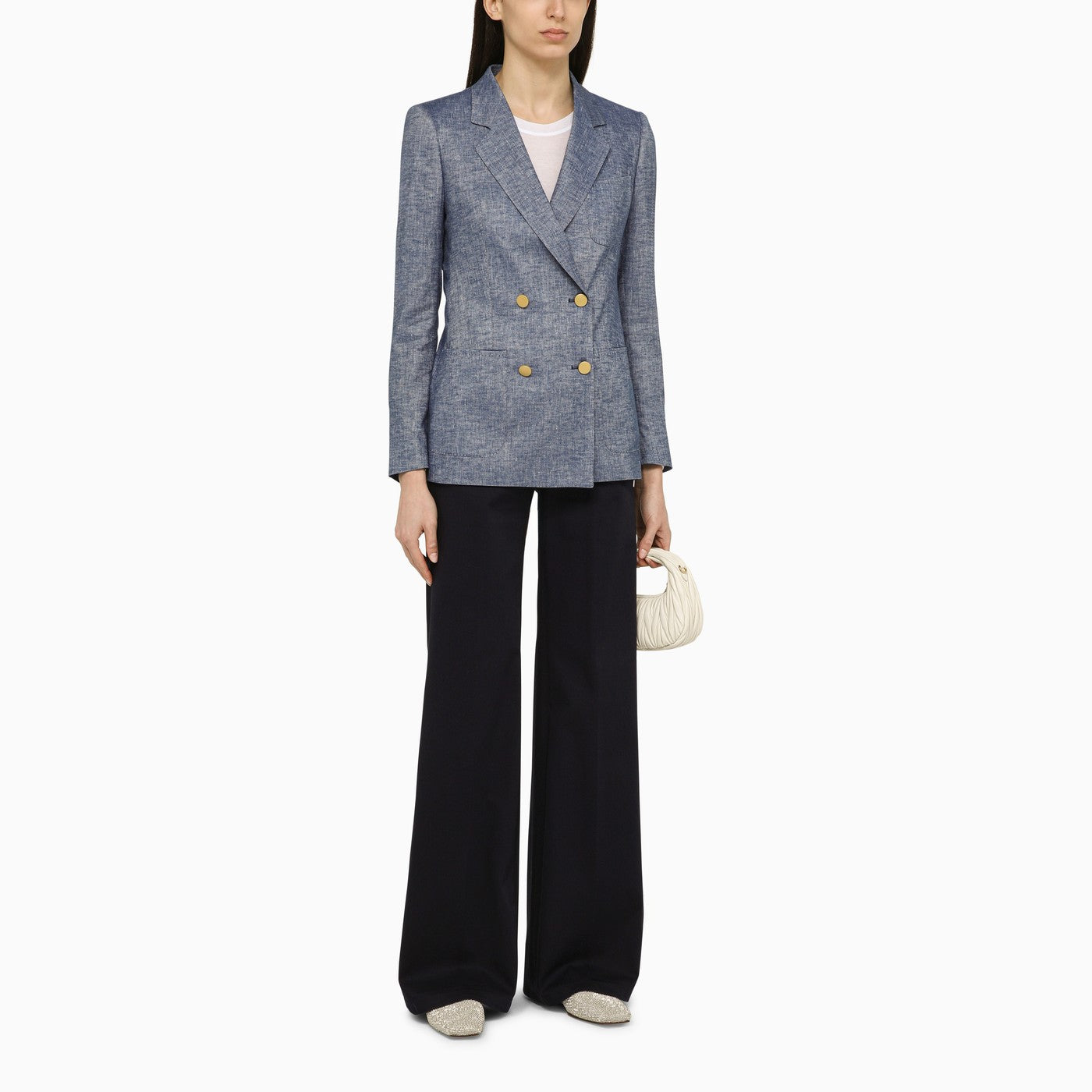 Blue Navy Cottonの部門5によるゆったりとしたズボン。フロントジップとボタンの固定、ベルトループ、2つのサイドウェルトポケット、ボタン付きの2つのバックウェルトポケットを備えています。