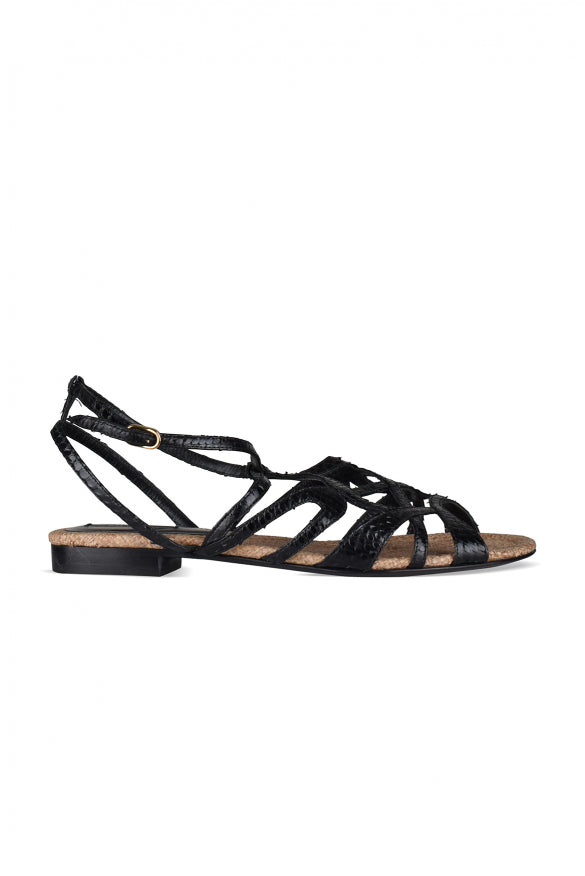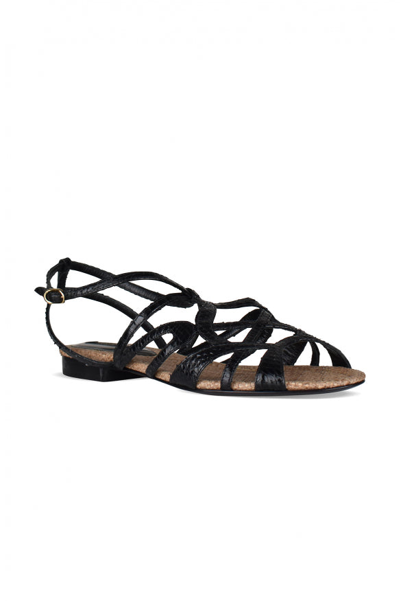 黒いワニ効果革のドルチェ&ガッバーナサンダル。