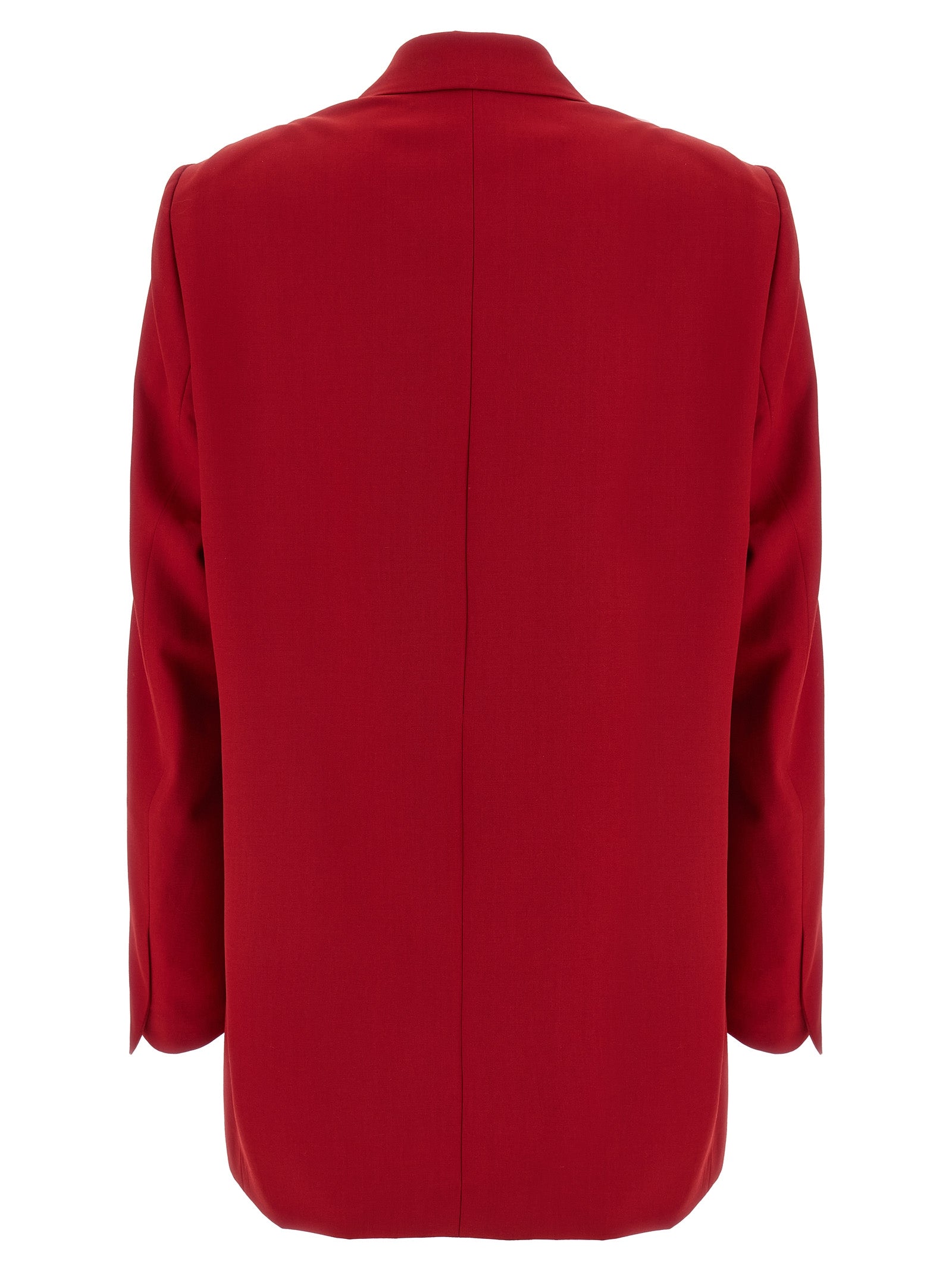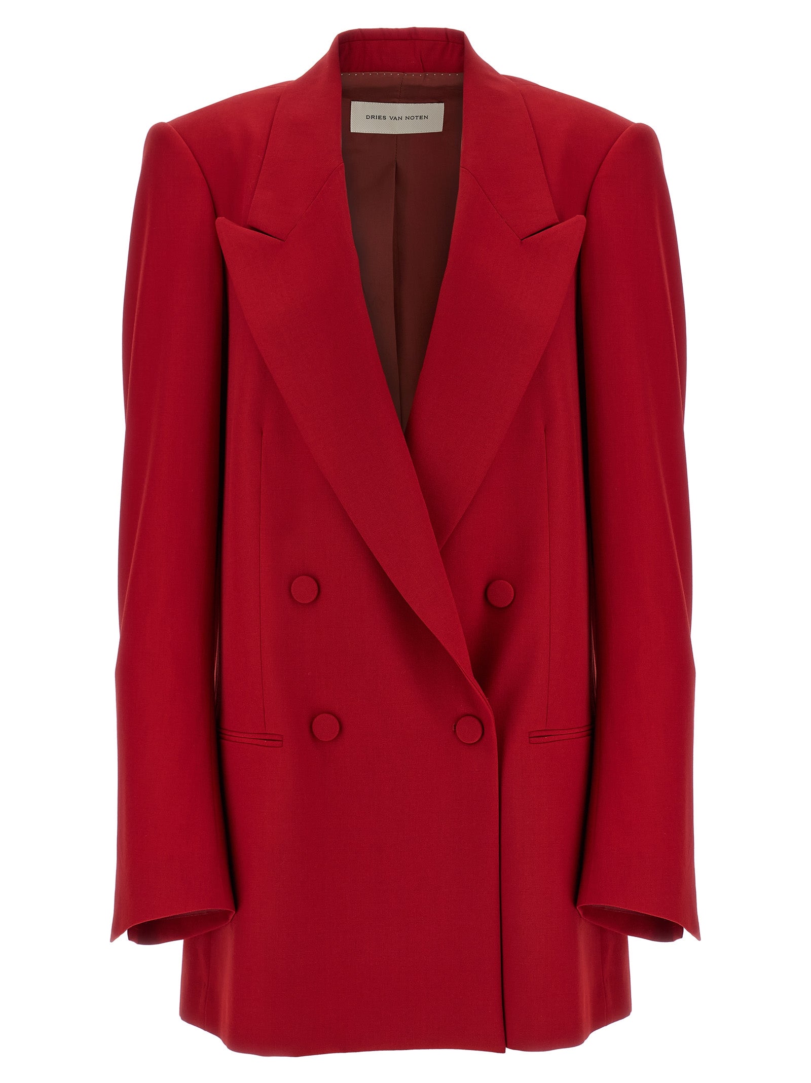 フロントボタンの閉鎖、ビスコースライニング、ピークラペル、パッチポケット、長袖を備えた「ブリンク」ダブルブレストウールブレザー。