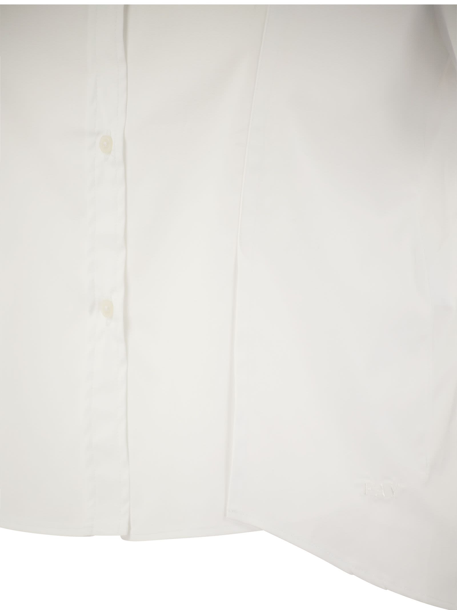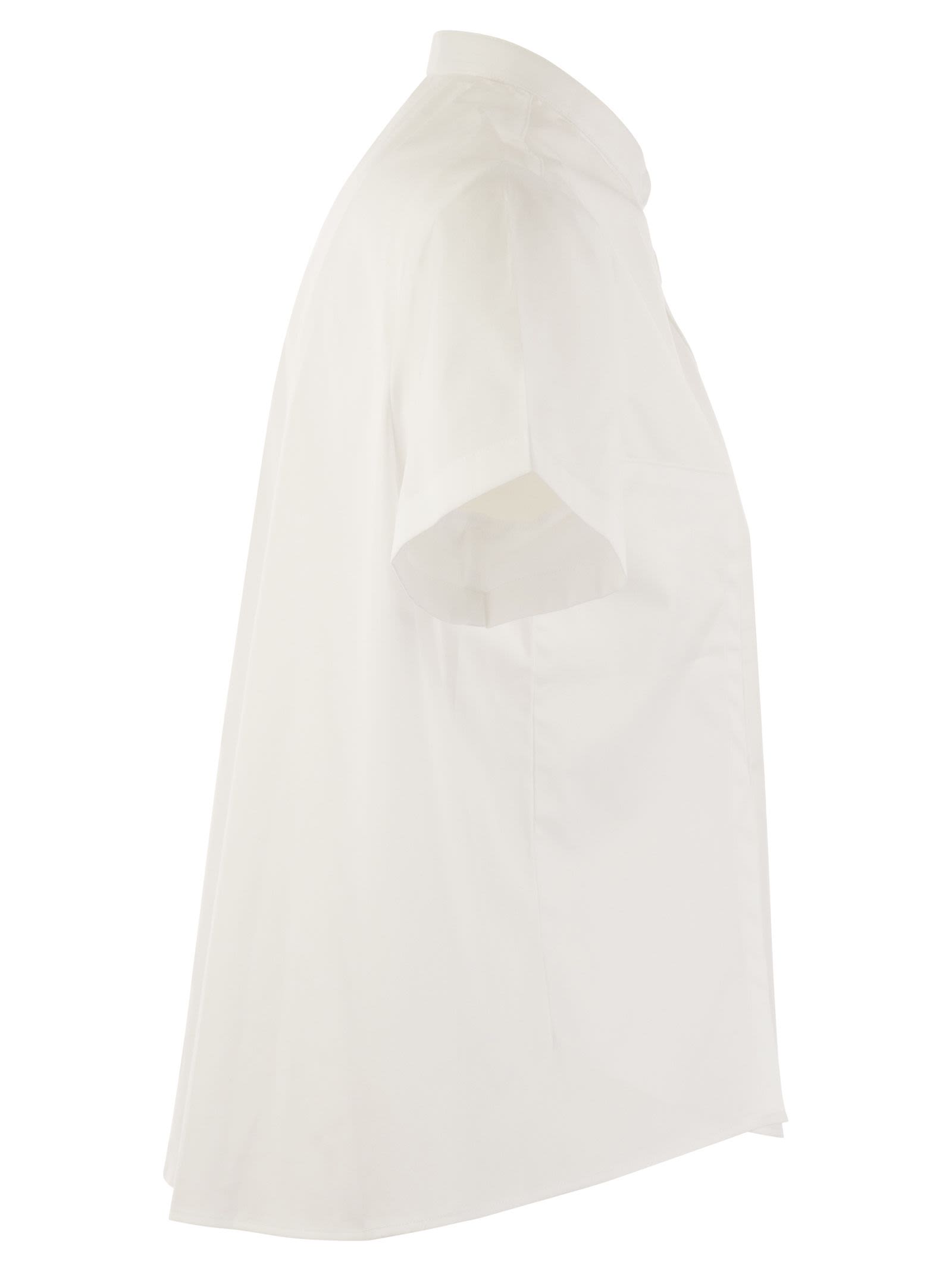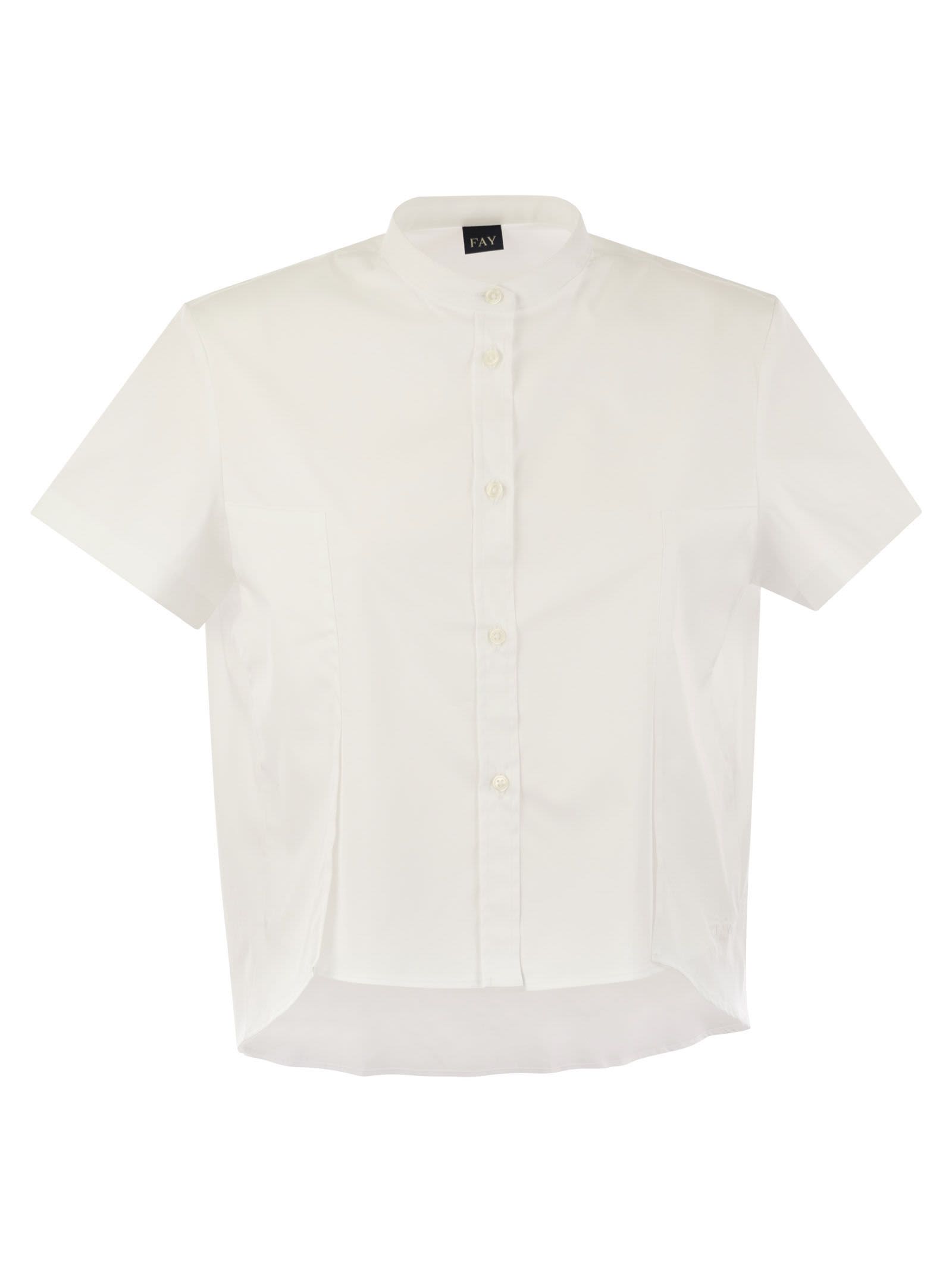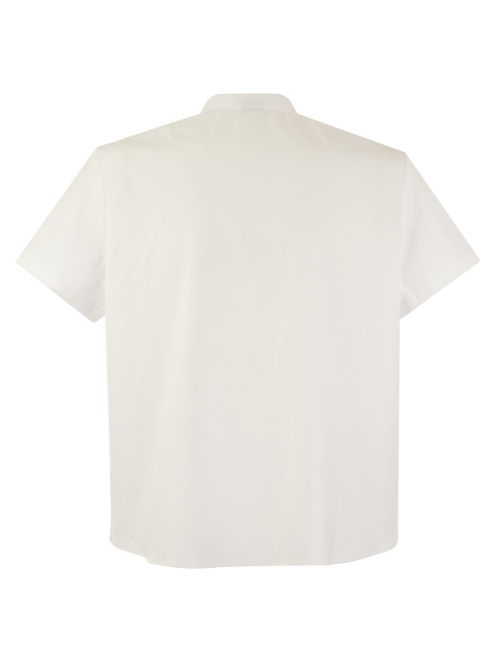 マンダリンの襟、半袖、丸い裾を備えたストレッチコットンポップリンの短袖のシャツ。オフィスから週末まで完璧、 it 底にフェイの刺繍が飾られています。 - フィッティング:通常のデザイナーID:NCWA248575SORMB001