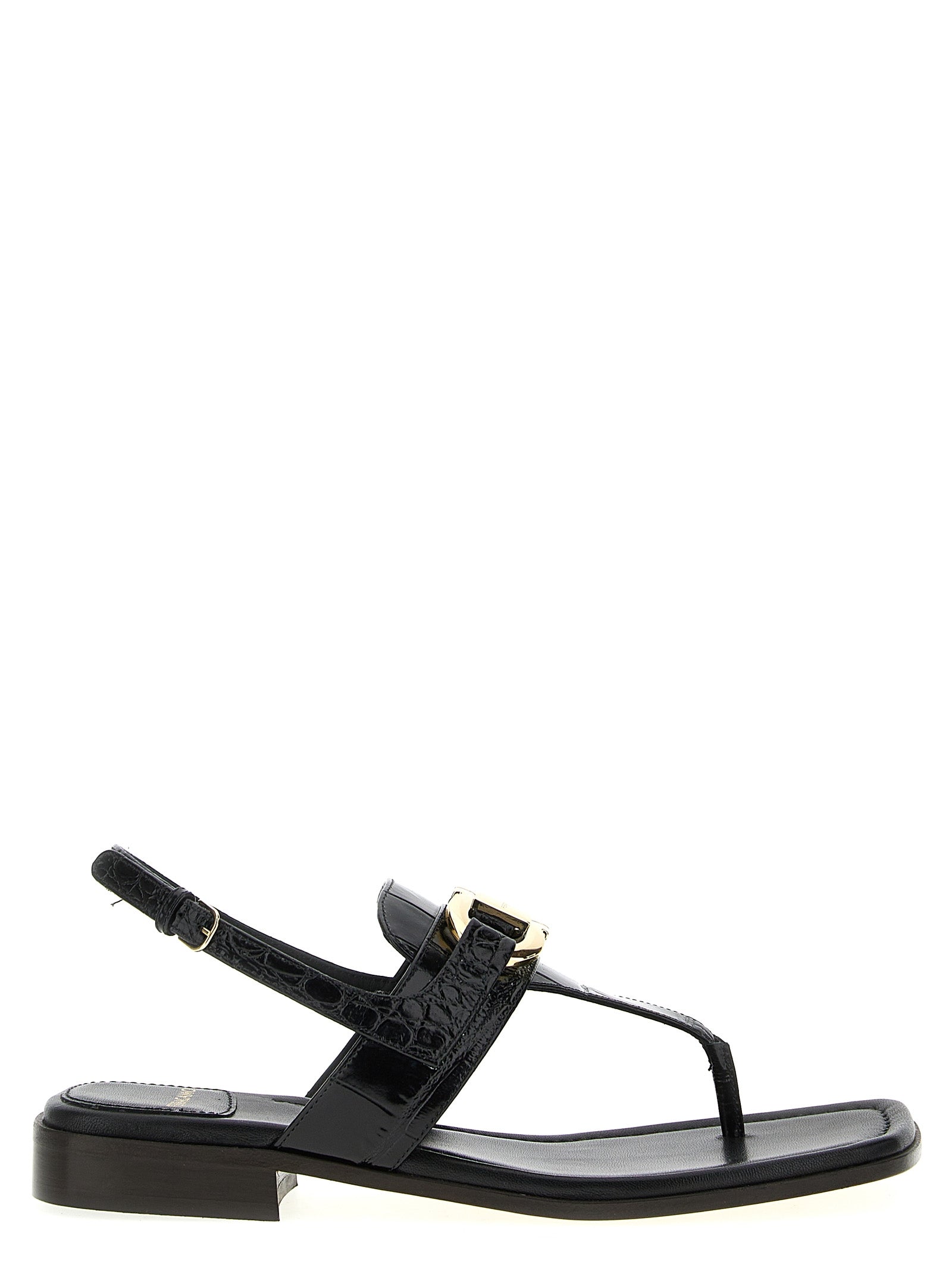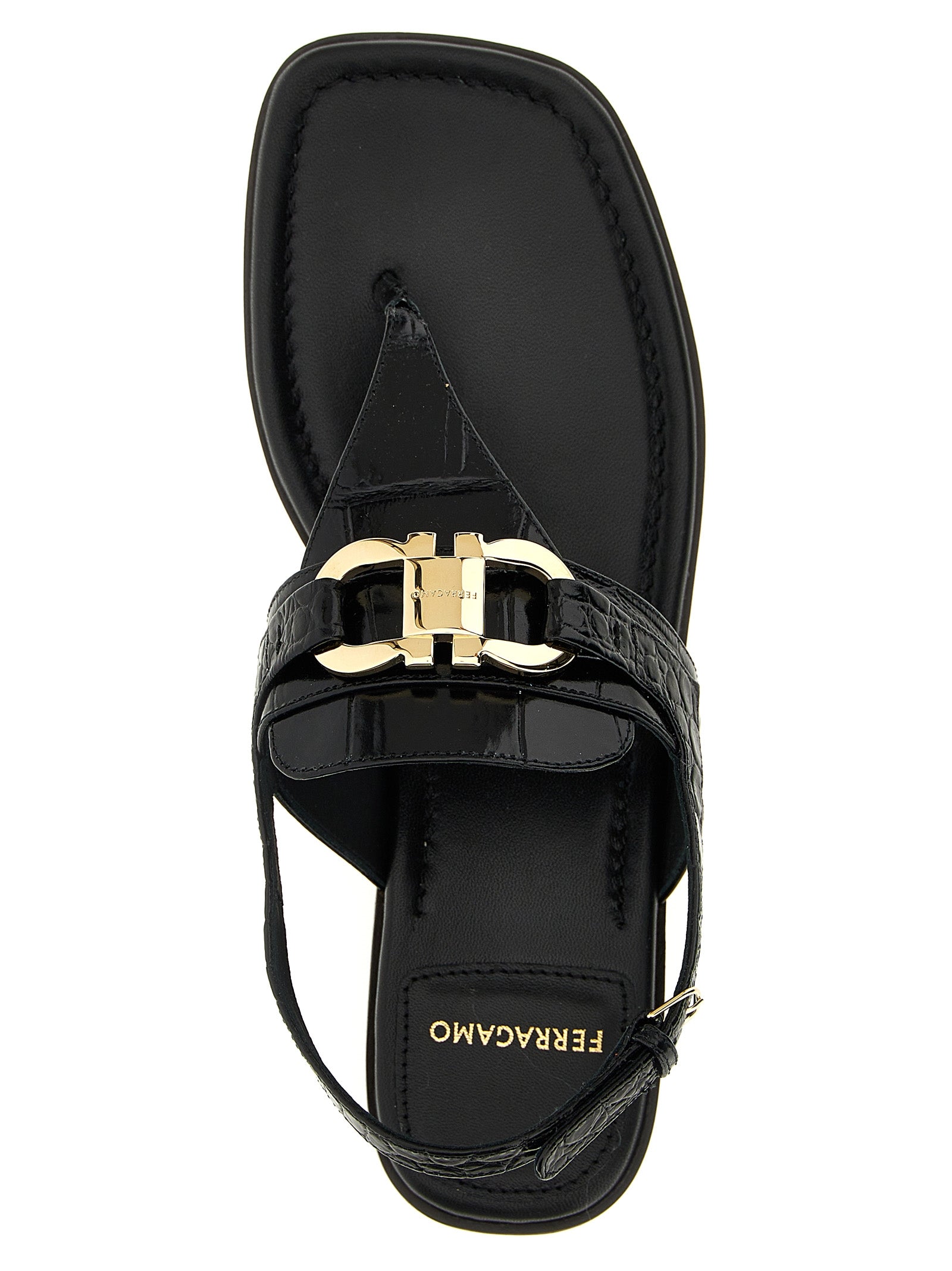 「Lula 'Croc革のひもサンダル、ガンシーニのディテール、調整可能なストラップ、革のソールが付いています。