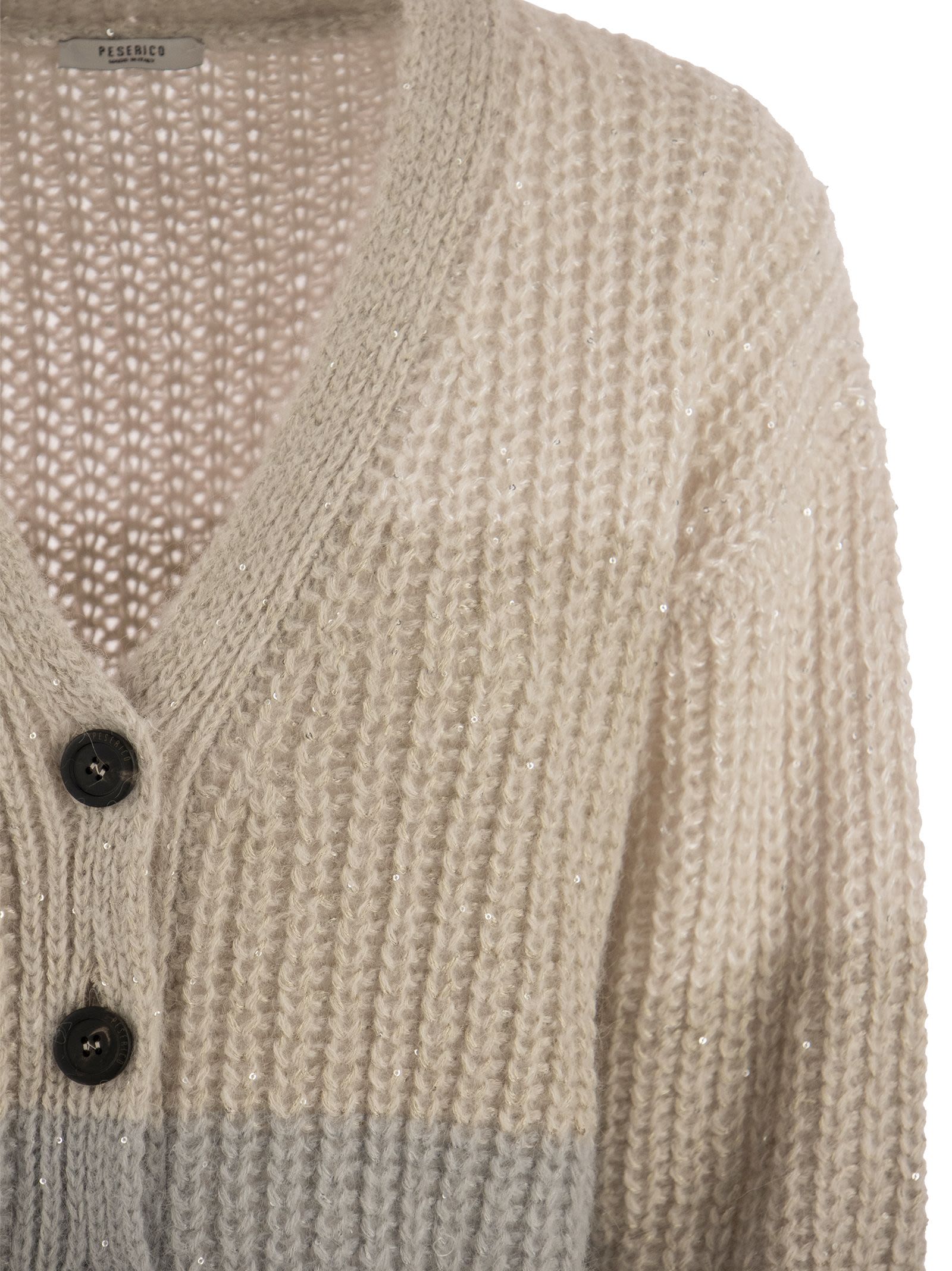 Peserico suri alpacaブレンドブロックカラーカーディガンとスパンコール