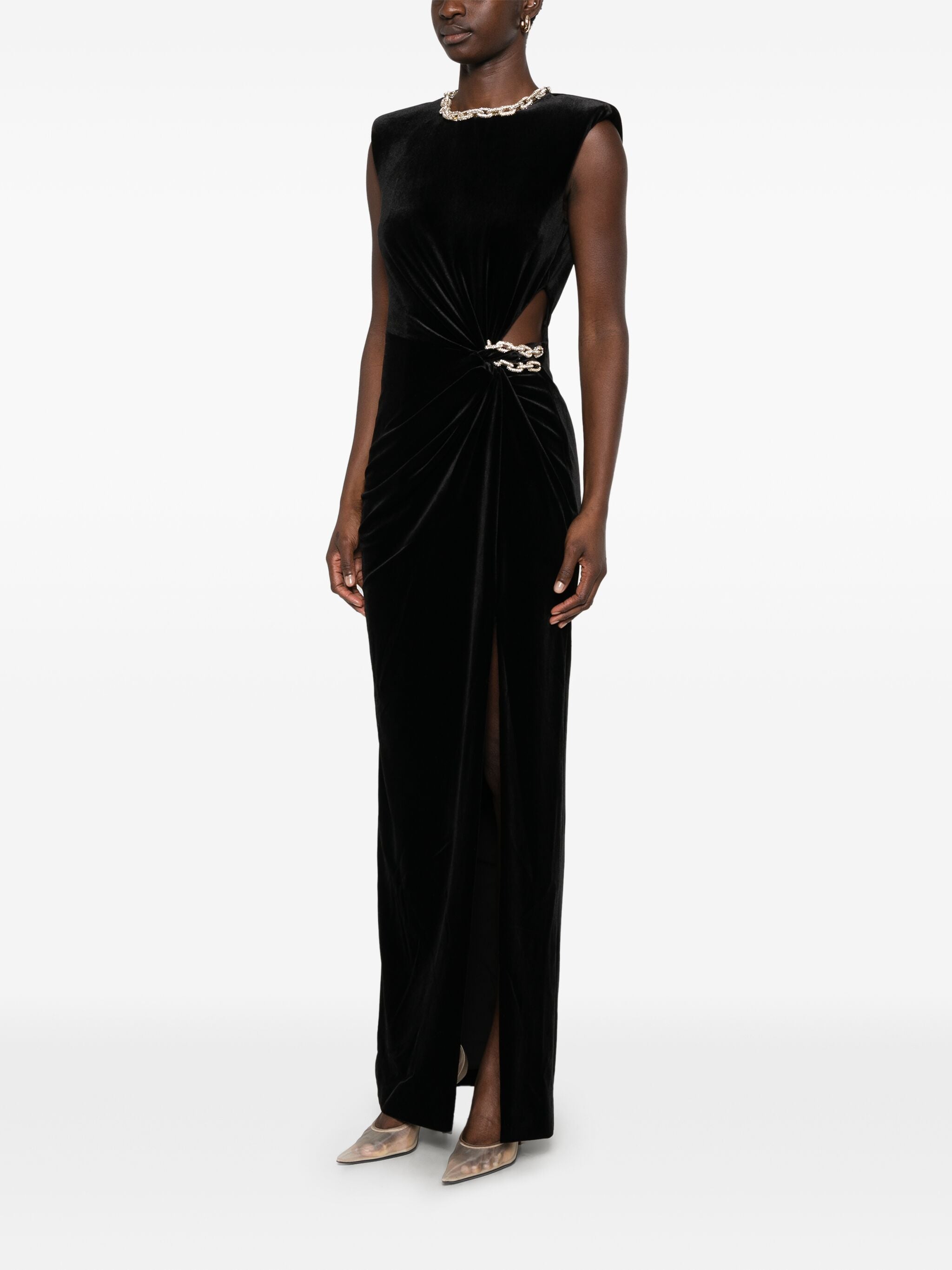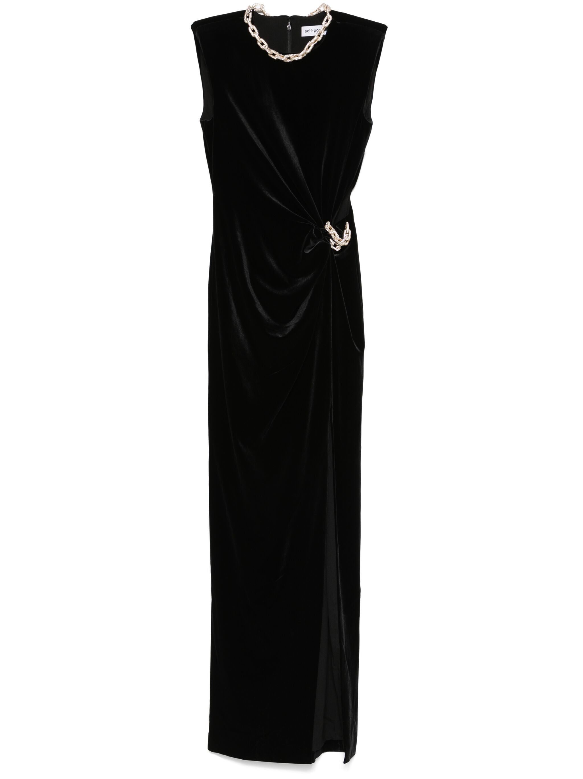 セルフポートレートブラックベルベット装飾されたマキシドレス