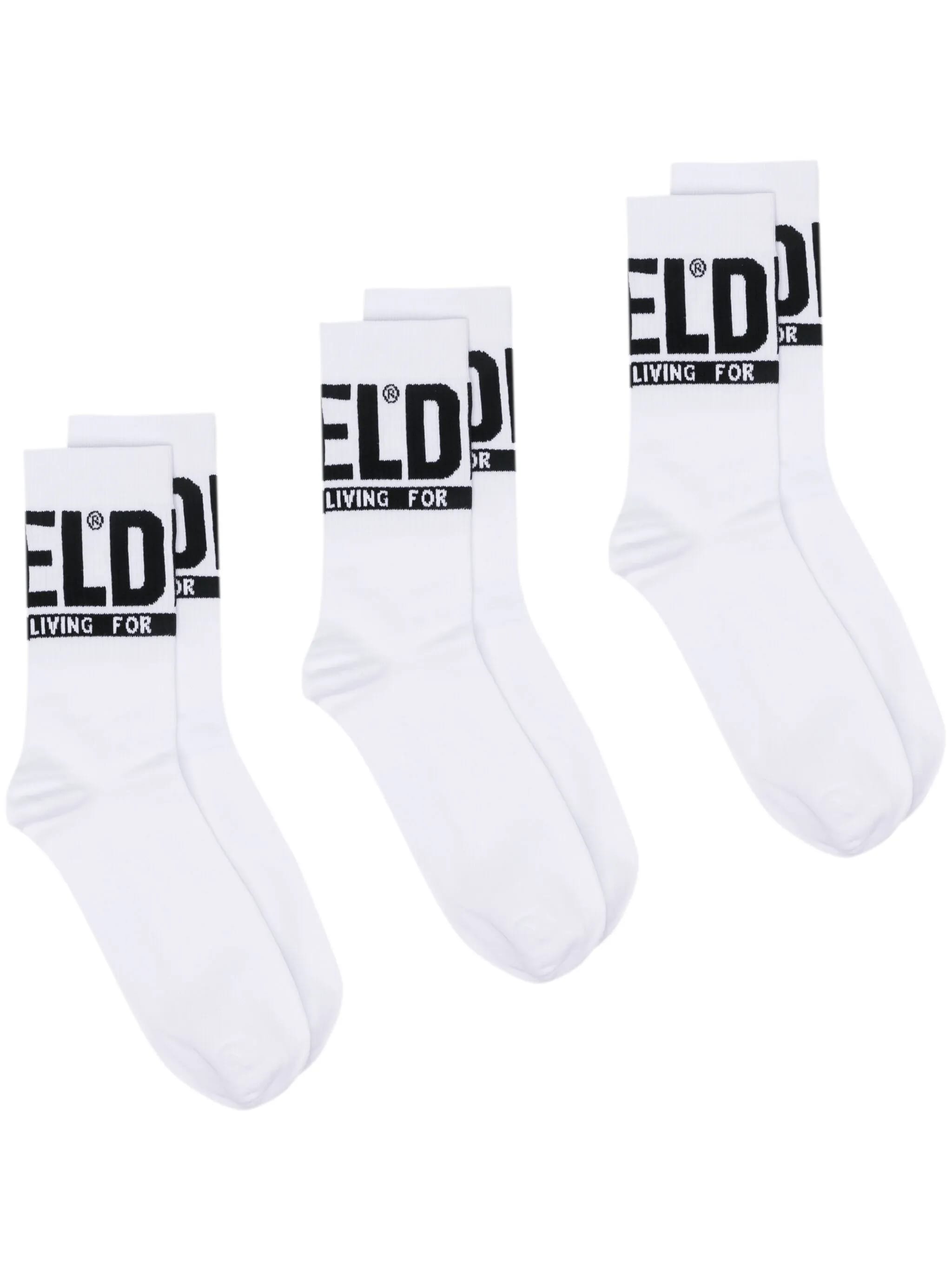 Skm-Ray-Threepack: Set da tre calzini da uomo in cotone stretch lavorato a coste, con logo bicolore Diesel For Successful Living. Comodi e resistenti, perfetti per l’uso quotidiano. Supporta la produzione responsabile di cotone con Diesel!