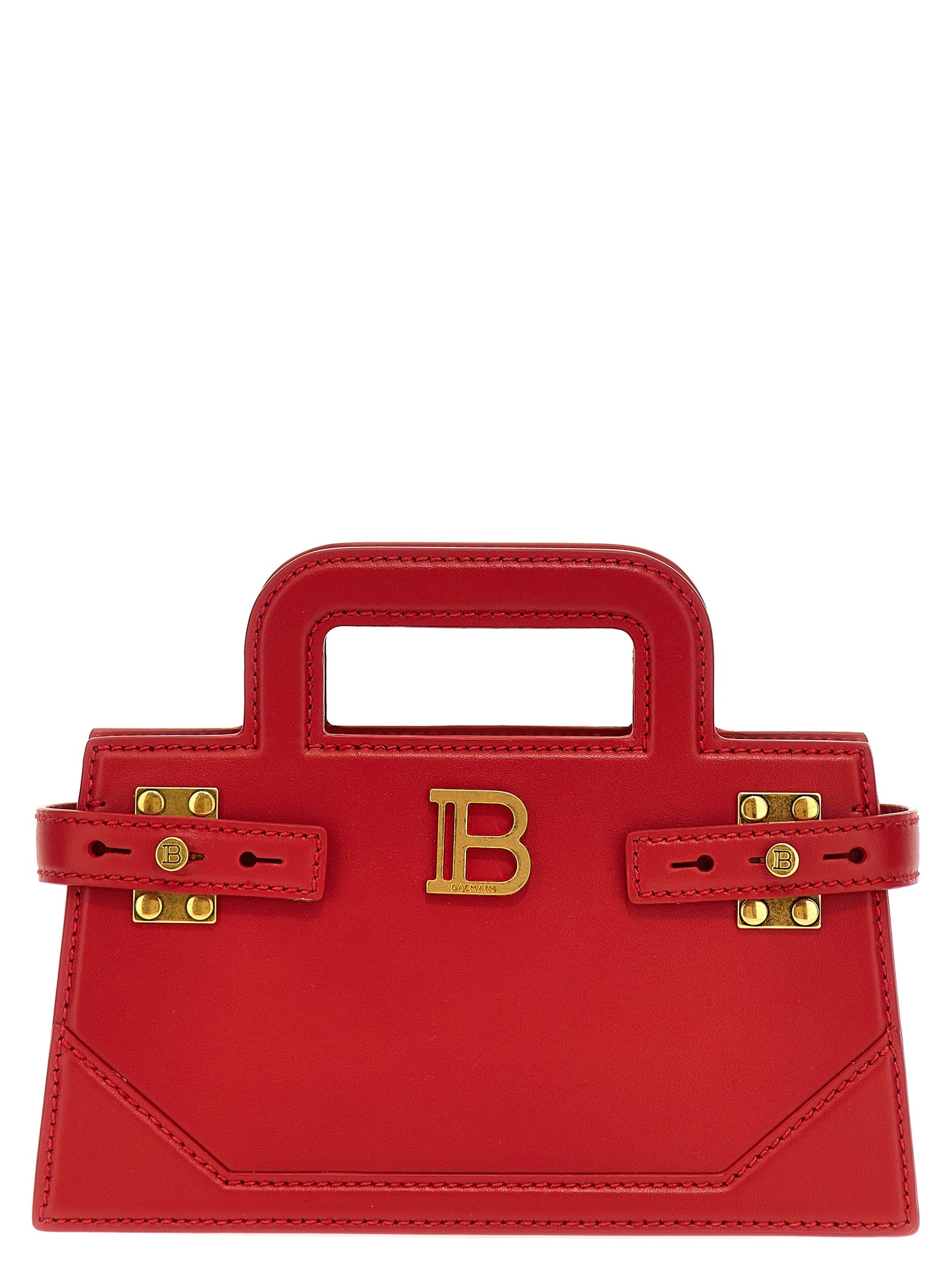 전면 빈티지 금속 로고가있는 'B-Buzz Small'가죽 핸드백, 이중 손잡이, 체인 어깨 끈, 빈티지 금속 세부 사항, 조절 식 측면 스트랩, 자기 폐쇄.
