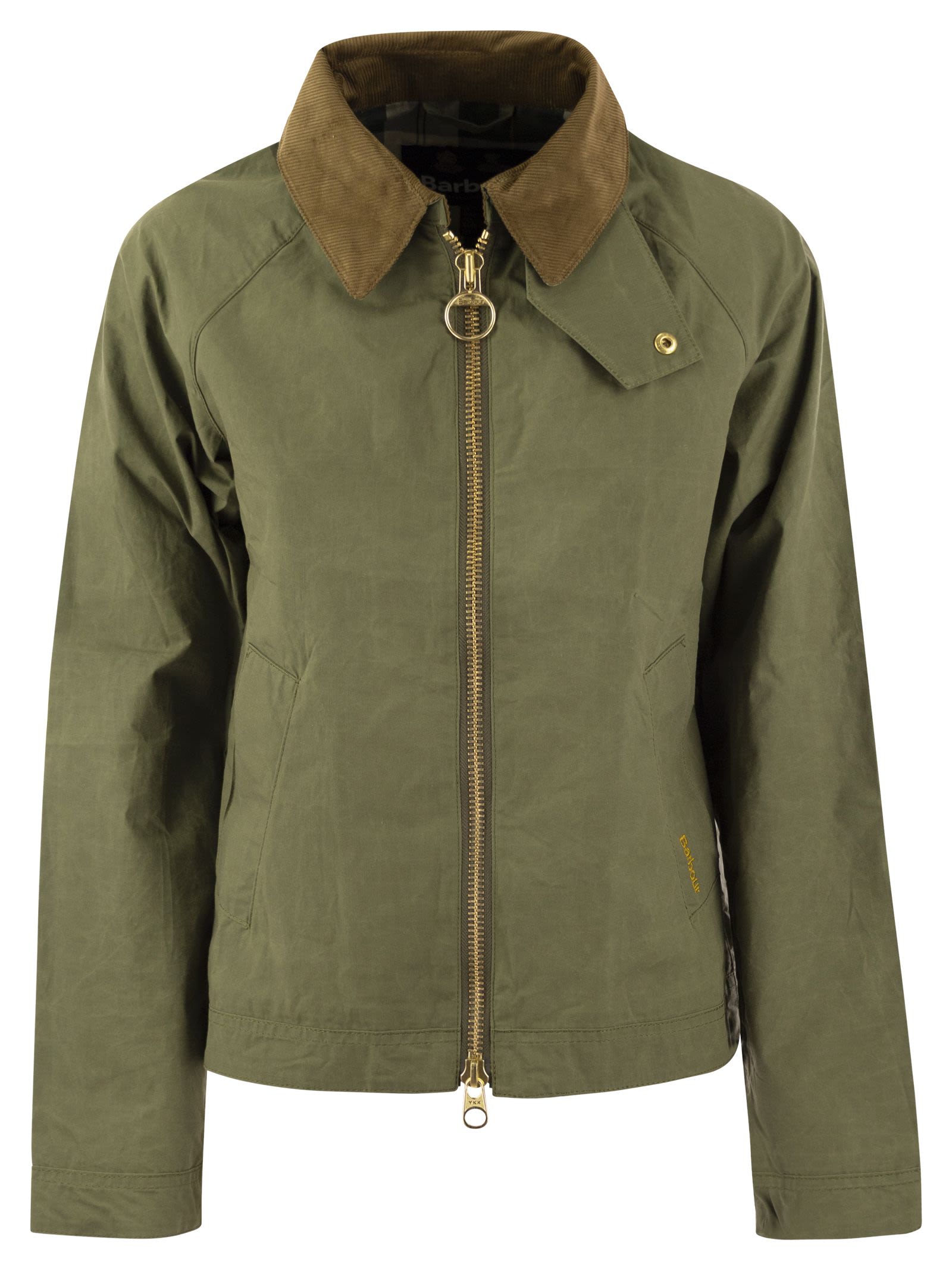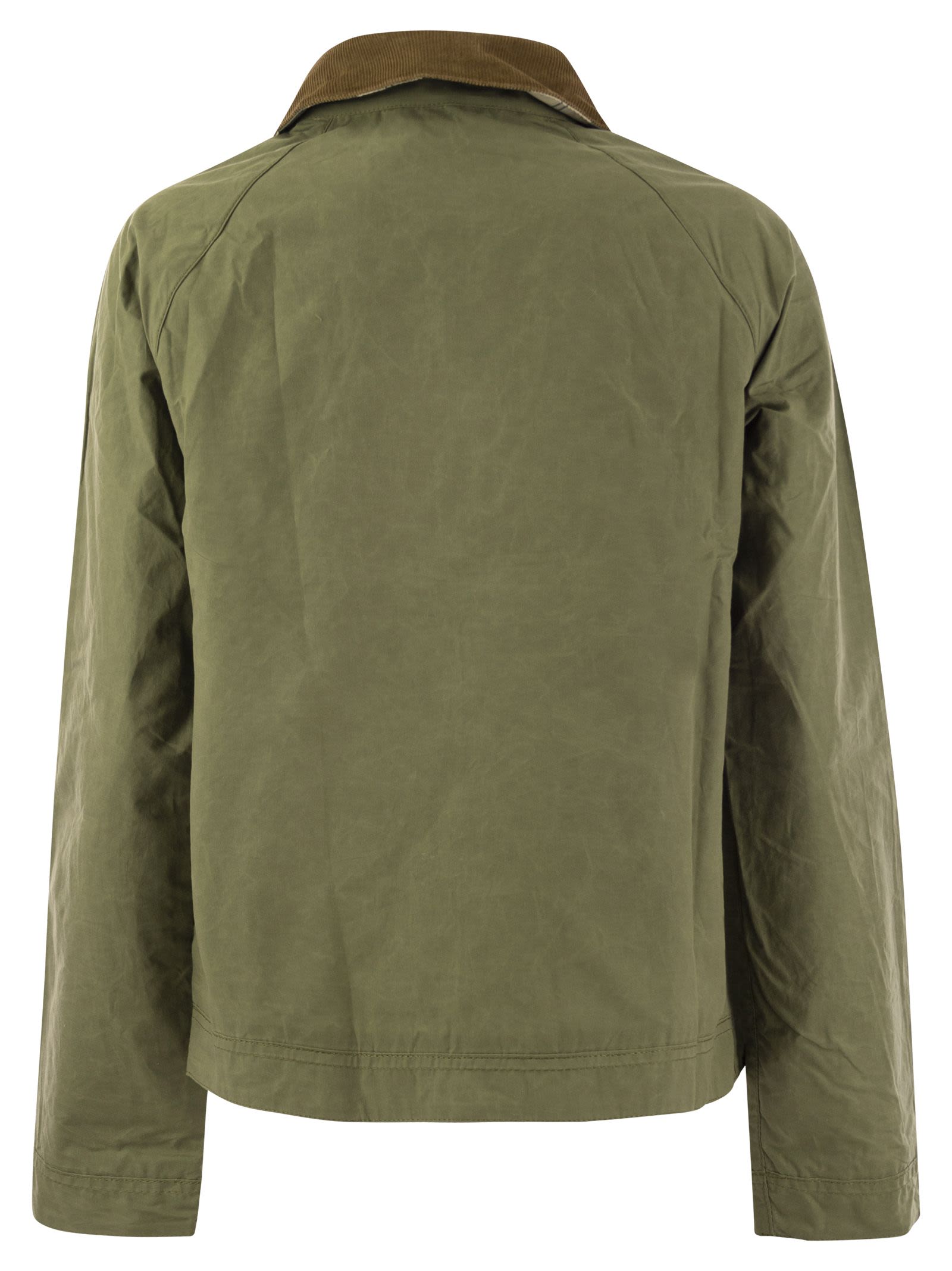 따뜻한 날을위한 단순하고 우아한 옵션 인 짧은 길이의 텍스처 코튼 재킷에는 특별한 빈티지 매력이 있습니다. 줄무늬 벨벳 칼라, 양방향 지퍼 파트닝 및 측면에 큰 웰트 포켓이 특징으로 it 왼쪽 주머니에 금 바버 자수로 마감되었습니다. - 벨벳 칼라 - 일반 맞춤 - 지퍼 클로저 디자이너 ID : LSP0038LSP GN32