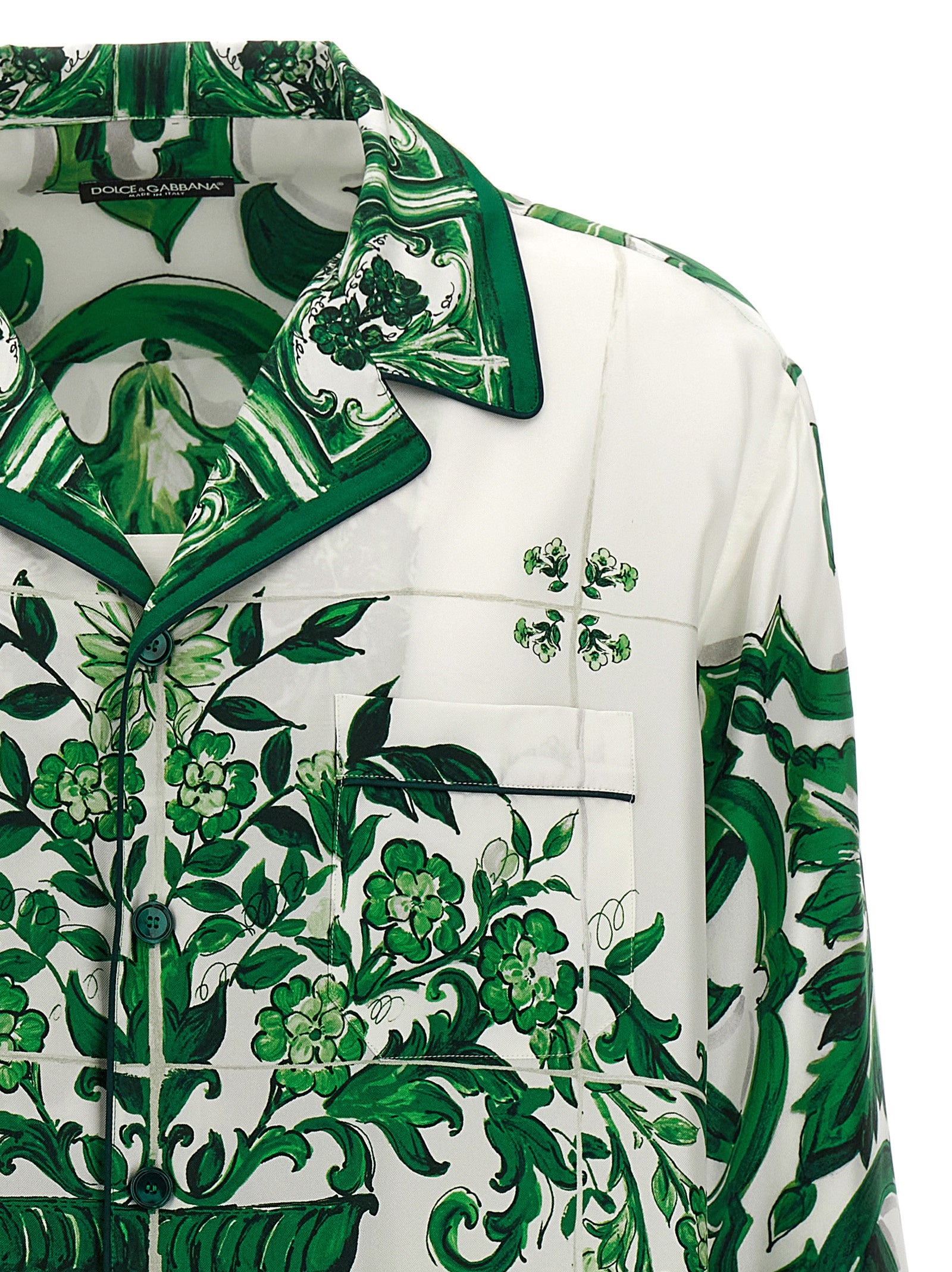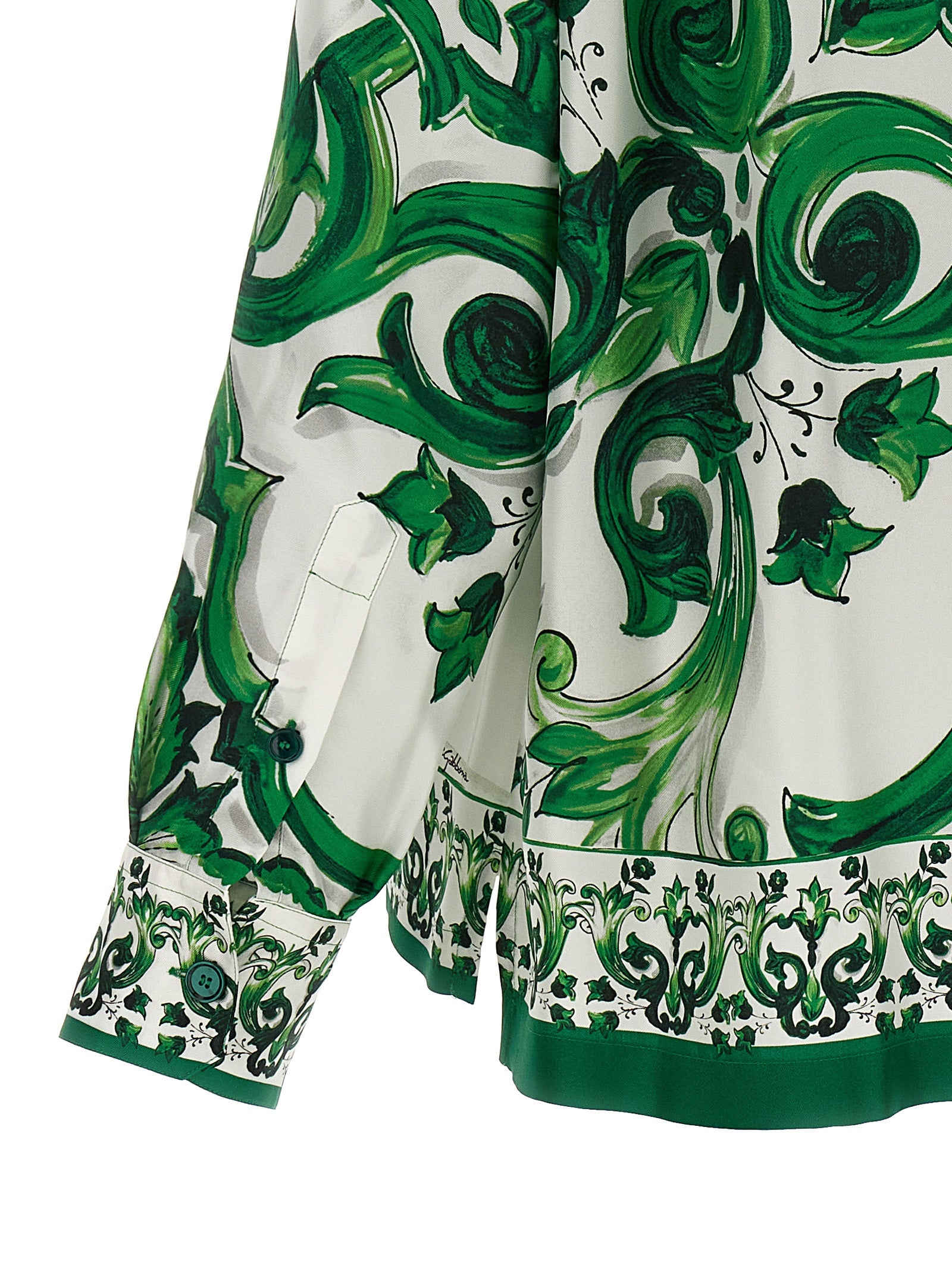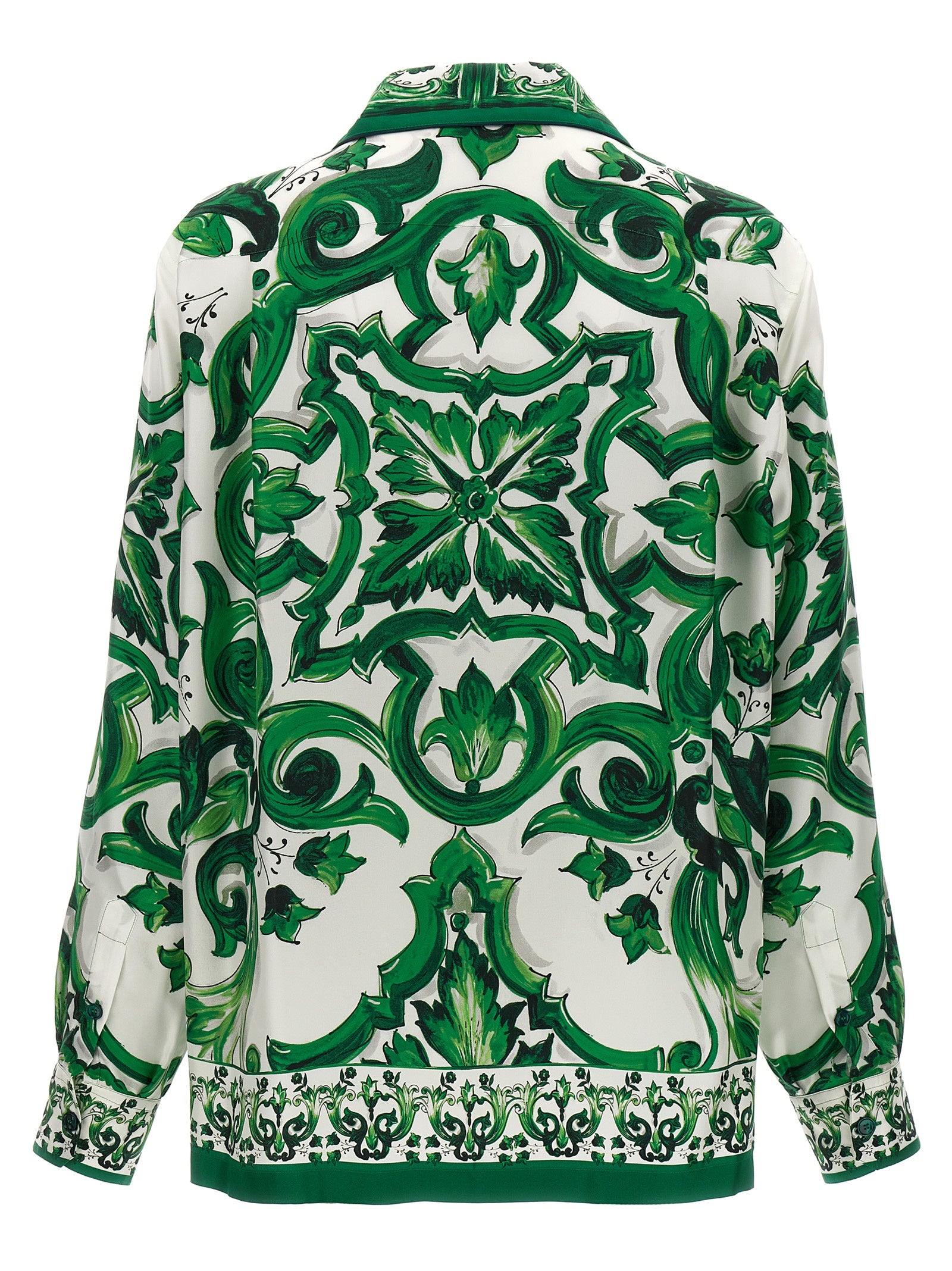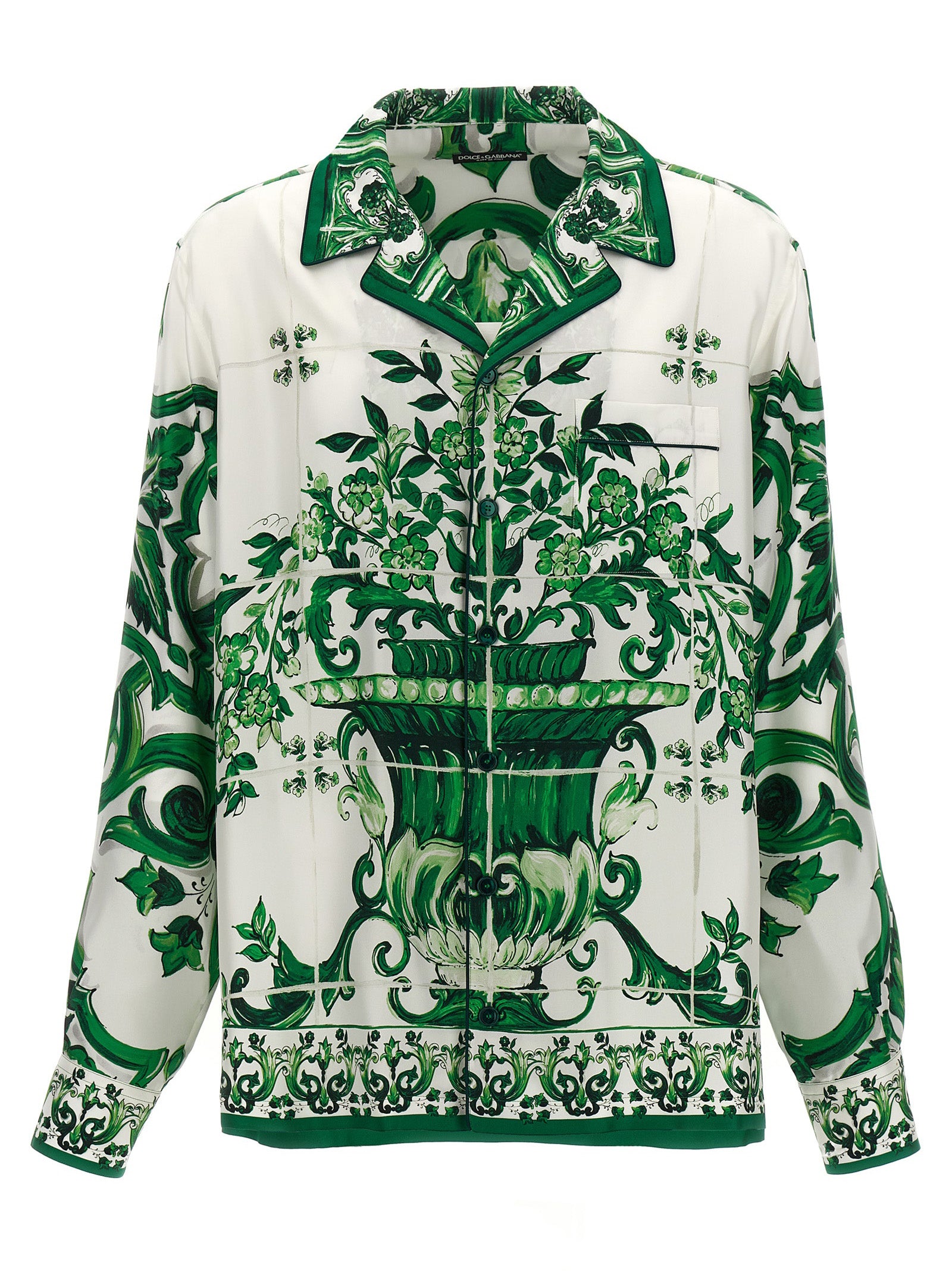 'Maiolica'프린트 실크 셔츠, 앞 주머니, 버튼 클로저, 긴 소매.