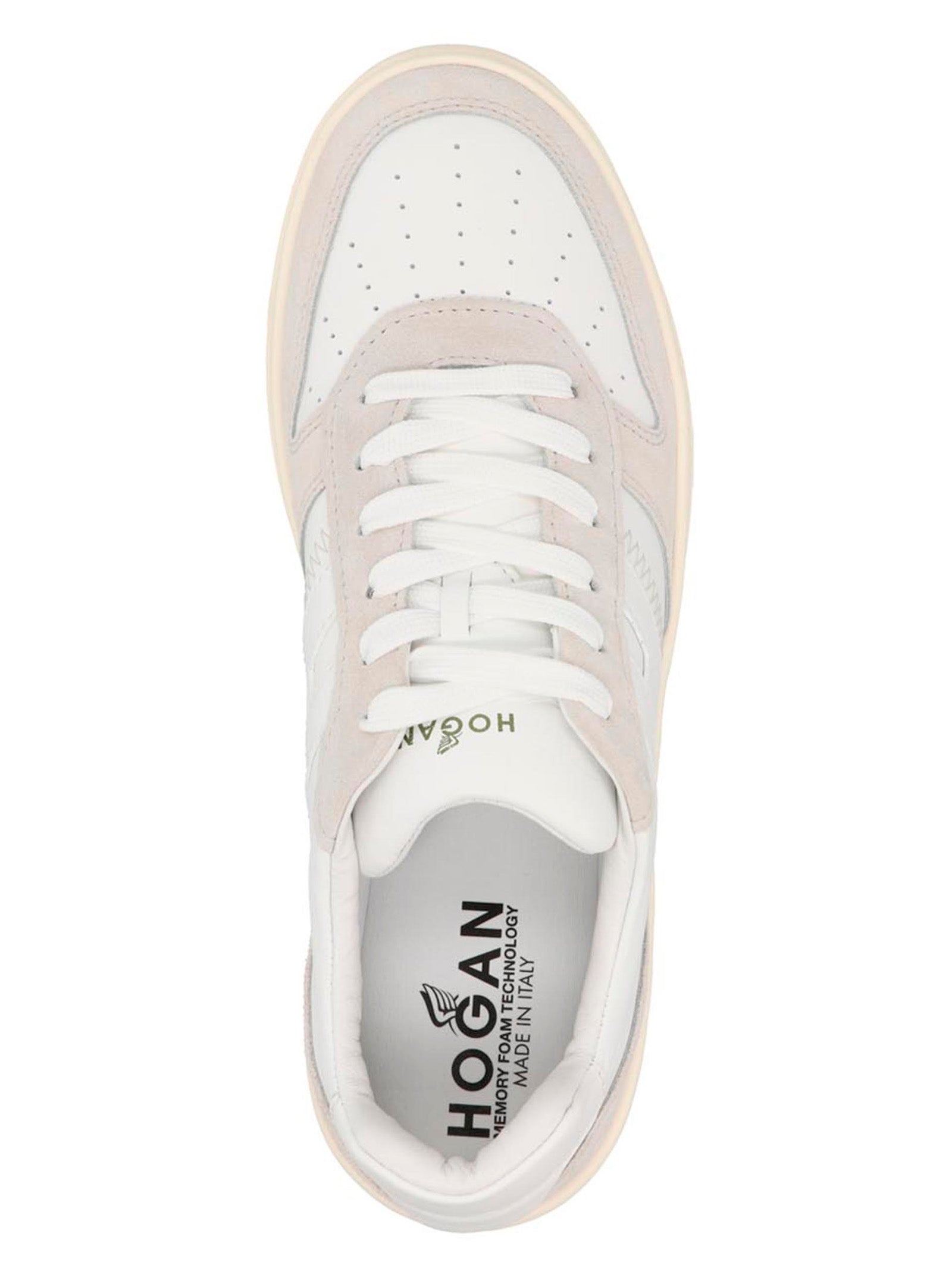 대비 측면 로고, 고무 밑창 및 내부 메모리 폼 밑창이있는 H630 '가죽 레이스 업 스니커즈.
