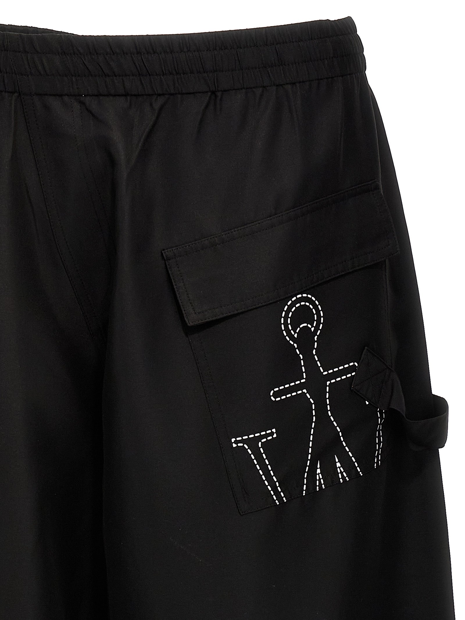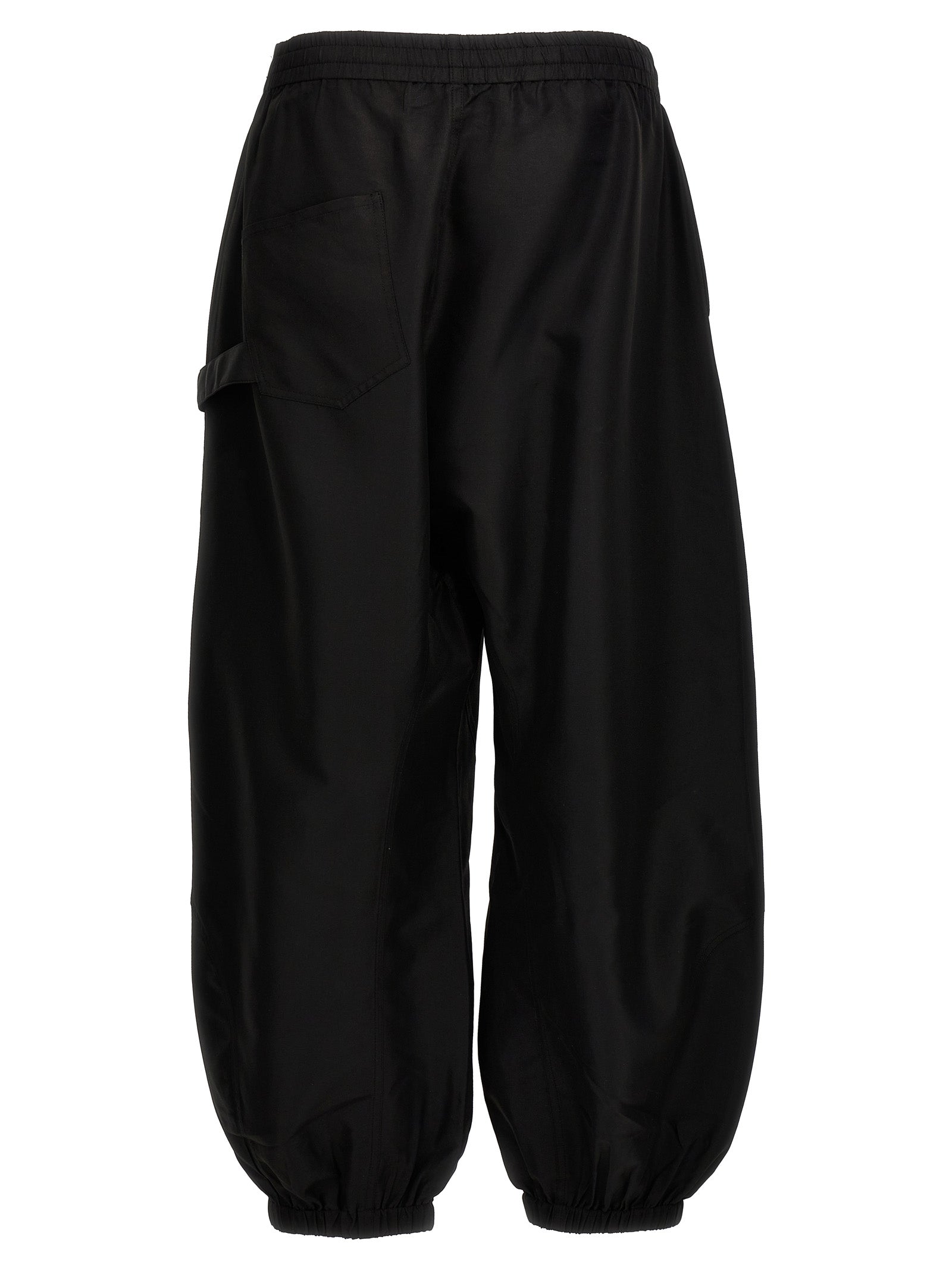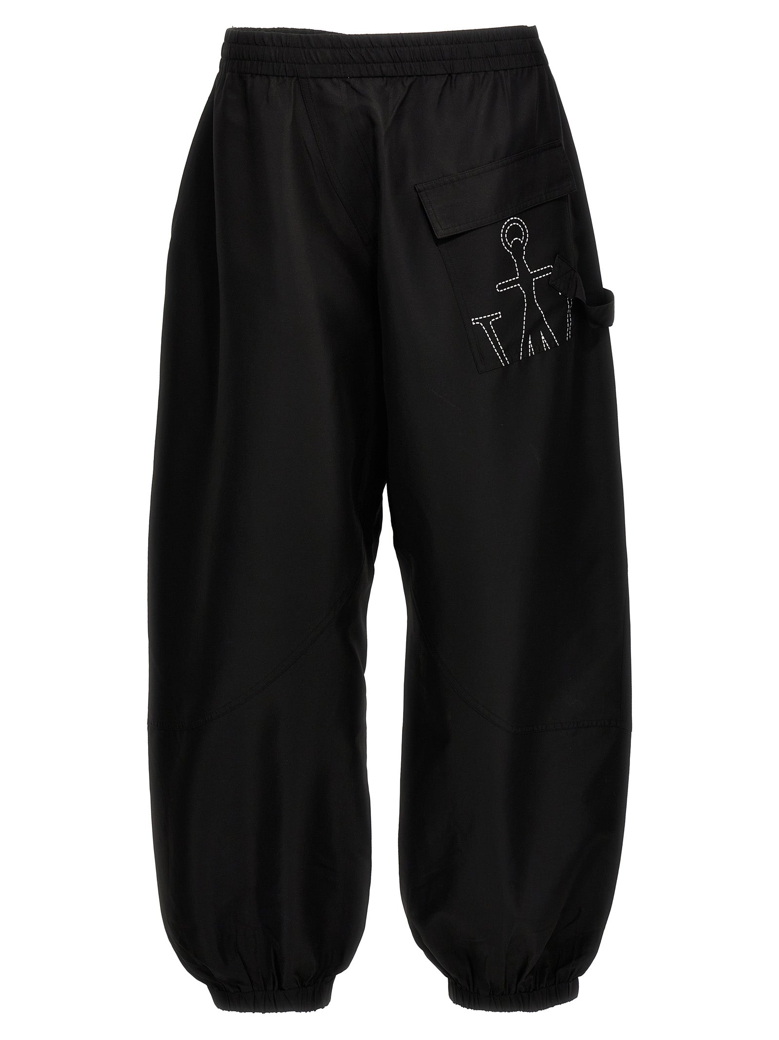 탄력있는 허리띠와 발목과 로고 자수가있는 '꼬인'가벼운 나일론 조깅하는 사람.