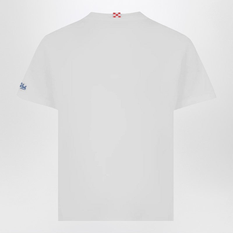 MC2 SAINT BARTH ROUND-NECK 티셔츠는 흰색면의 라운드 넥 티셔츠, 짧은 슬리브, 로고 글자가있는 하나, 앞면에 문어 프린트, 대조되는 로고 글자 자수가있는 가슴 주머니가 특징입니다.