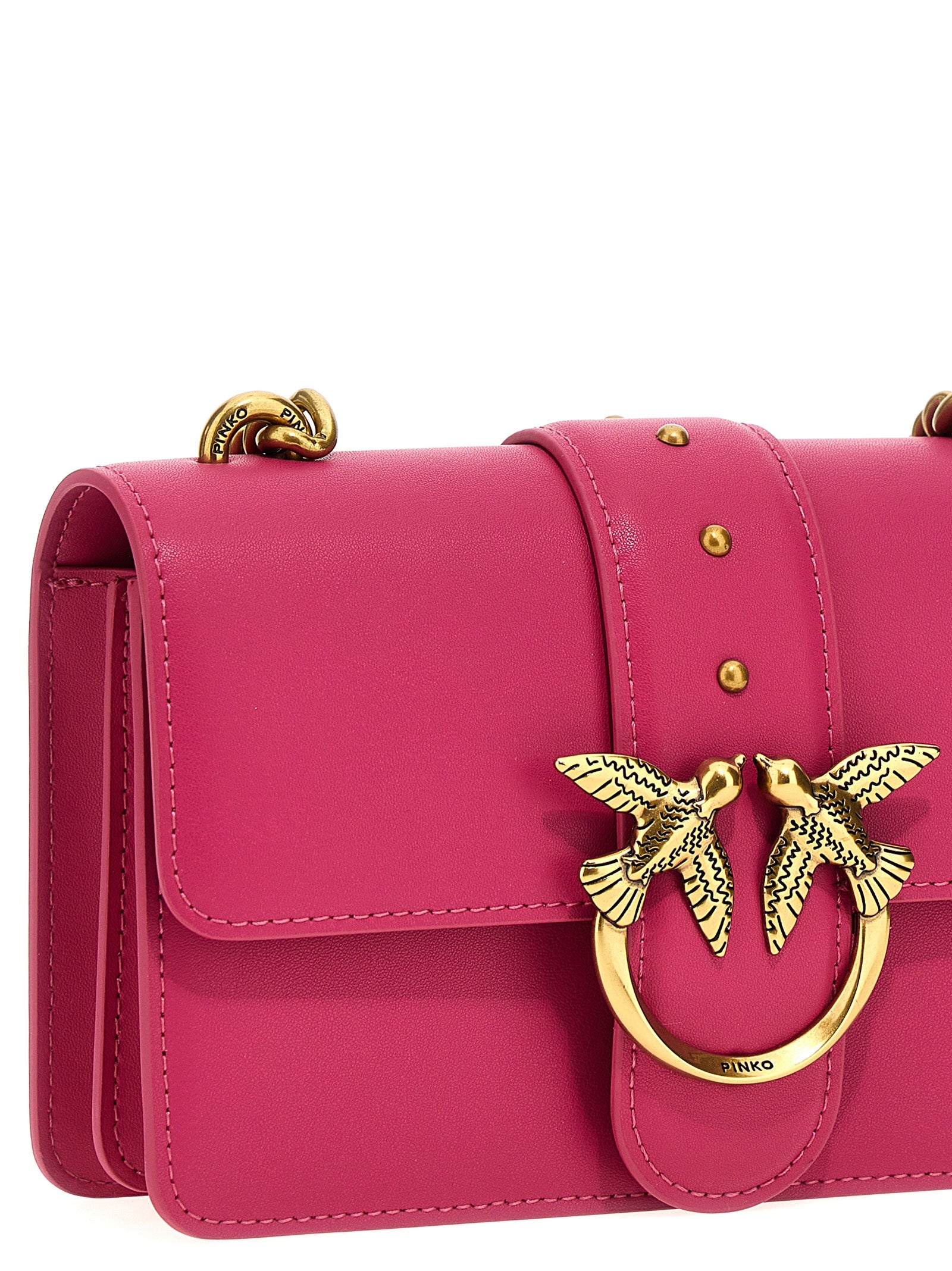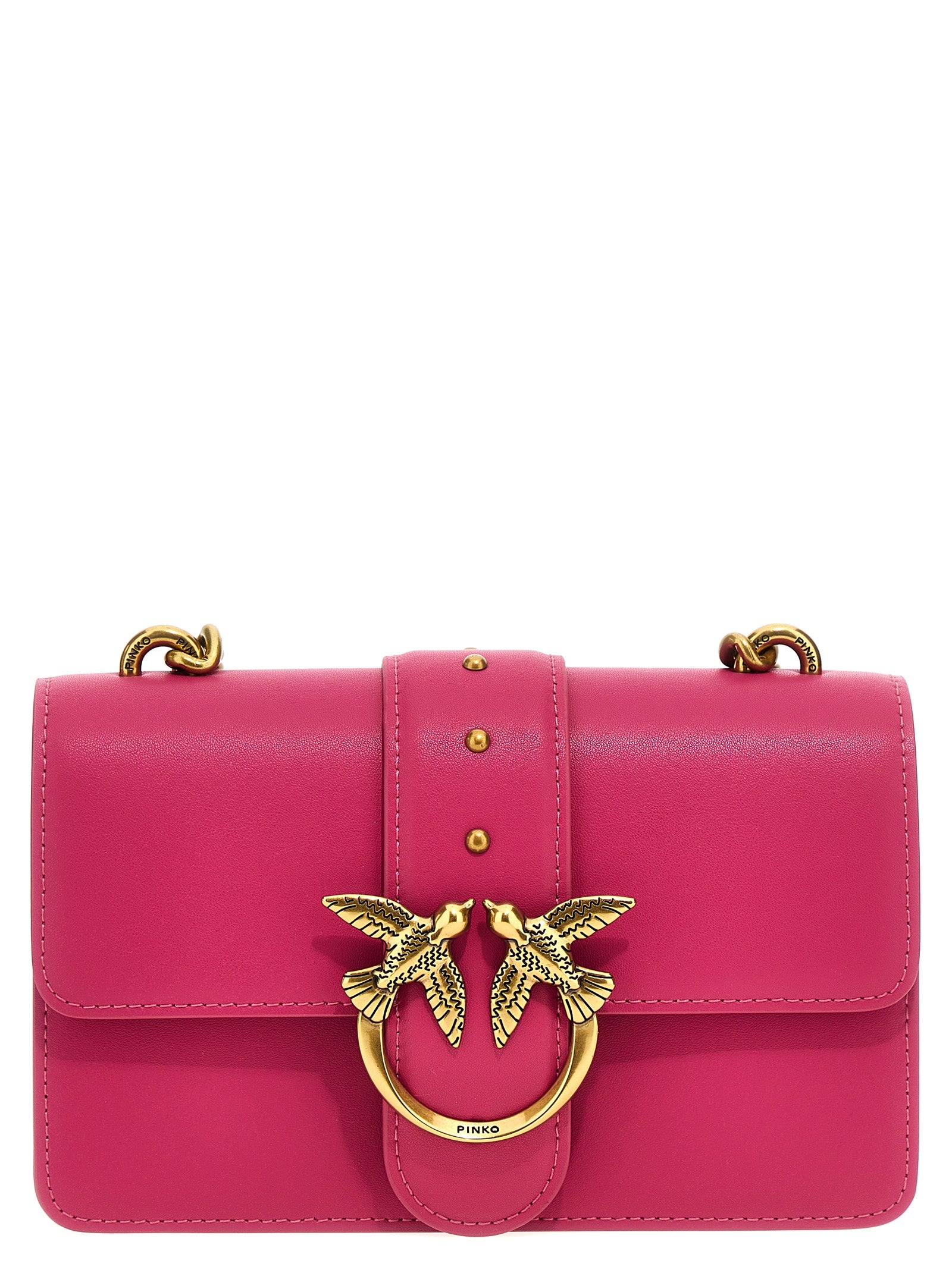 금속 로고, 가죽 숄더 스트랩 및 조절 식 체인이있는 플랩 클로저가있는 '사랑'가죽 크로스 바디 백.