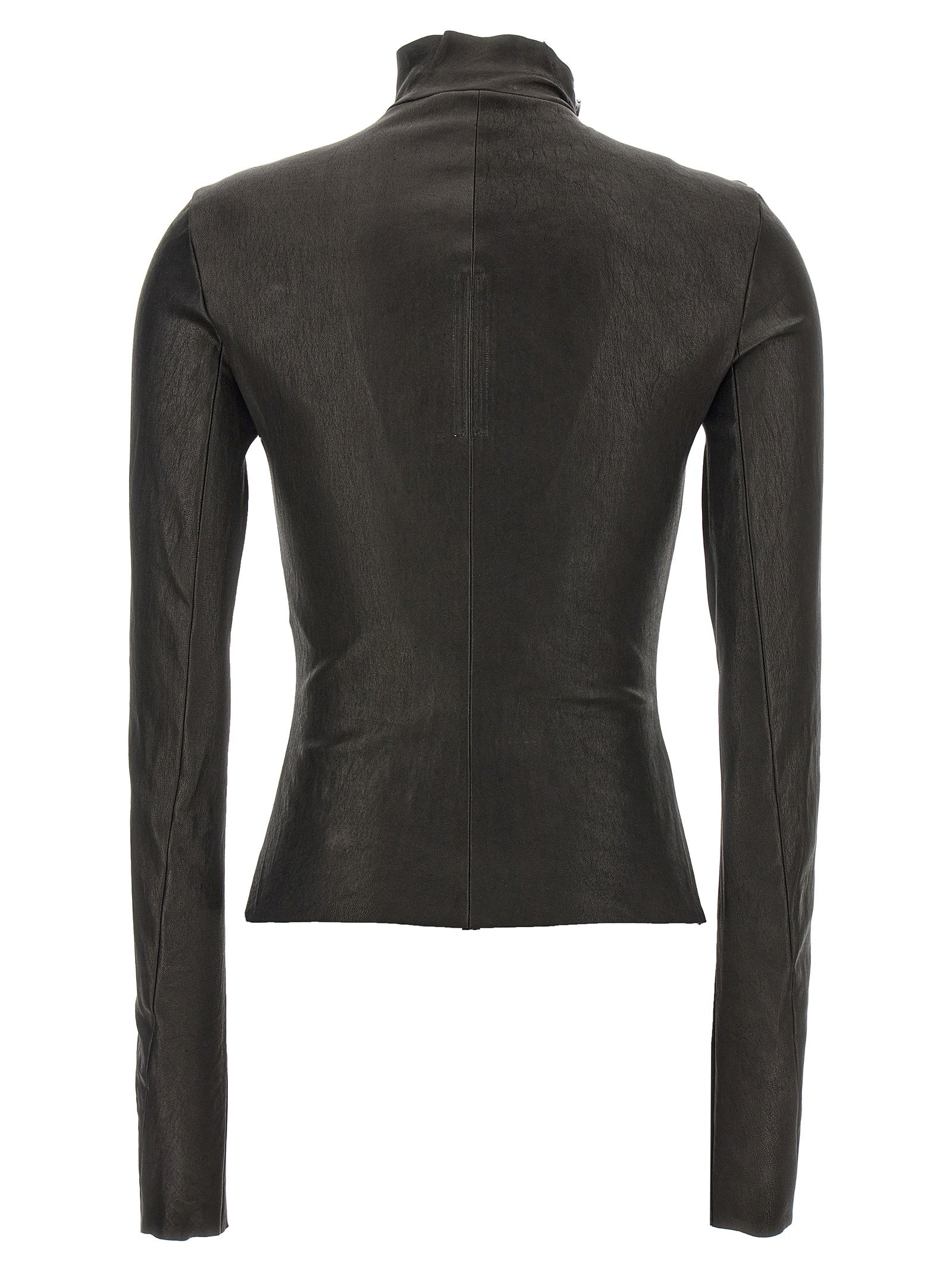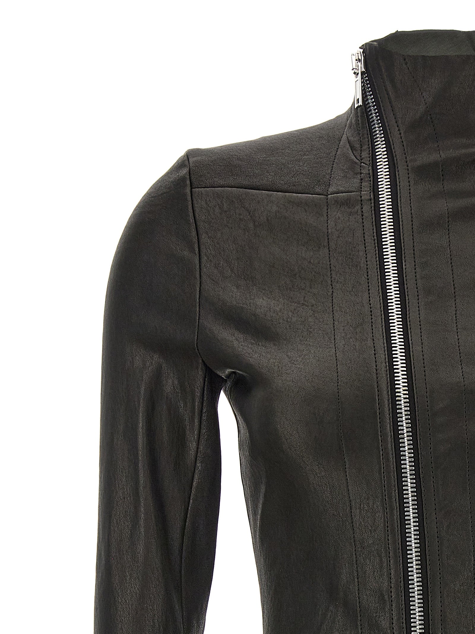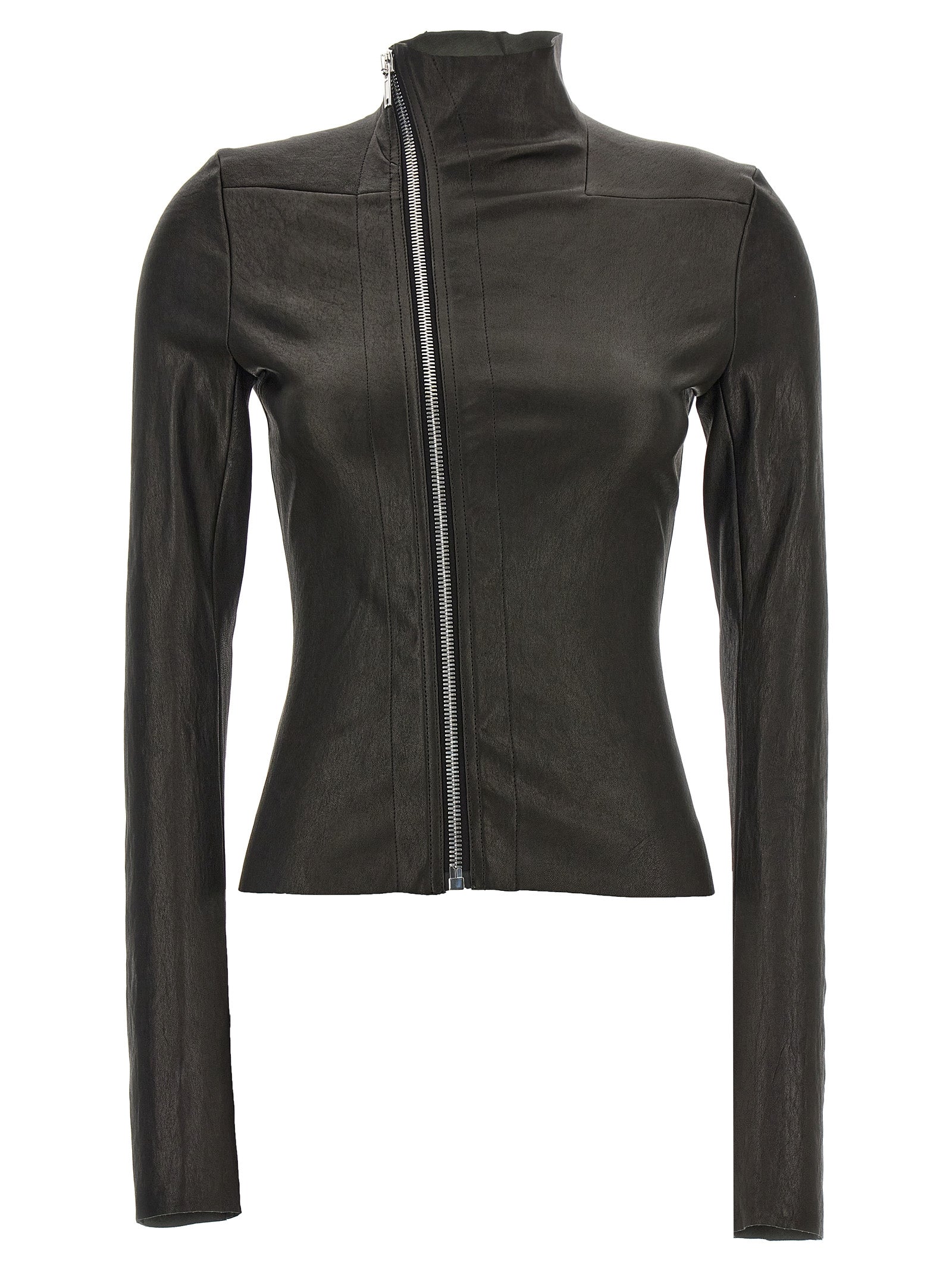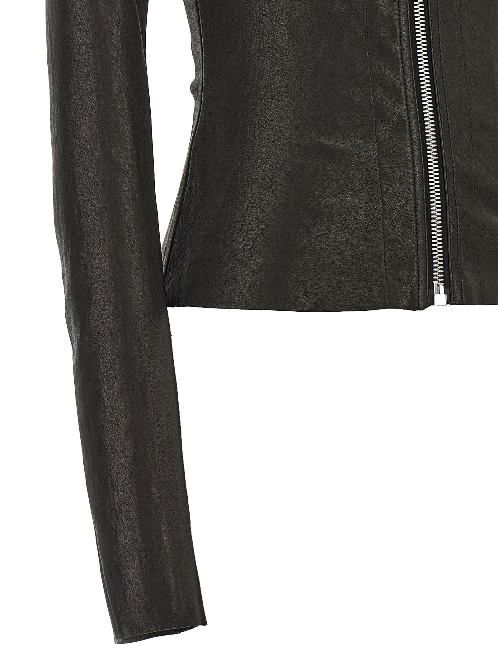 'Gary JKT'가죽 재킷 지퍼 클로저, 긴 소매, 생 컷 밑단.