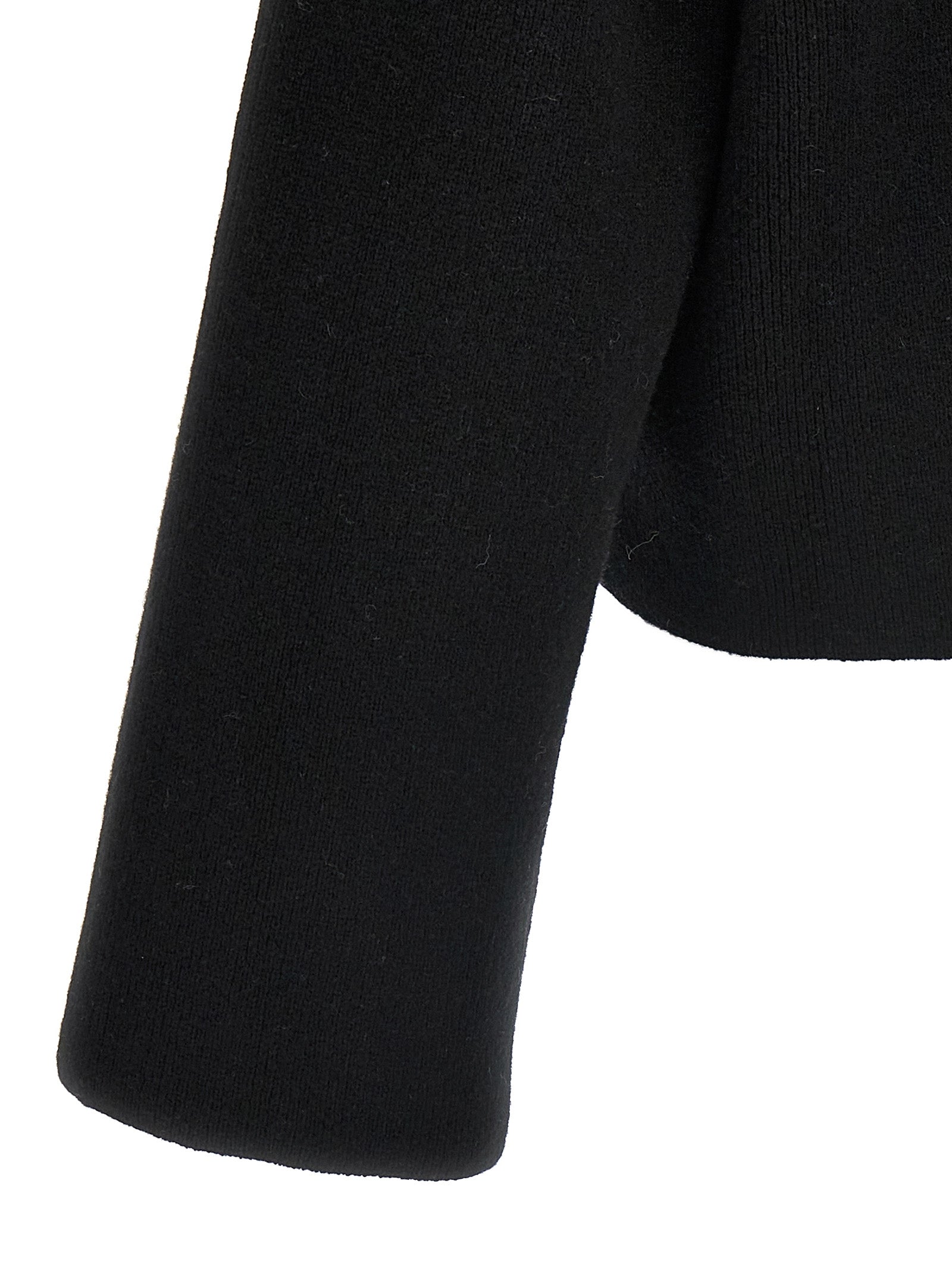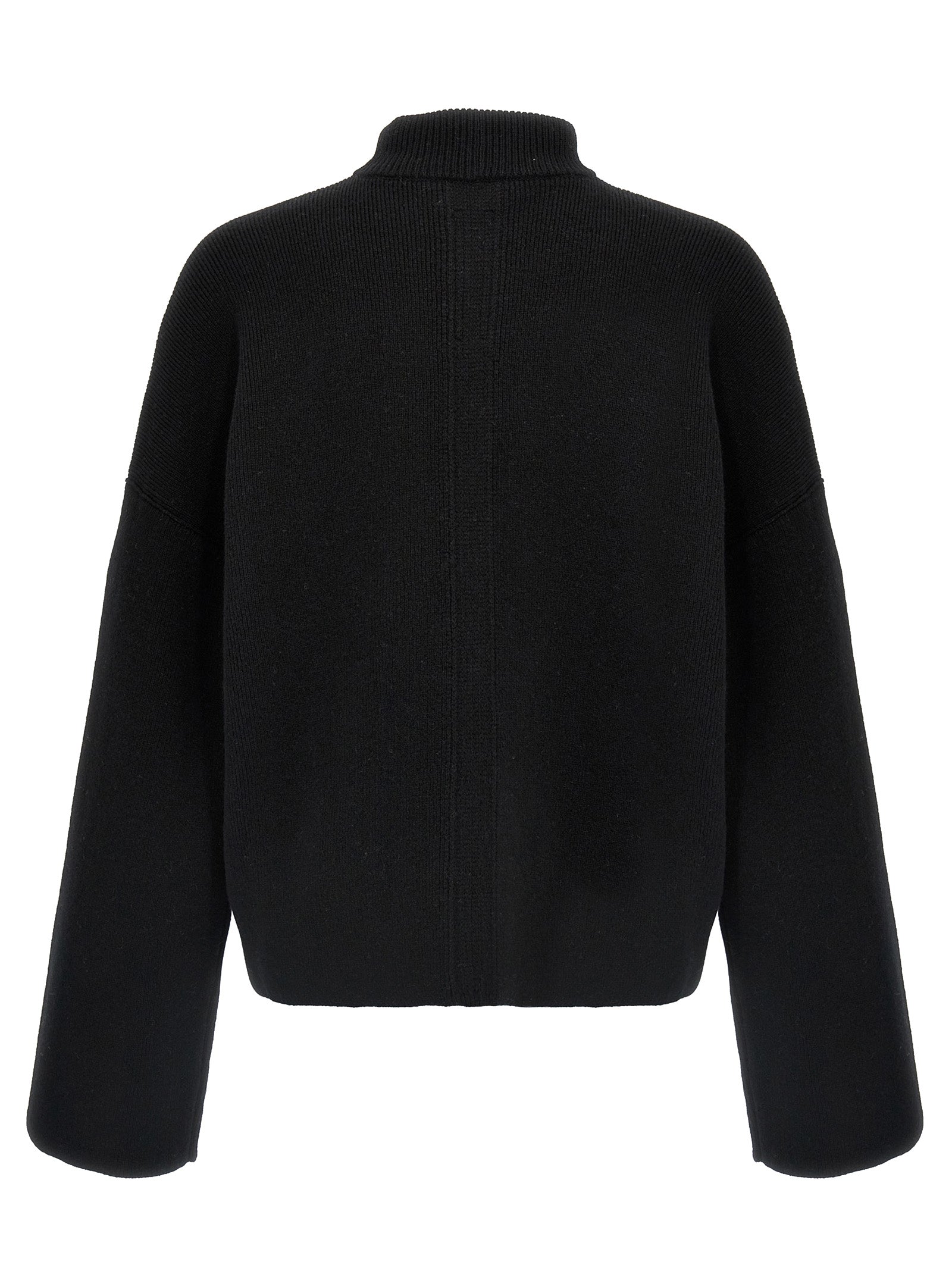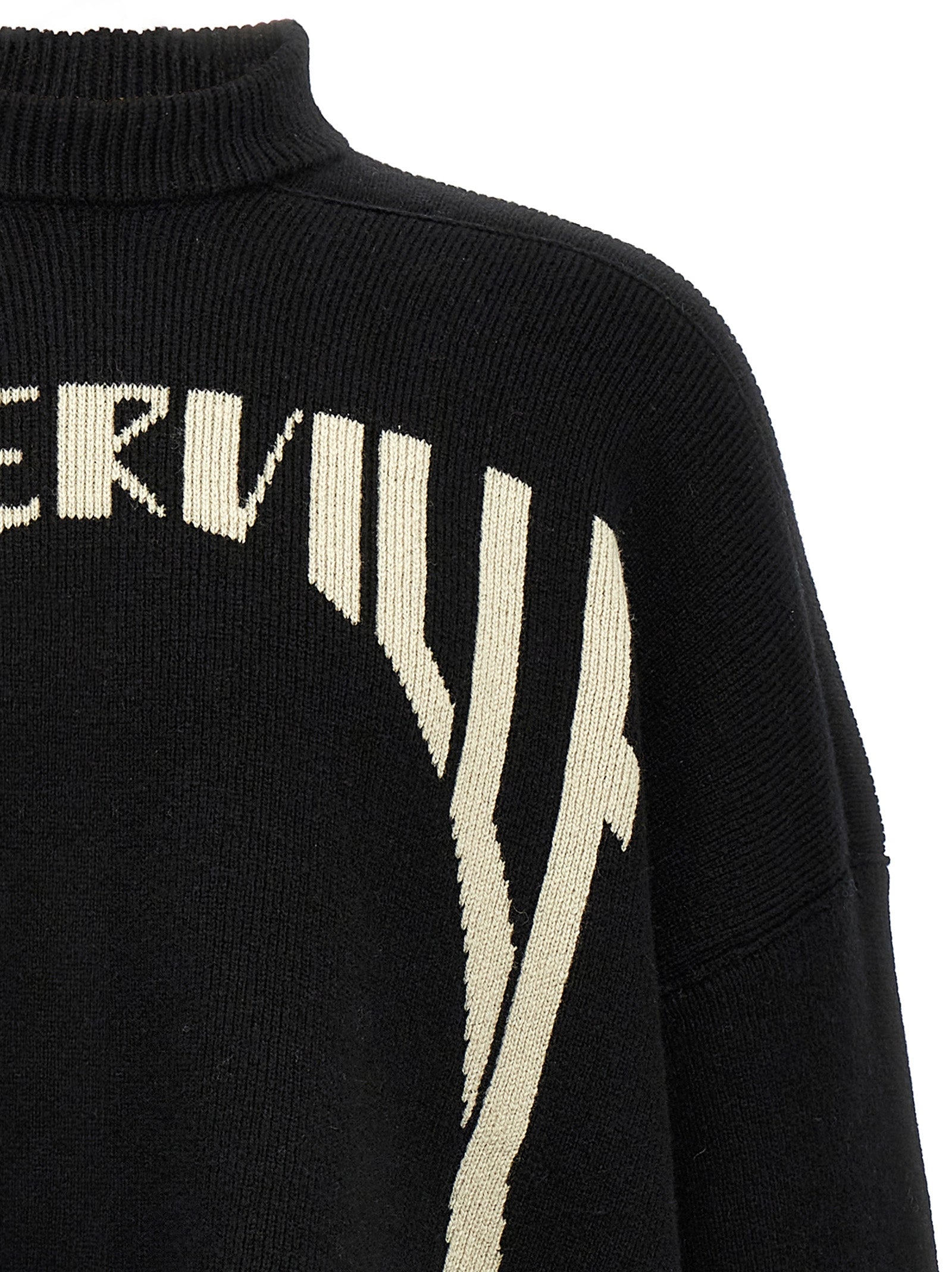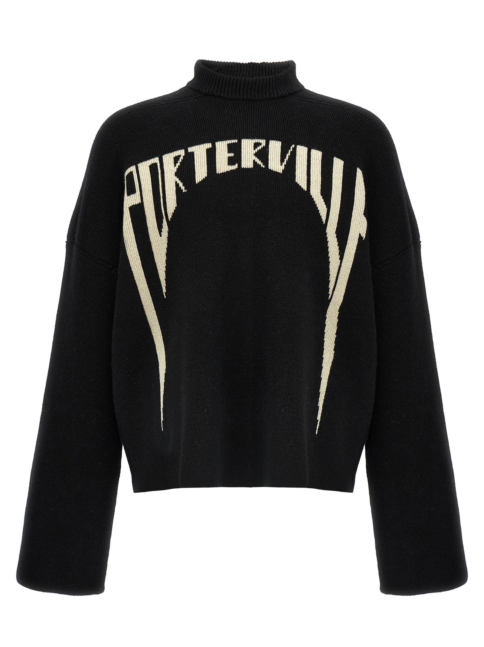 '포터 빌 점보'전면 자카드 글쓰기, 승무원 목, 긴 소매가있는 양모 스웨터.