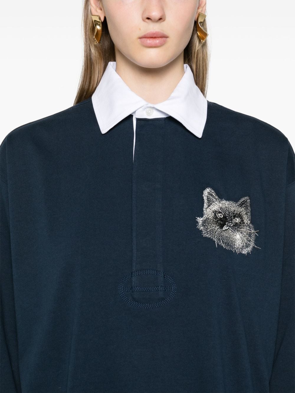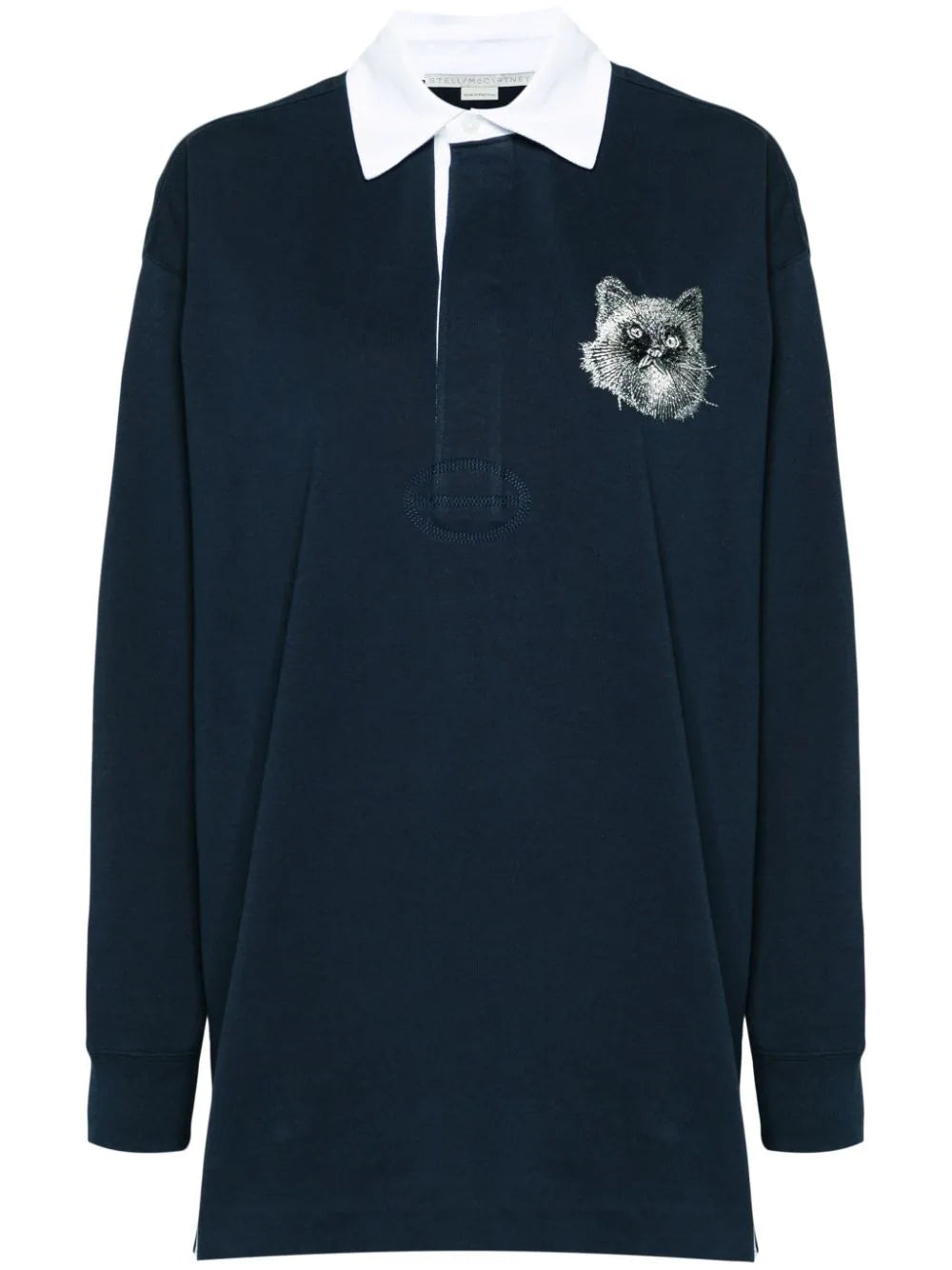 이 럭비 폴로 스웨트 셔츠 드레스는 동물의 사랑을 축하하는 Stella McCartney 아이콘이되고 있습니다. 부드러운 유기농 면화 저지로 제작 된이 제품은 턴 다운 칼라로 완성되며 가슴에 자수 된 귀여운 고양이가 특징입니다. 승마 미학을 위해 무릎 높이 부츠로 착용하십시오.