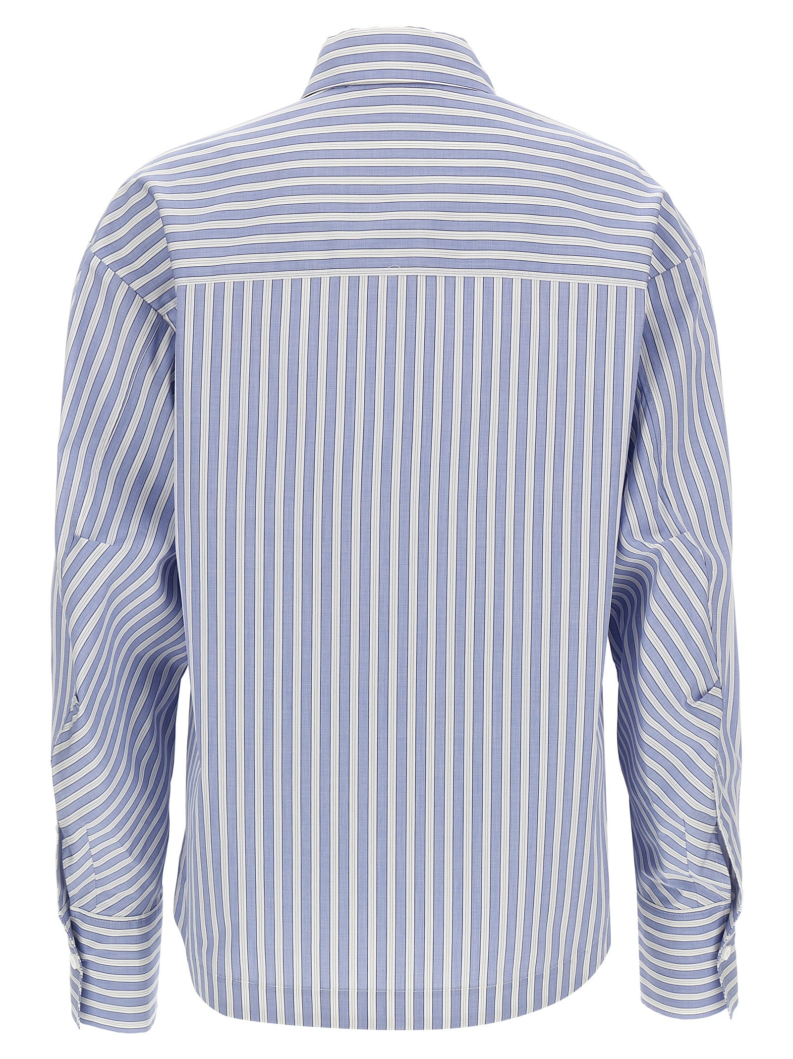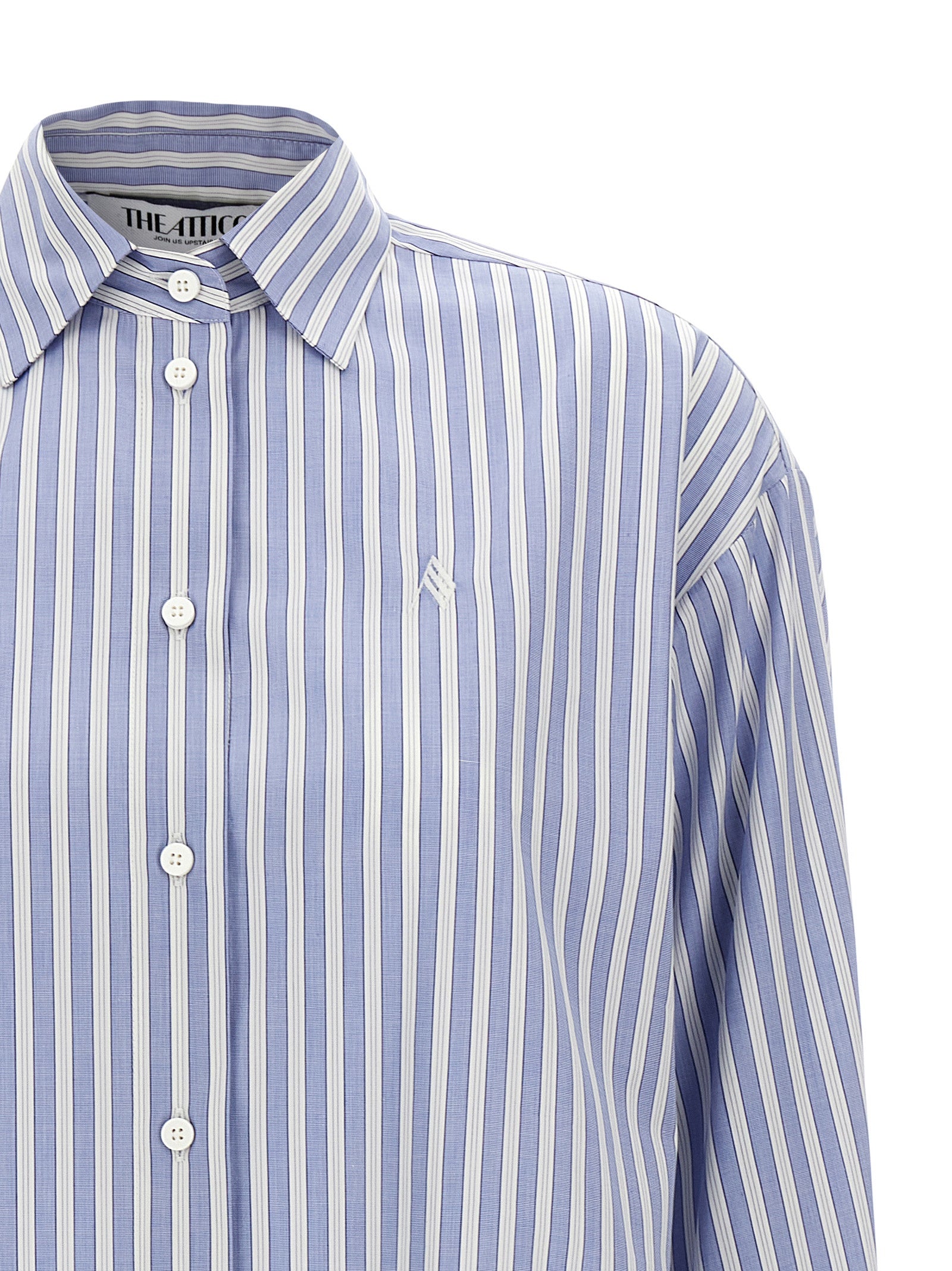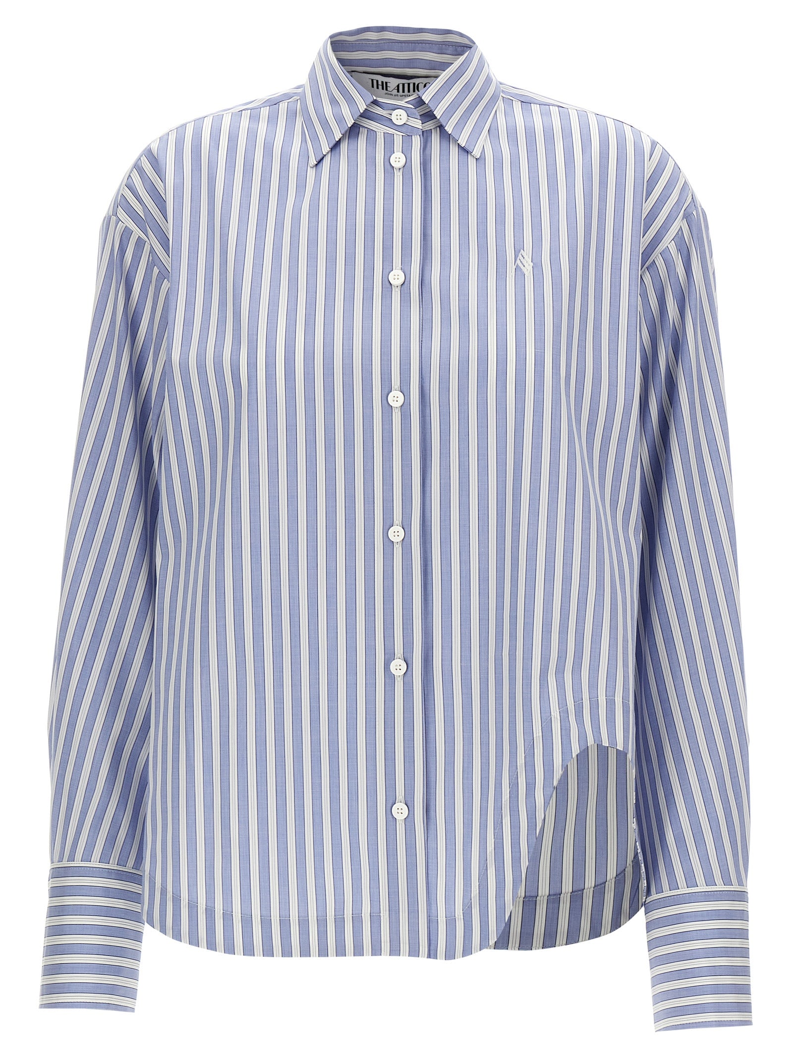 'Eliza' striped cotton shirt with front logo embroidery, button closure, long cuffed sleeves, front shaped split.