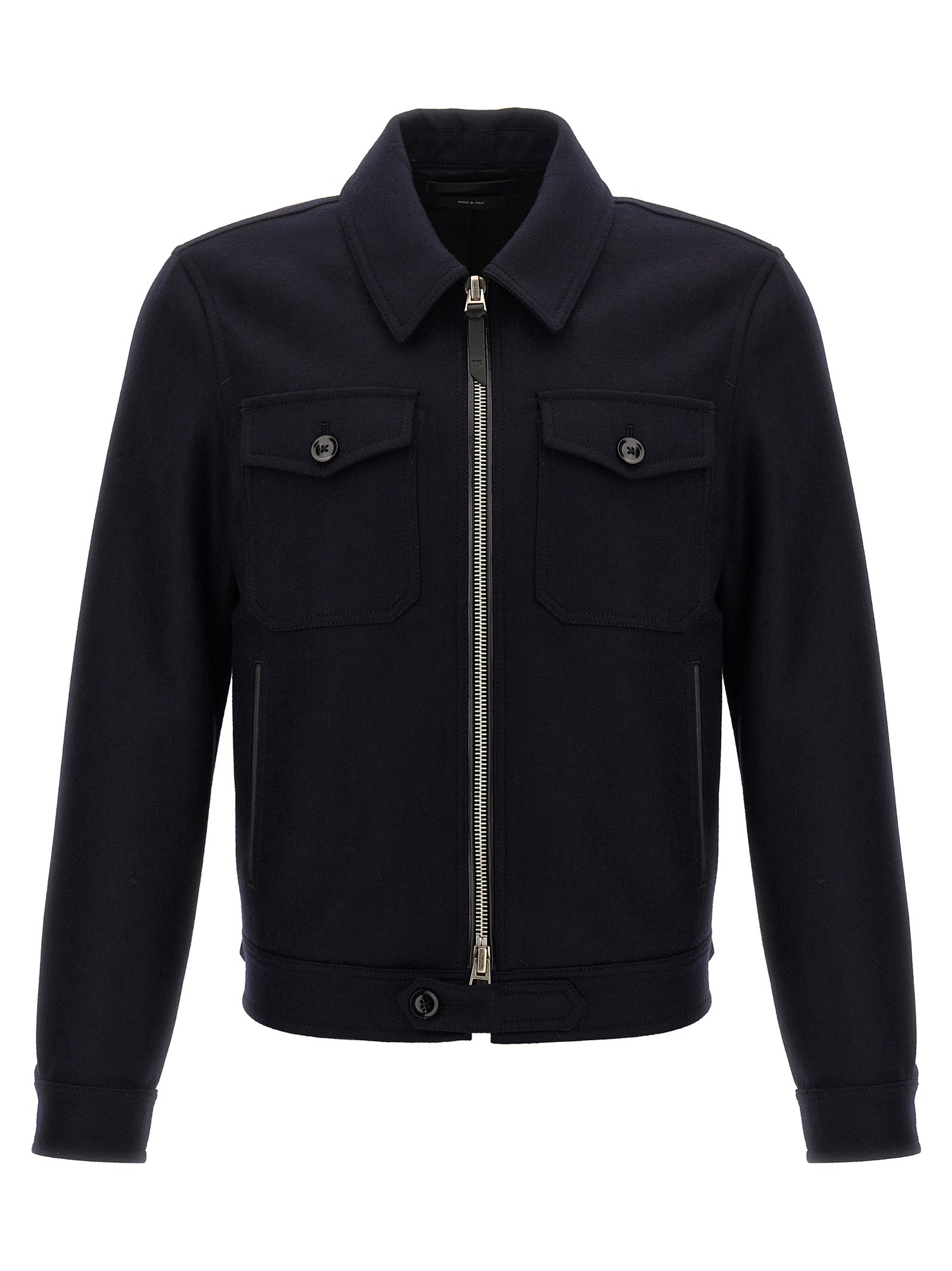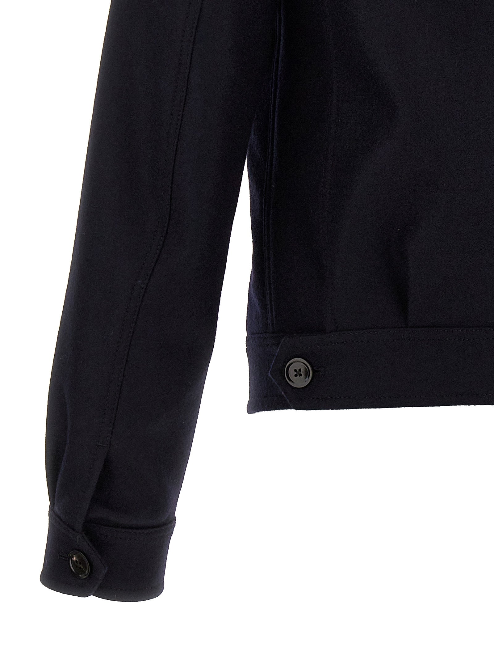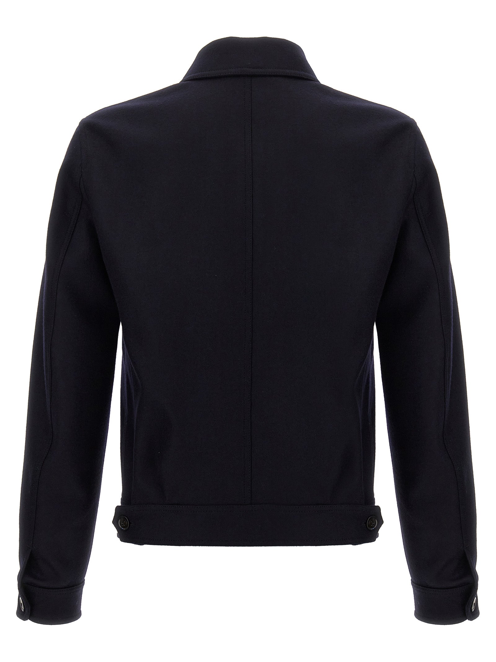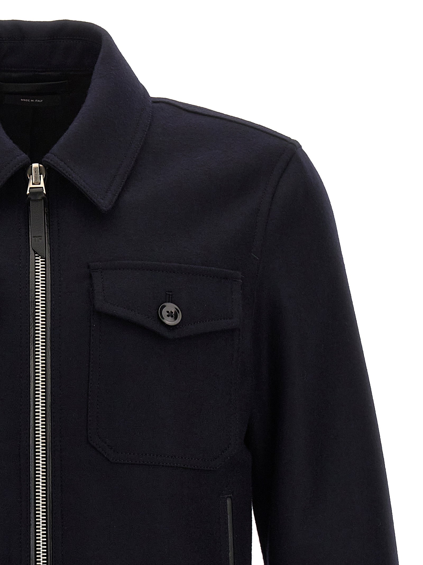 지퍼 클로저, 주머니, 긴 커프 소매가있는 'Light Melton 장교'양모 재킷.