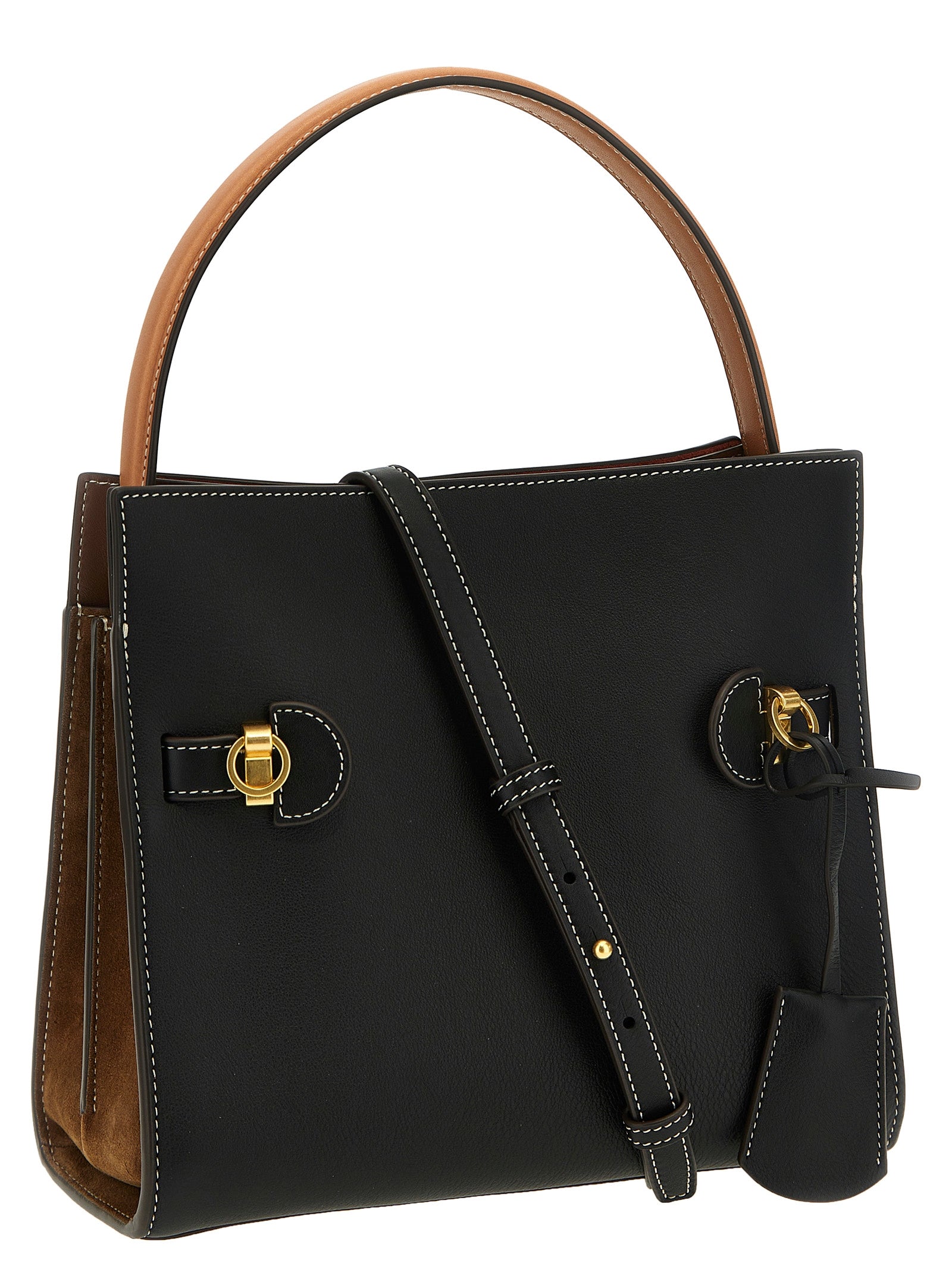 '작은 Lee Radziwill'가죽 및 스웨이드 핸드백, 상단 손잡이, 조절 가능 및 탈착식 어깨 끈.
